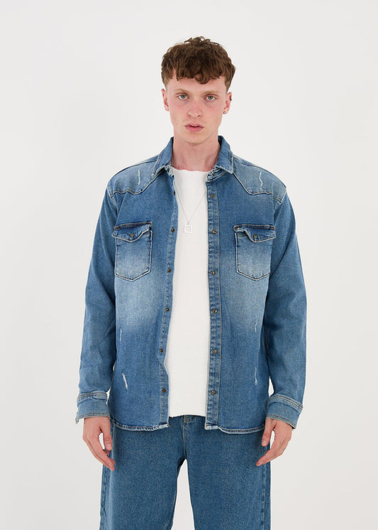 Herren Denim-Hemdjacke, Regular Fit, Dobermann Motiv Rücken Print, Modell 16748, Blau