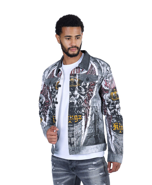 KINGZ Herren Designer Jeansjacke, Slim Fit, Modell 1536 Colorblind