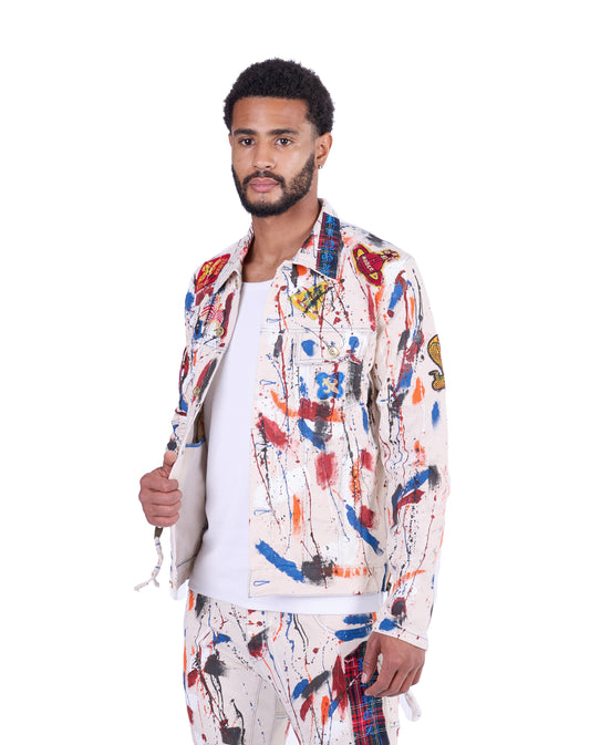 KINGZ Herren Designer Jeansjacke, Slim Fit, Modell 1723 White