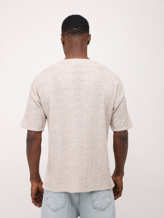 Herren T-Shirt, Regular Fit, Strick Style, Modell 24TY-024, Beige, Creme oder Schwarz