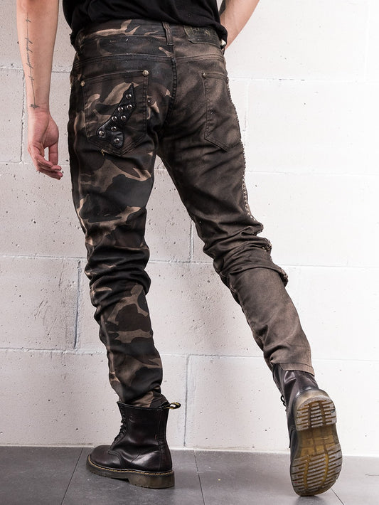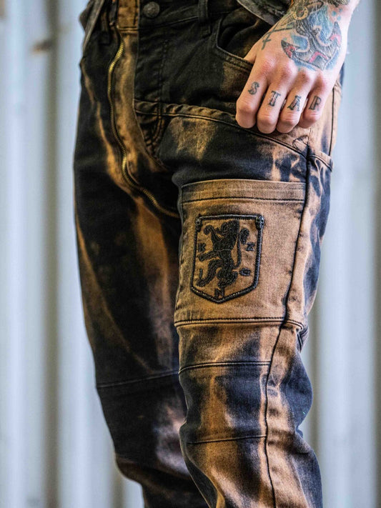 KINGZ Herren Biker Jeans, Jogger Fit, Modell 1667, Army