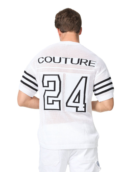 Herren T-Shirt, Oversize Fit, Netz Strick Style "COUTURE 24", Modell 23Y-066, Weiß oder Schwarz