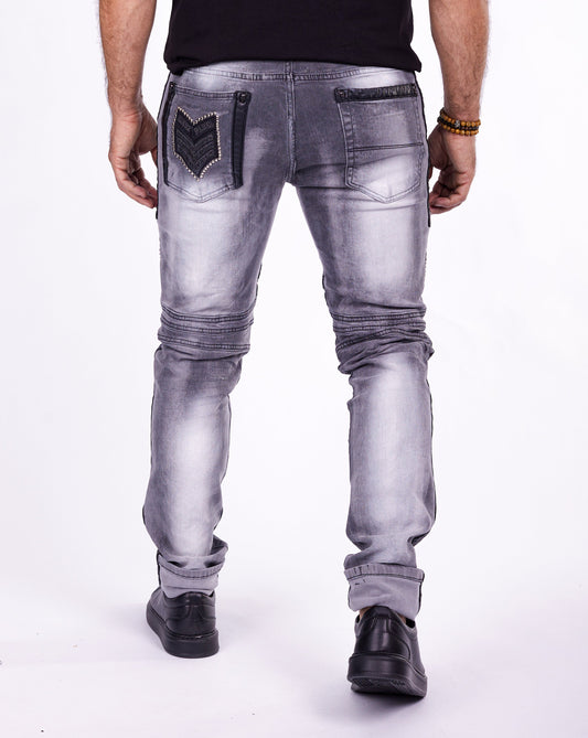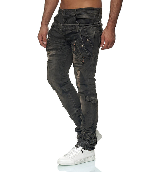 KINGZ Herren Biker Jeans, Slim Fit, Modell 1649, Grau