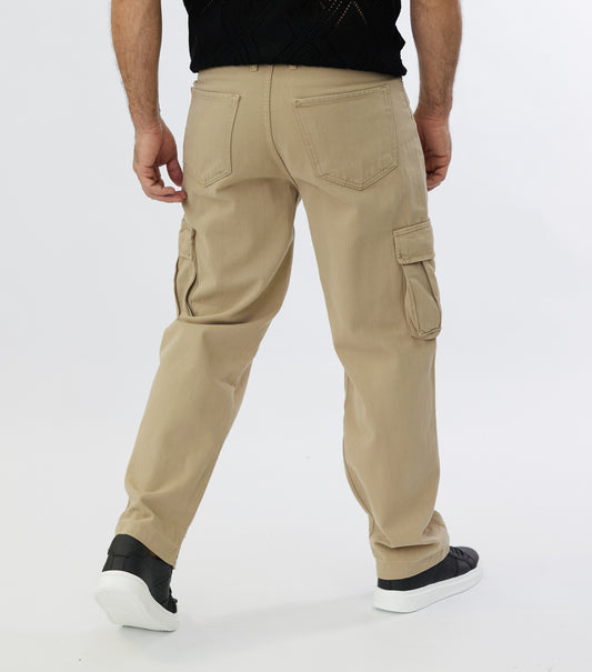 Herren 2-Pocket Cargo Pants Jeans, Baggy Style, Modell 5092, Beige, Braun, Olive, Khaki oder Creme