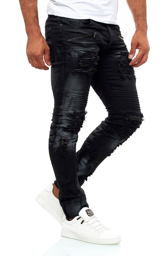 KINGZ Herren Designer Jeans, Slim Fit, Modell 1644-1, Schwarz
