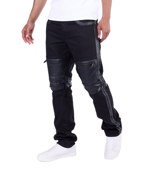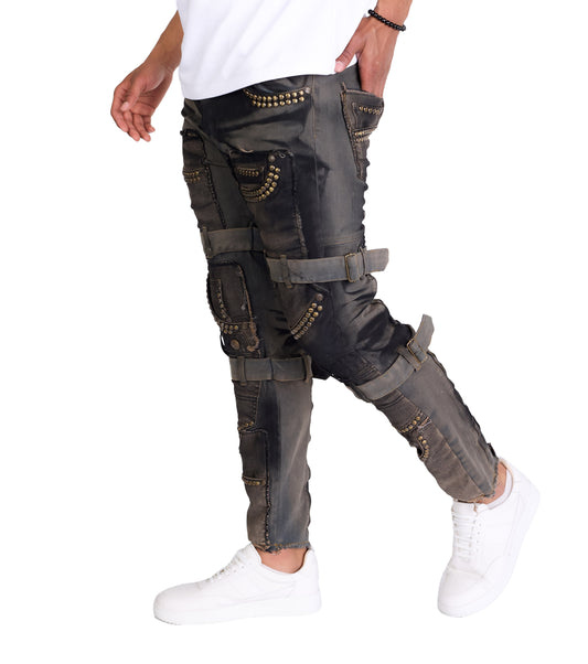 KINGZ Herren Designer Nieten Biker Jeans, Slim Fit, Modell 1683-1 Black