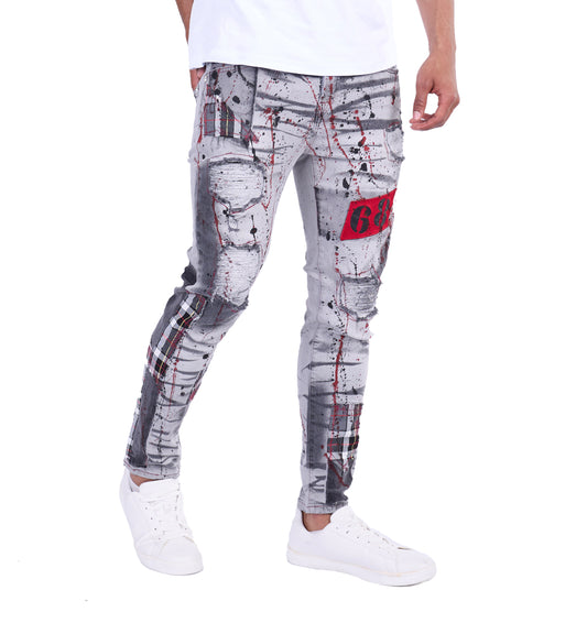 KINGZ Herren Designer Jeans, Slim Fit, Modell 1728 Grau