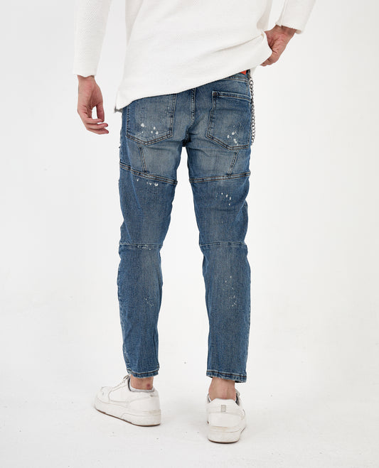 KINGZ Herren Cargo Biker Jeans, Slim Fit, Modell 1699 , Weiß