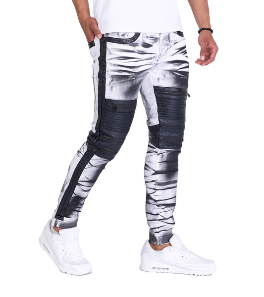 KINGZ Herren Biker Jeans, Jogger Style, Slim Fit, Modell 1681-2, Weiß