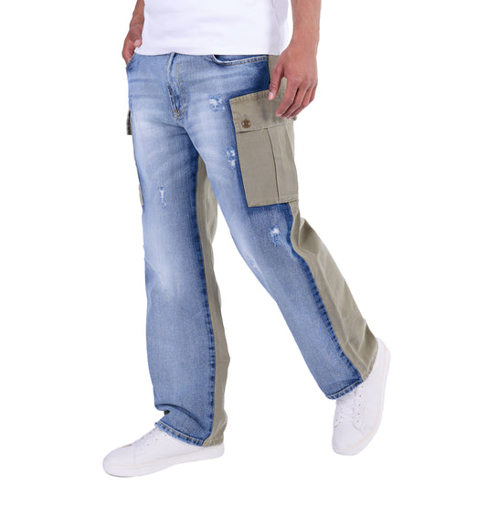 KINGZ Herren Designer patchwork Jeans, Slim Fit, Modell 1729 Stoneless, Blau