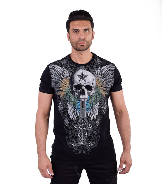 Herren Totenkopf T-Shirt DENIM DISRIQT, Slim Fit, Modell T133, Schwarz