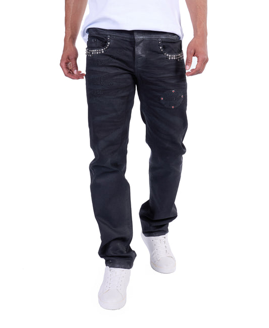 KINGZ Nieten Herren Jeans, Regular Fit, Modell 1837 STD Schwarz