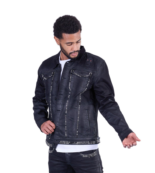 KINGZ Herren Designer Nieten Jeansjacke, Slim Fit, Modell 1767 Black