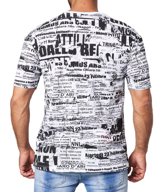 Herren T-Shirt, Oversize Fit, Allover-Print, Modell 1375, Weiß oder Schwarz