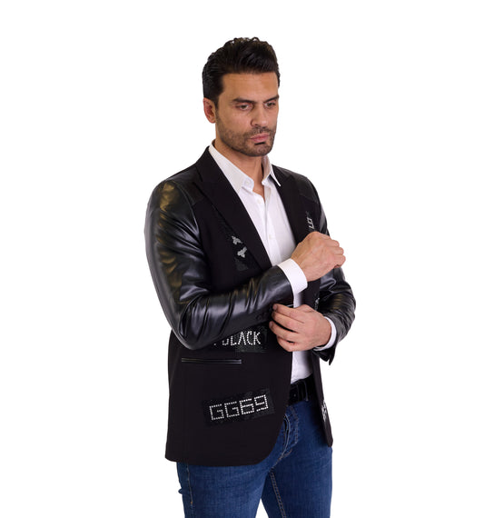 DENIM DISTRIQT men's jacket, jersey blazer, rhinestone motifs, model DQT3, black