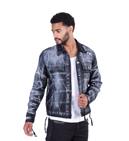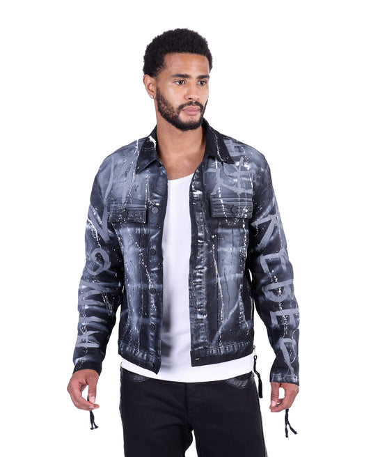 KINGZ men's designer denim jacket, slim fit, model 1648-2, white/black