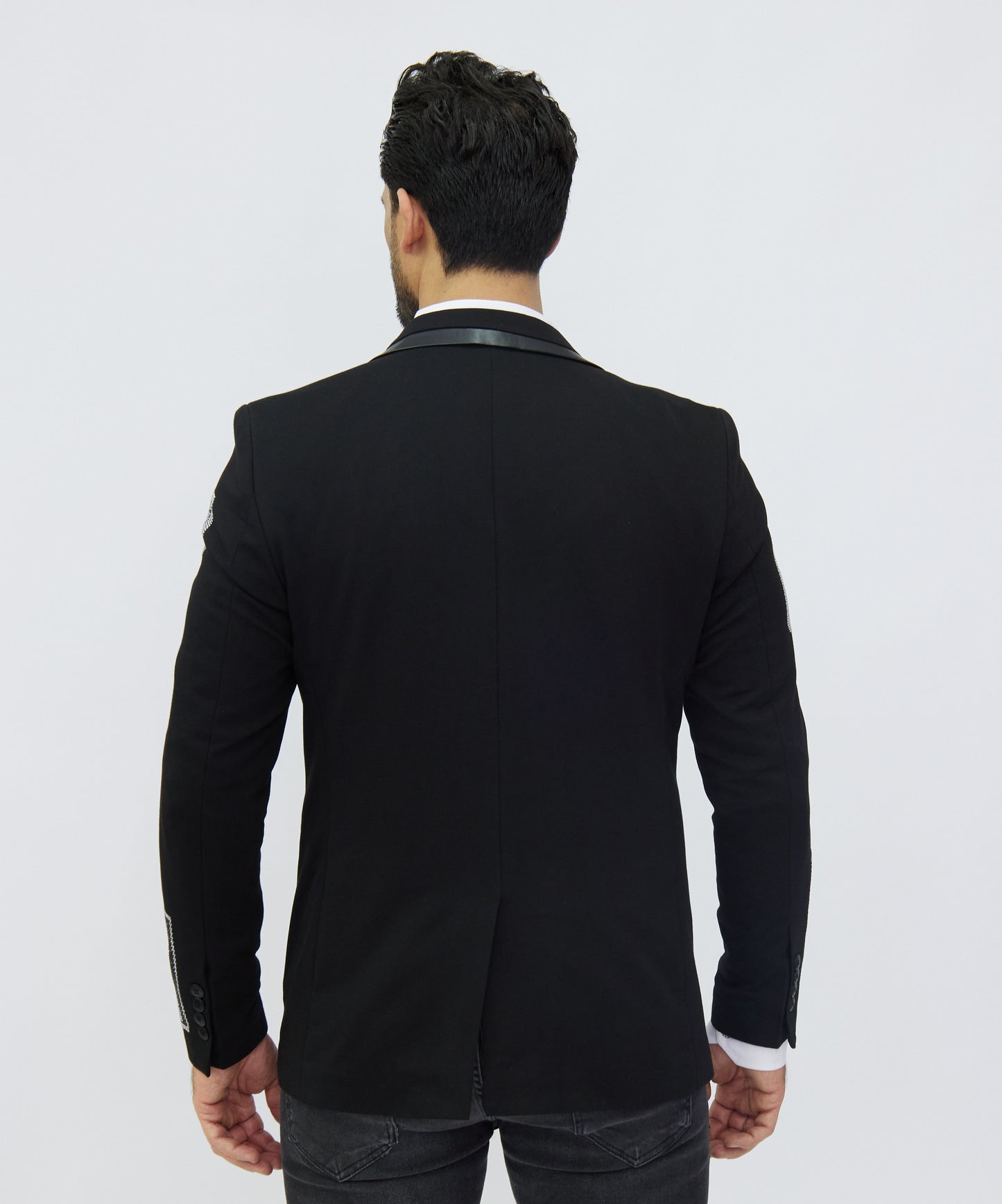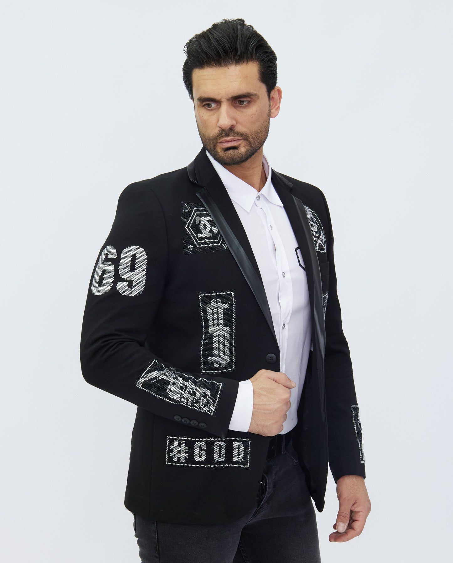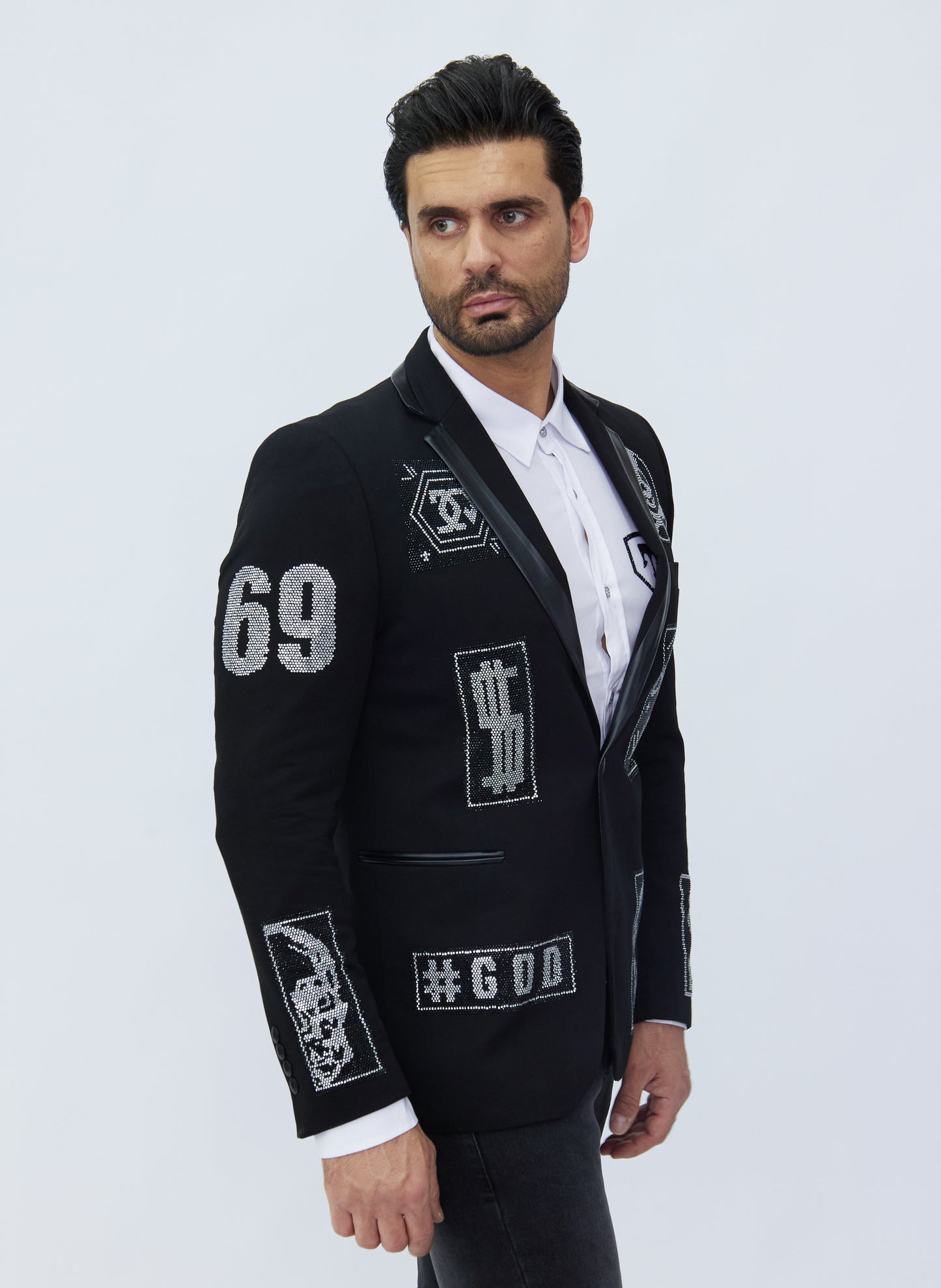 DENIM DISTRIQT men's jacket, jersey blazer, rhinestone motifs, model DQT6, black
