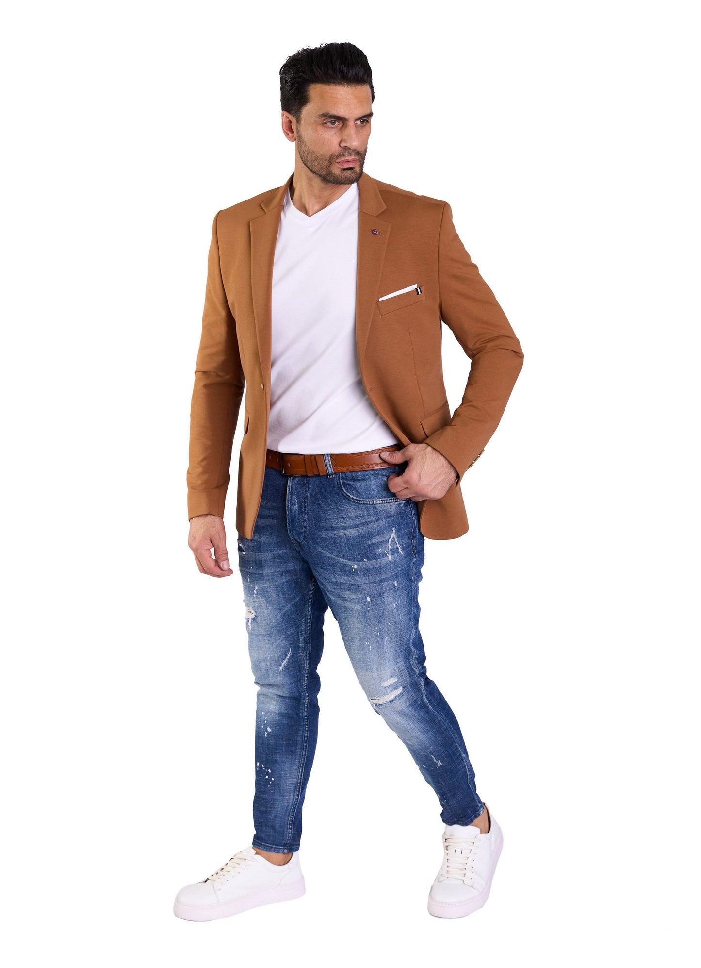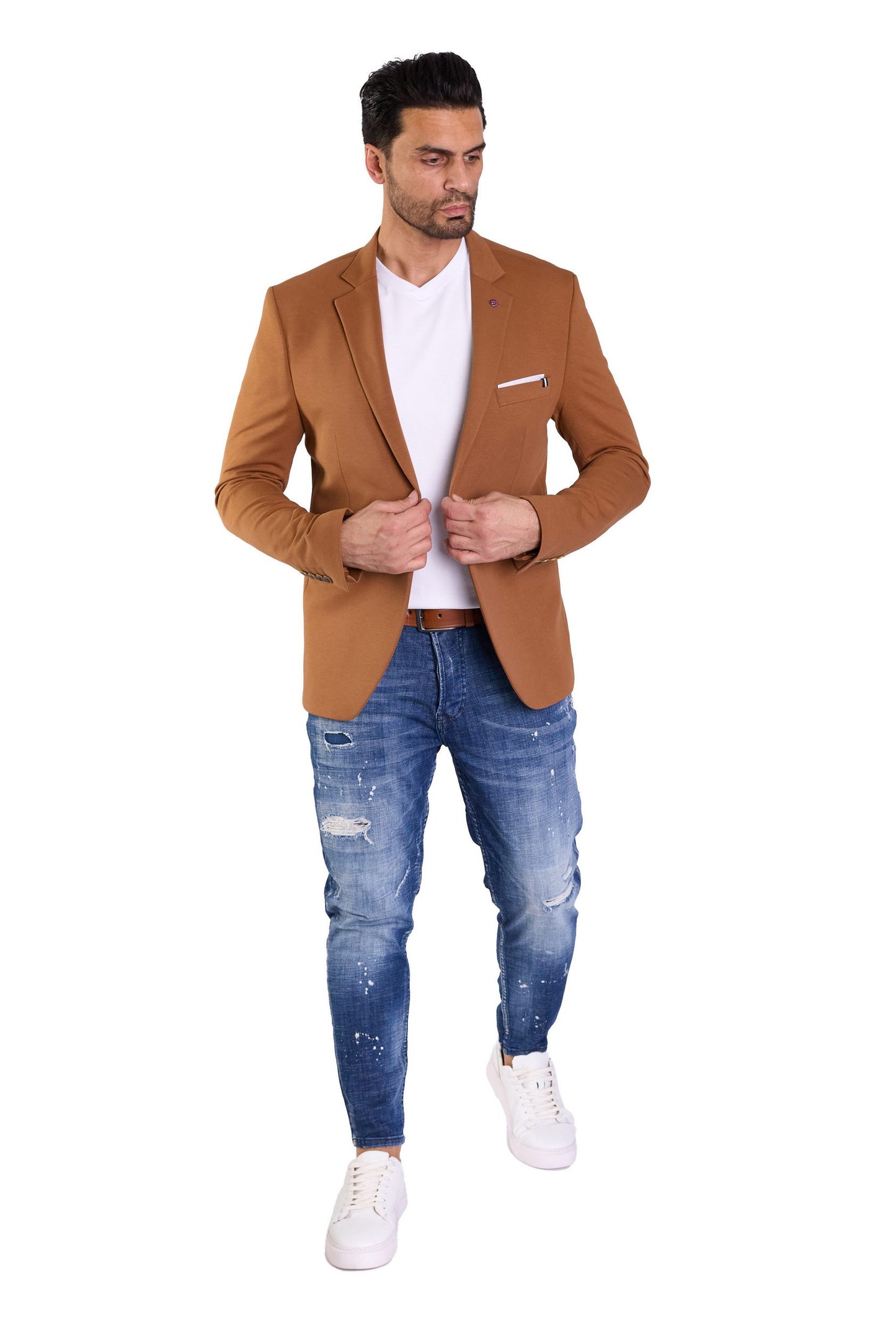 DENIM DISTRIQT Herren Sakko, Sportliches Jersey Sakko, Slim Fit, Modell DQ1307, Camel