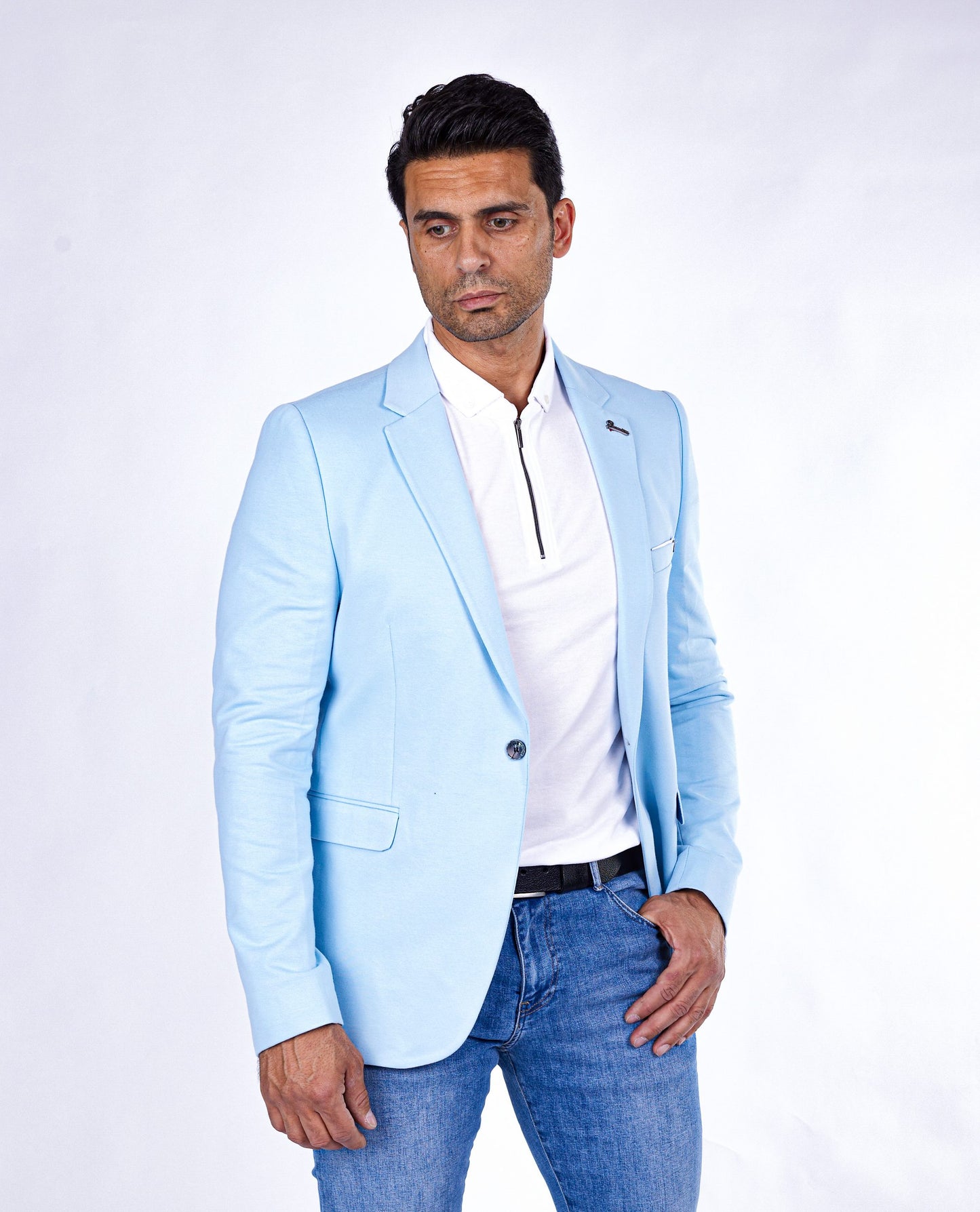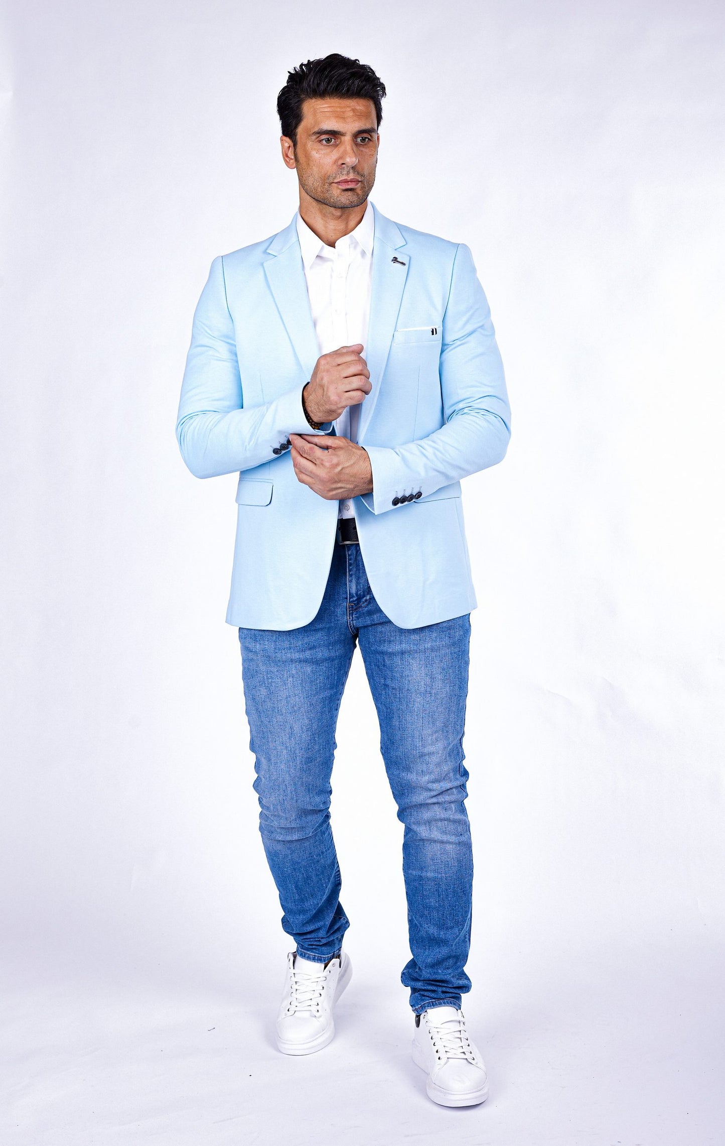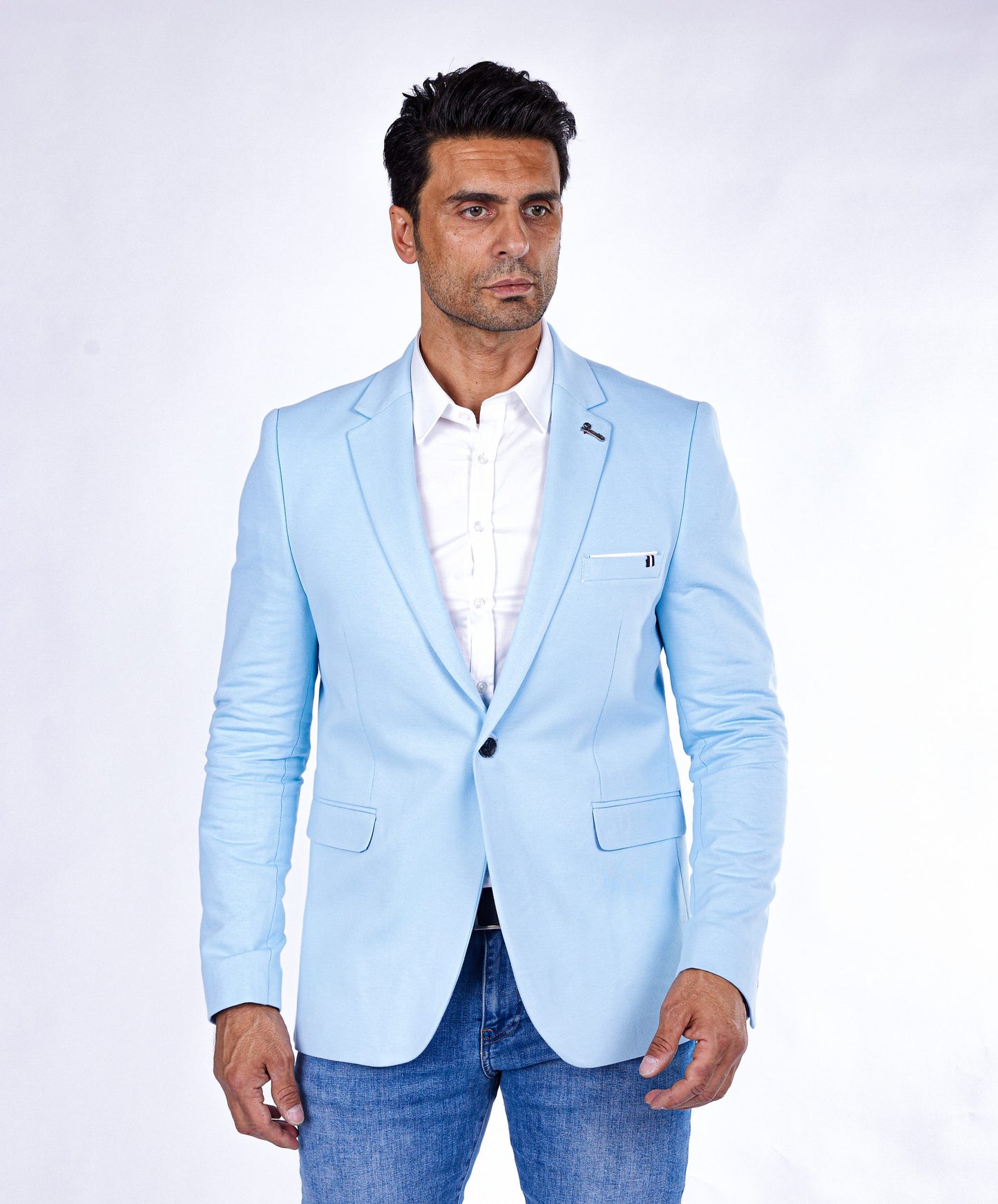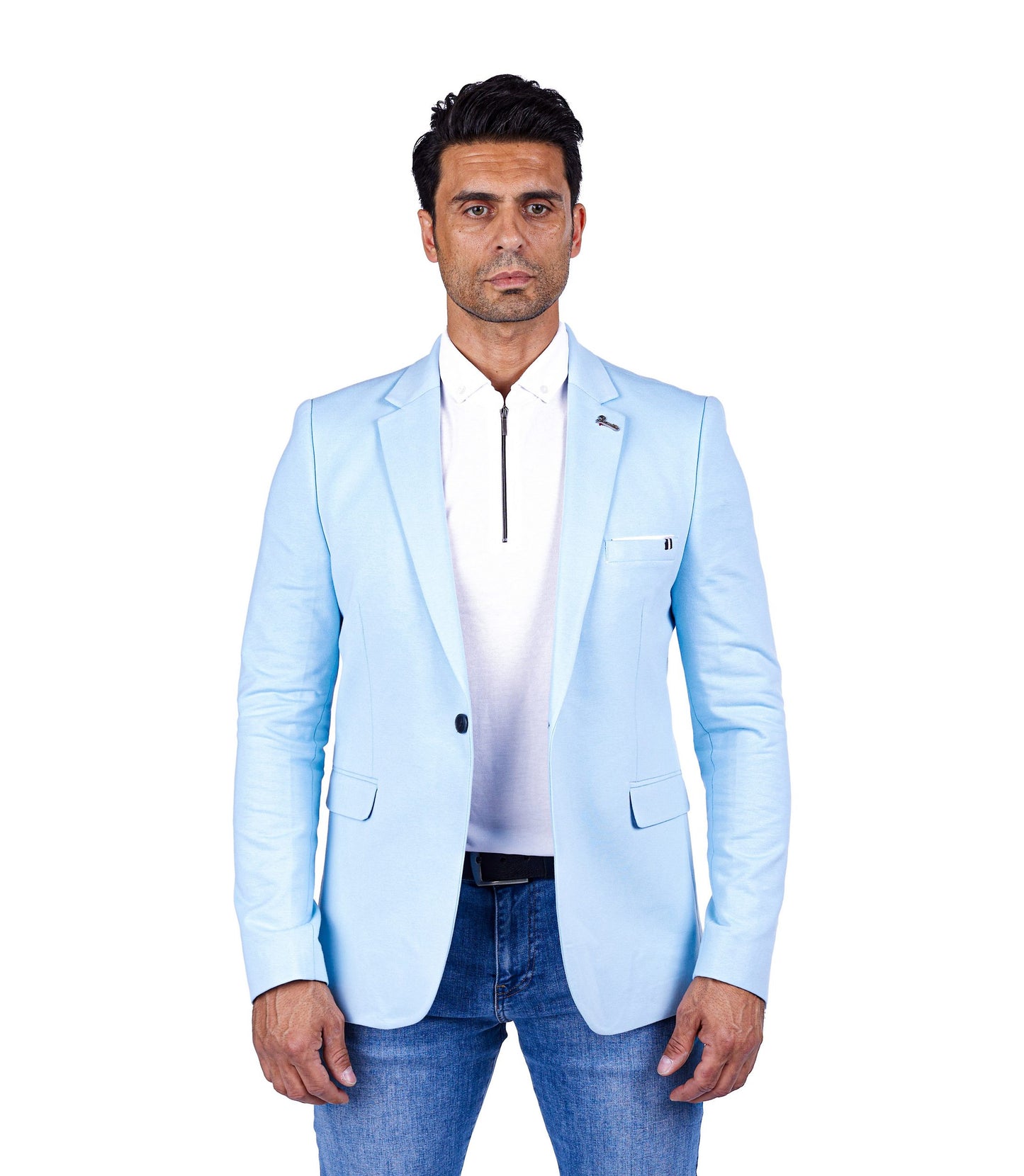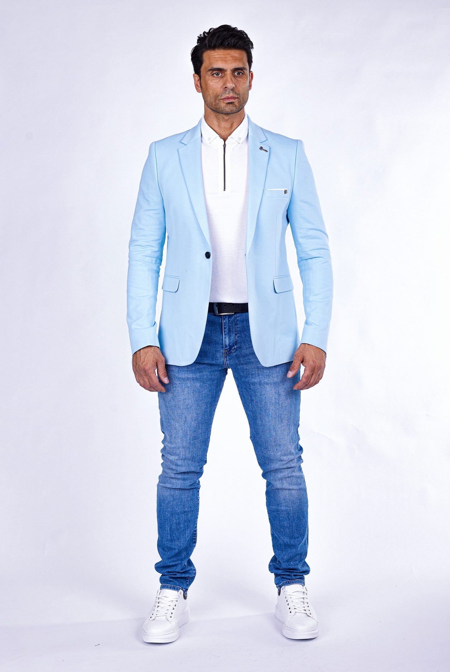 DENIM DISTRIQT Herren Sakko, Sportliches Jersey Sakko, Slim Fit, Modell DQ1307, Hellblau