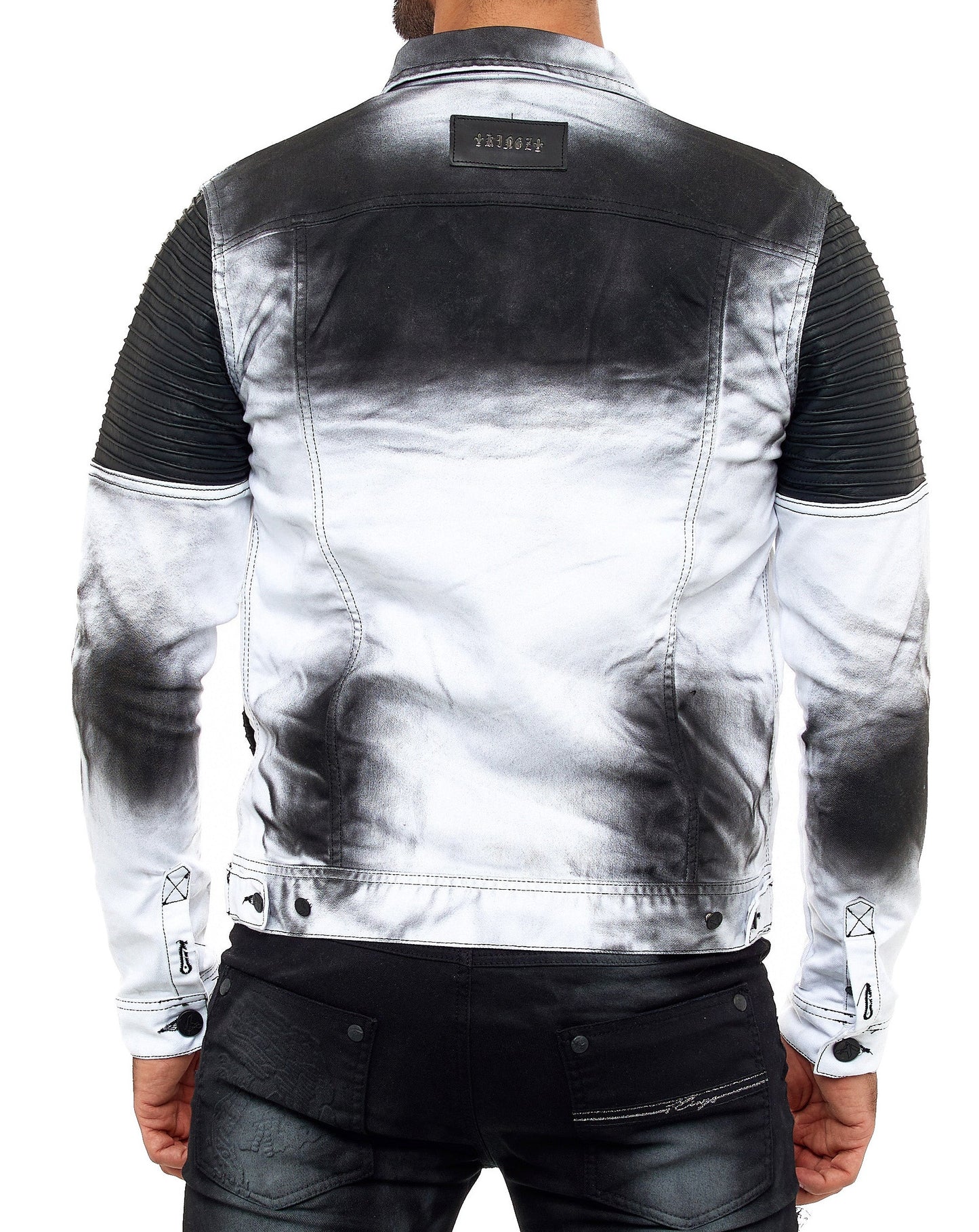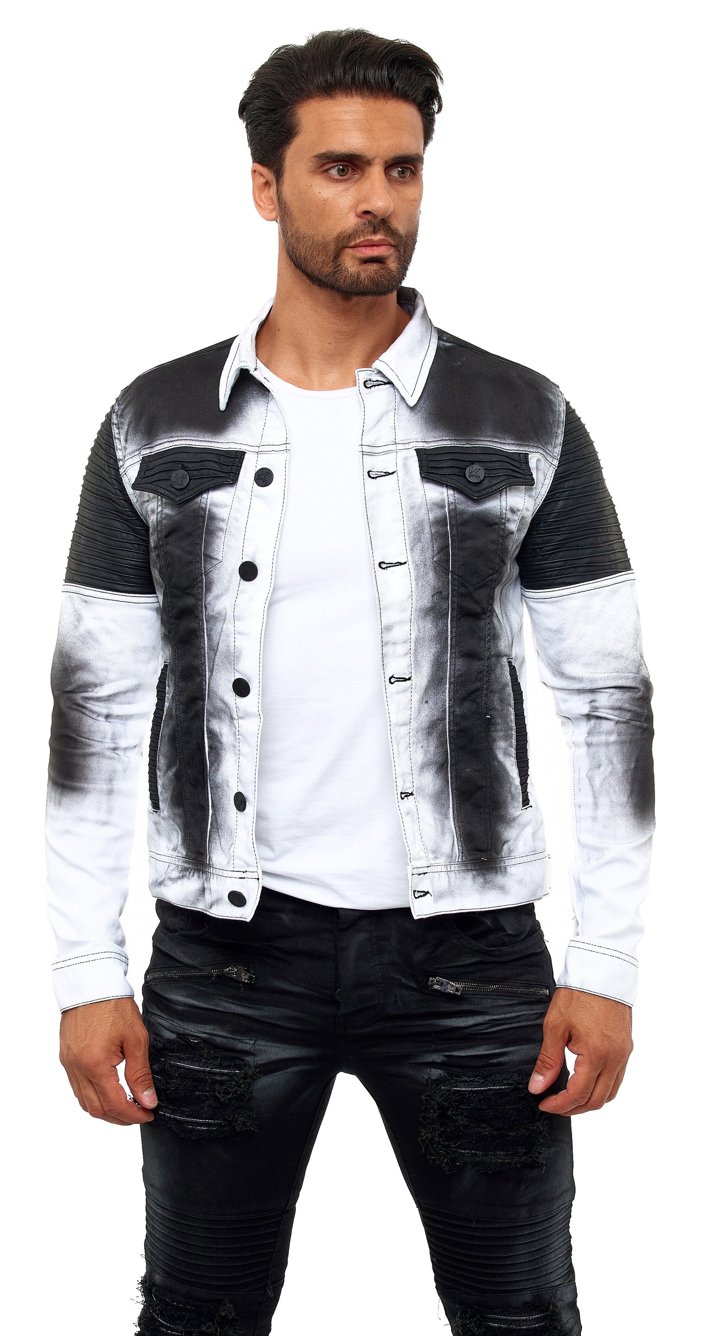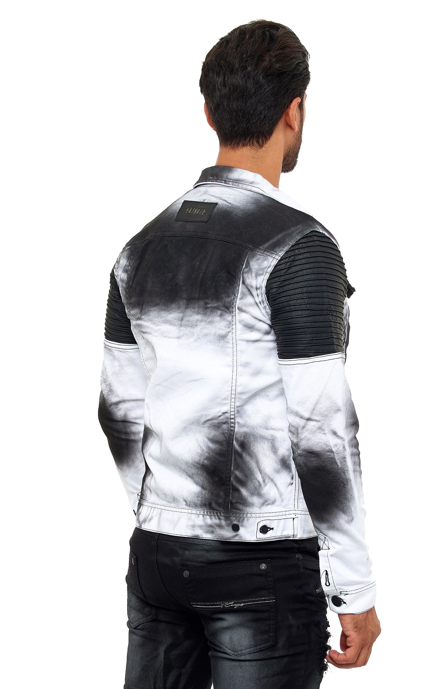 KINGZ men's designer denim jacket, slim fit, tie-dye look, model 1401-2, white/black