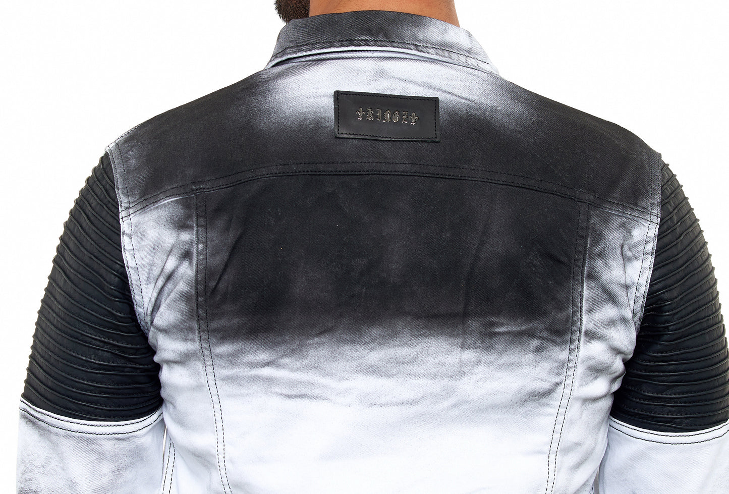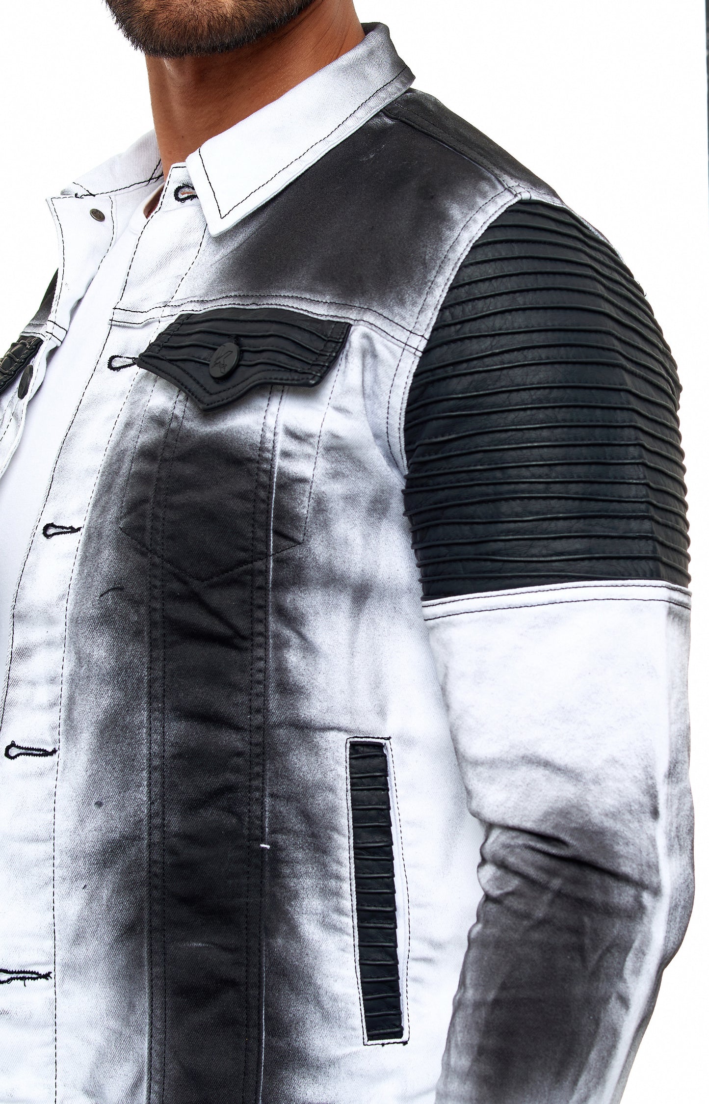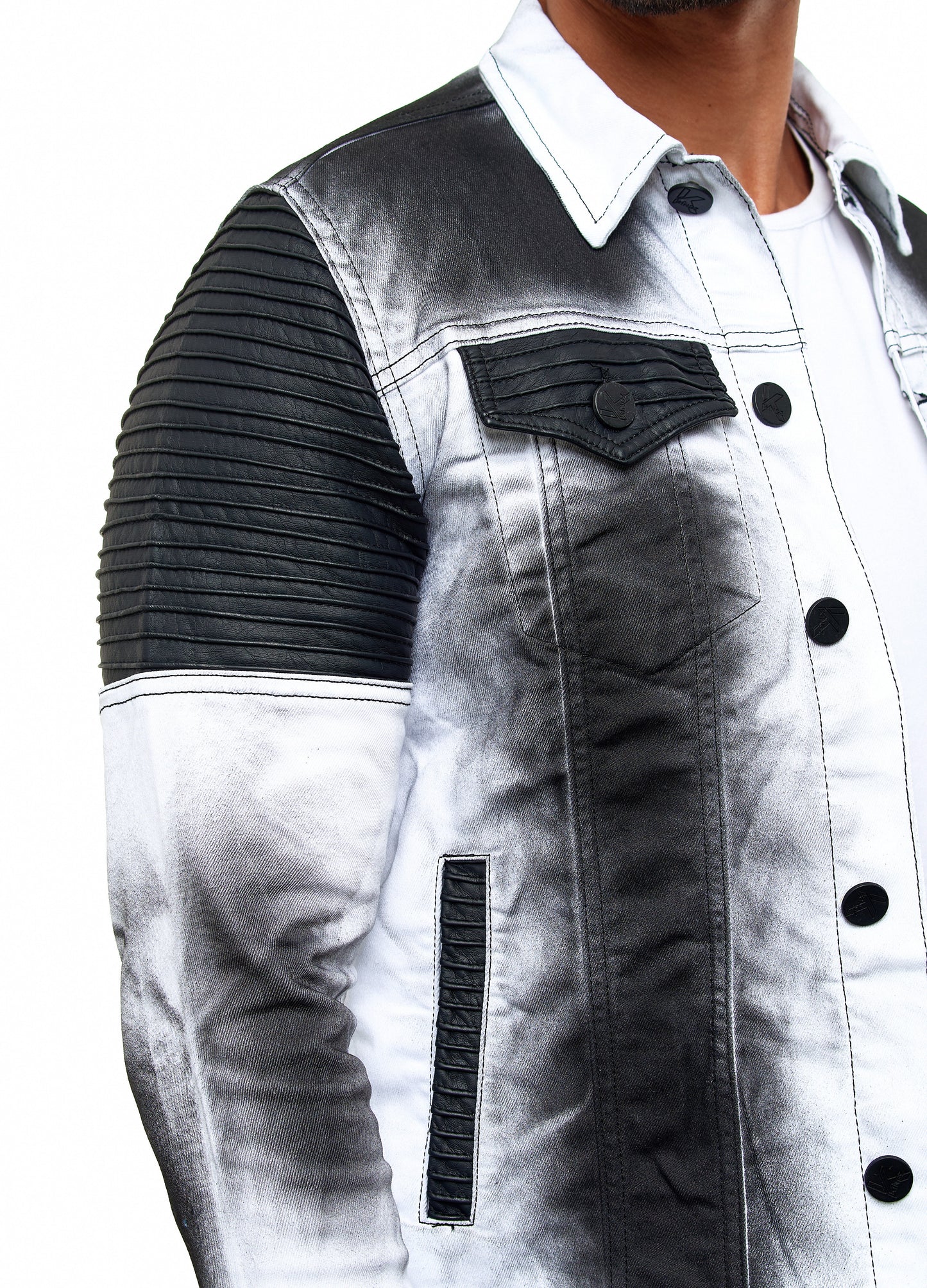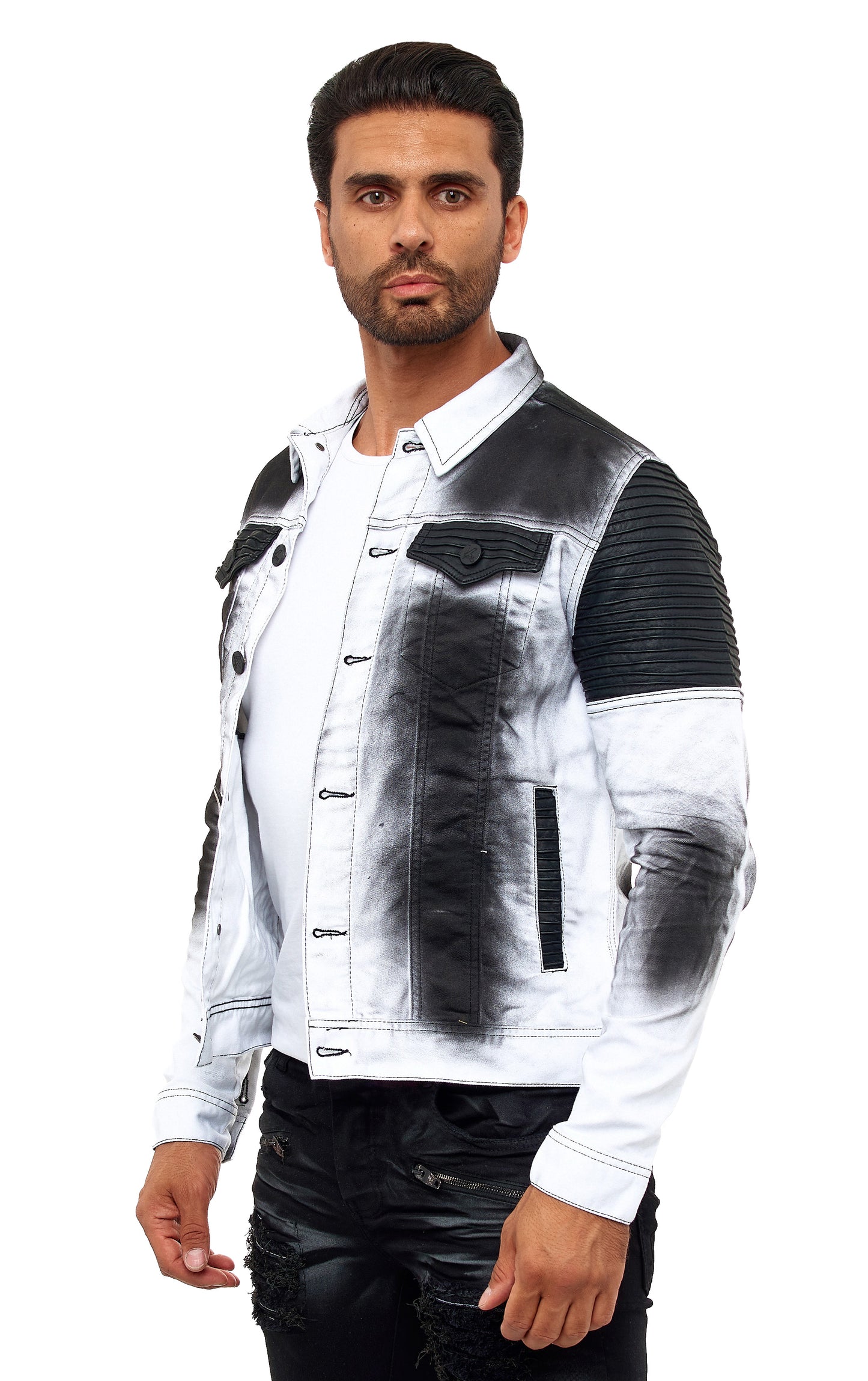 KINGZ men's designer denim jacket, slim fit, tie-dye look, model 1401-2, white/black