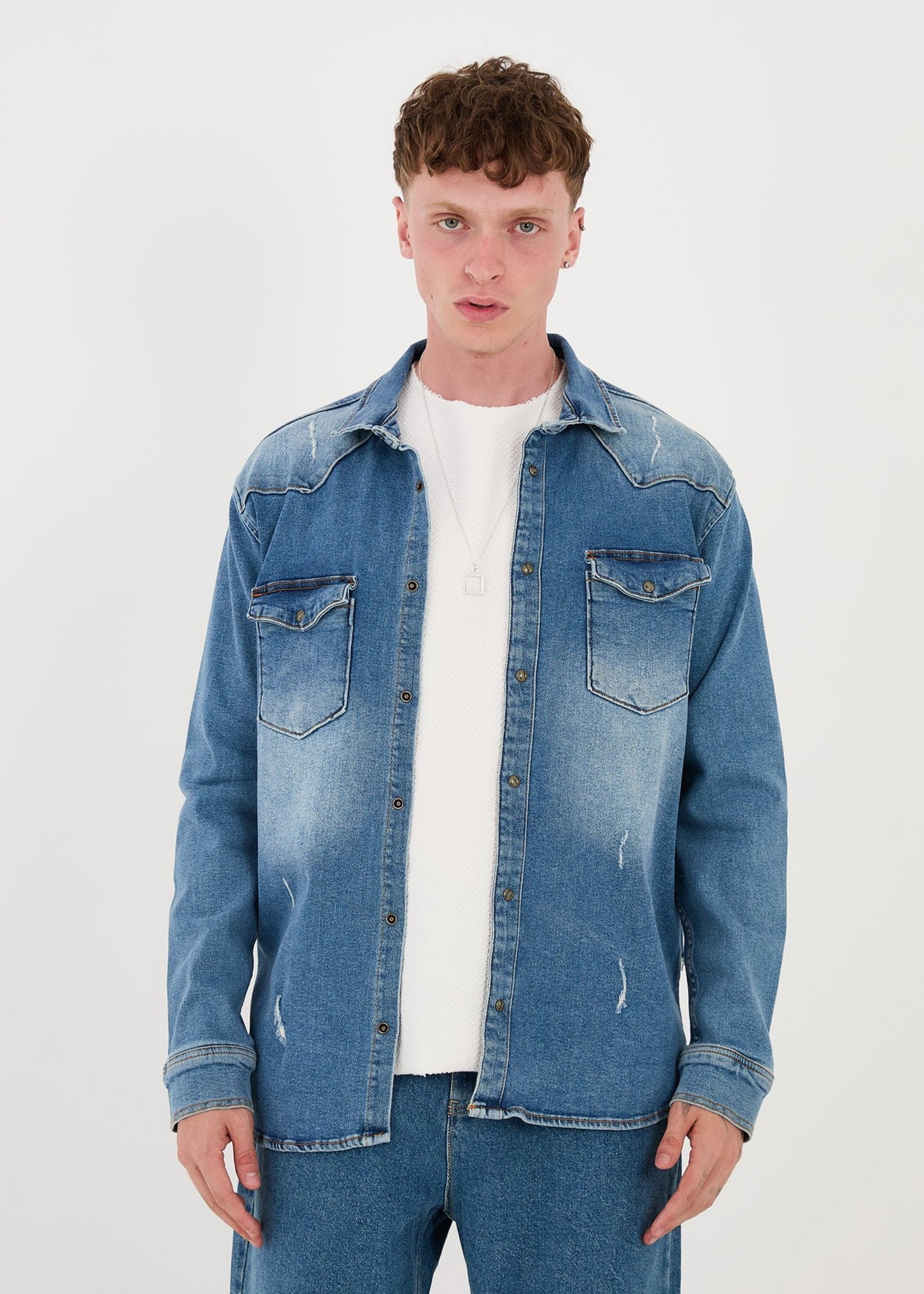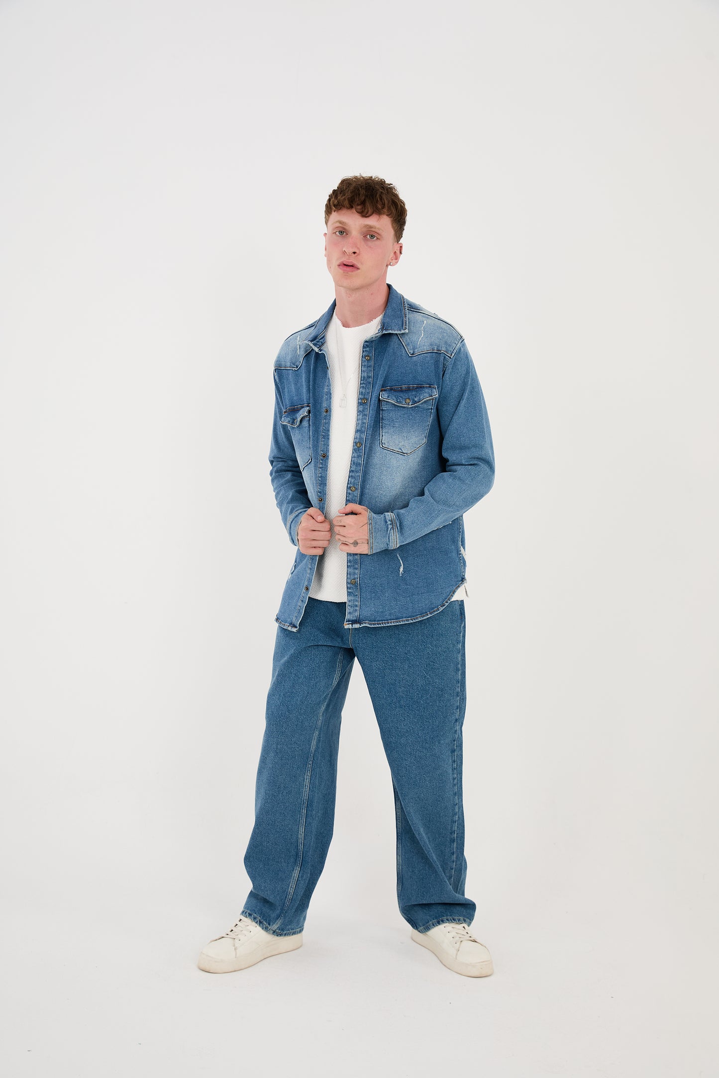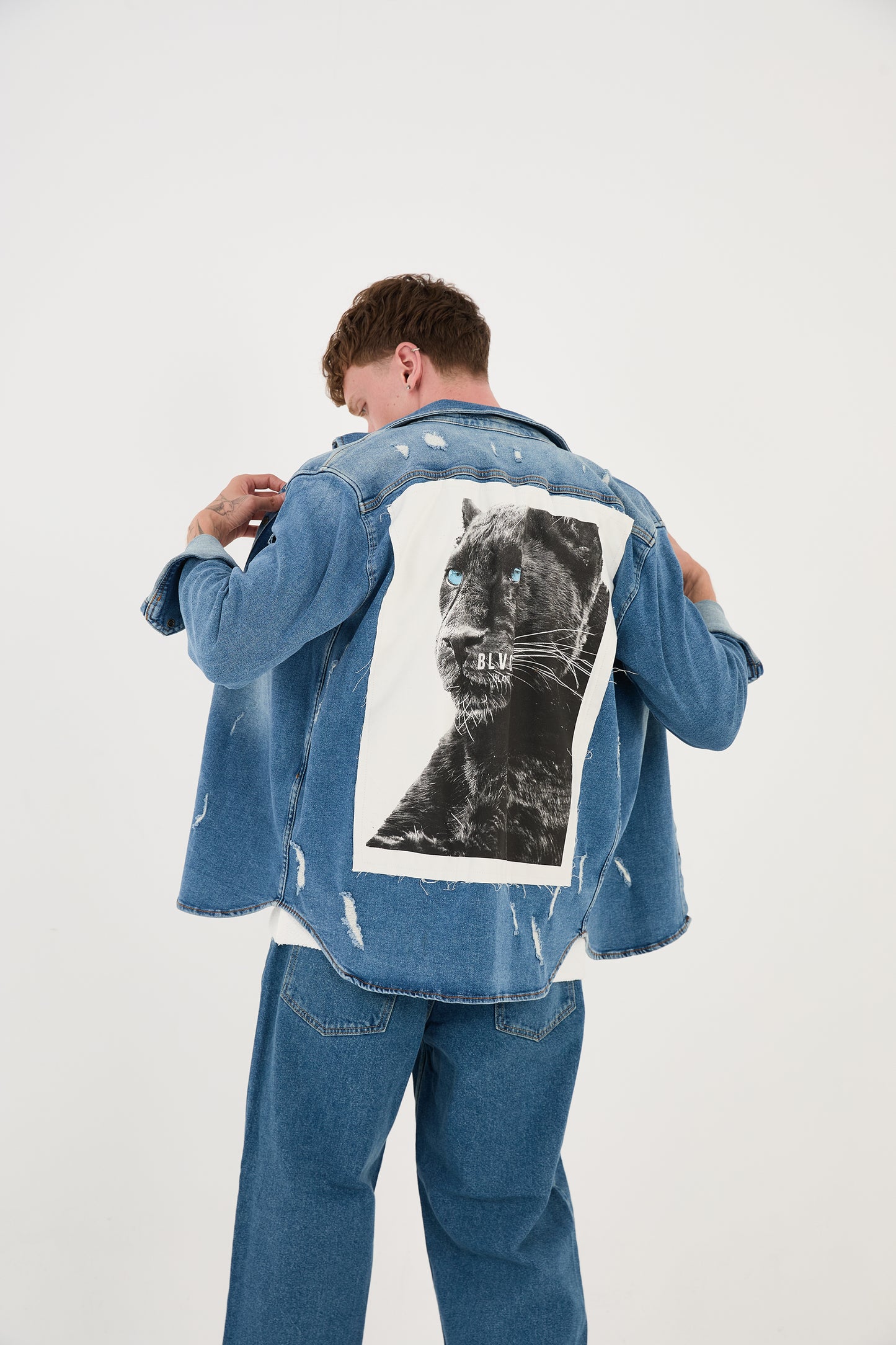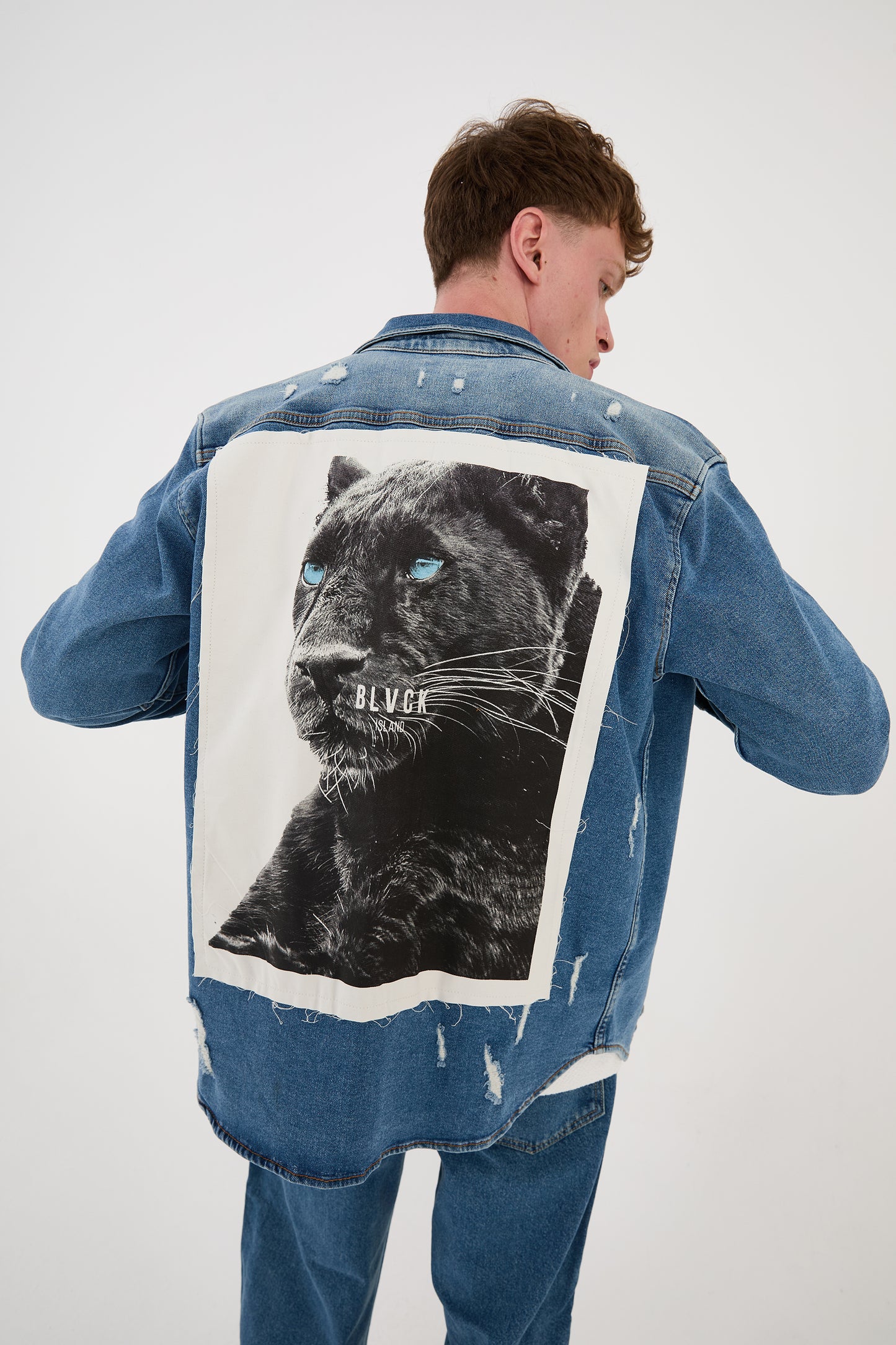- Special features: Large panther print on the back, destroyed effects, stonewashed look, pointed collar, sports cuffs, patch breast pockets