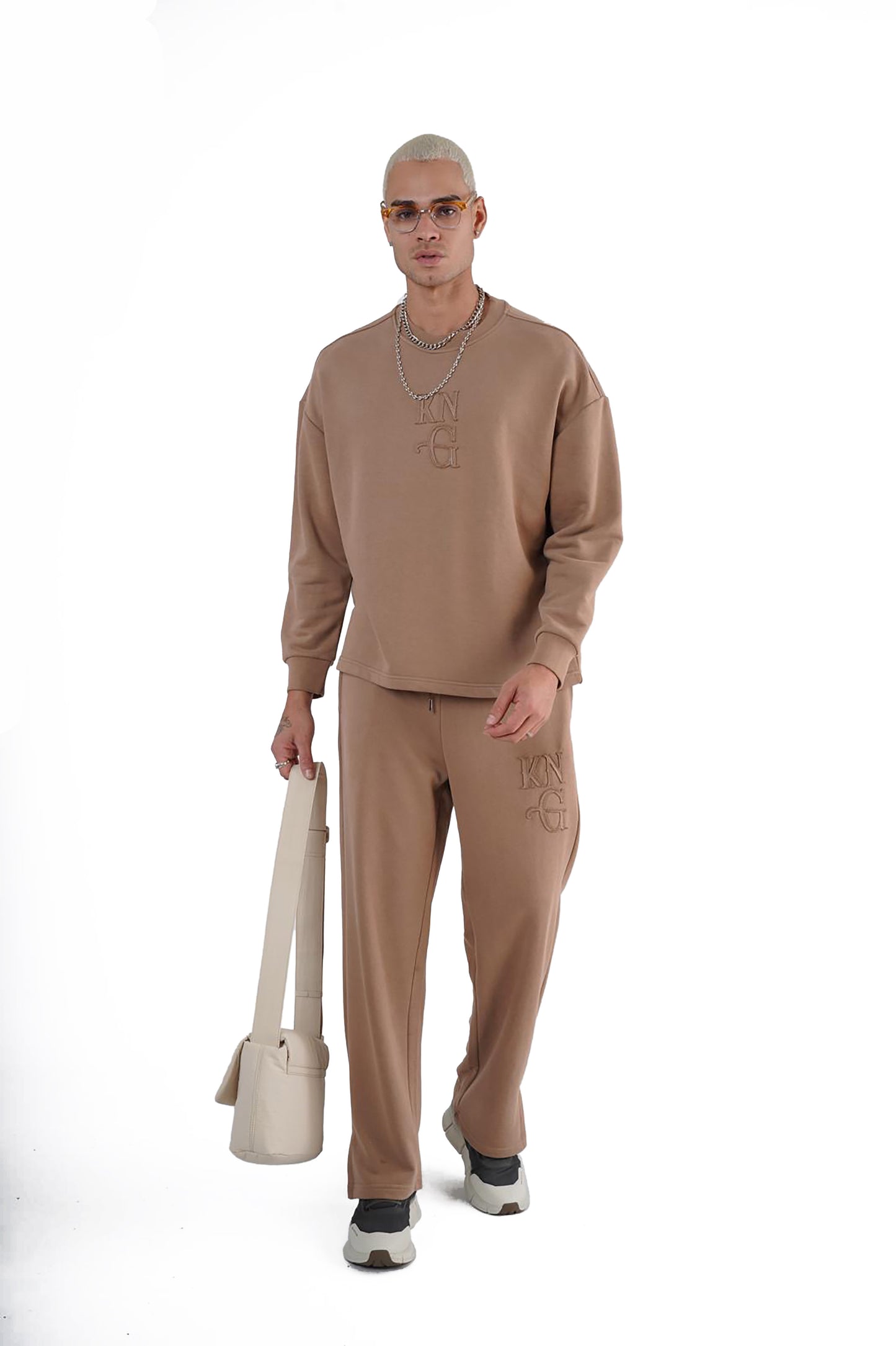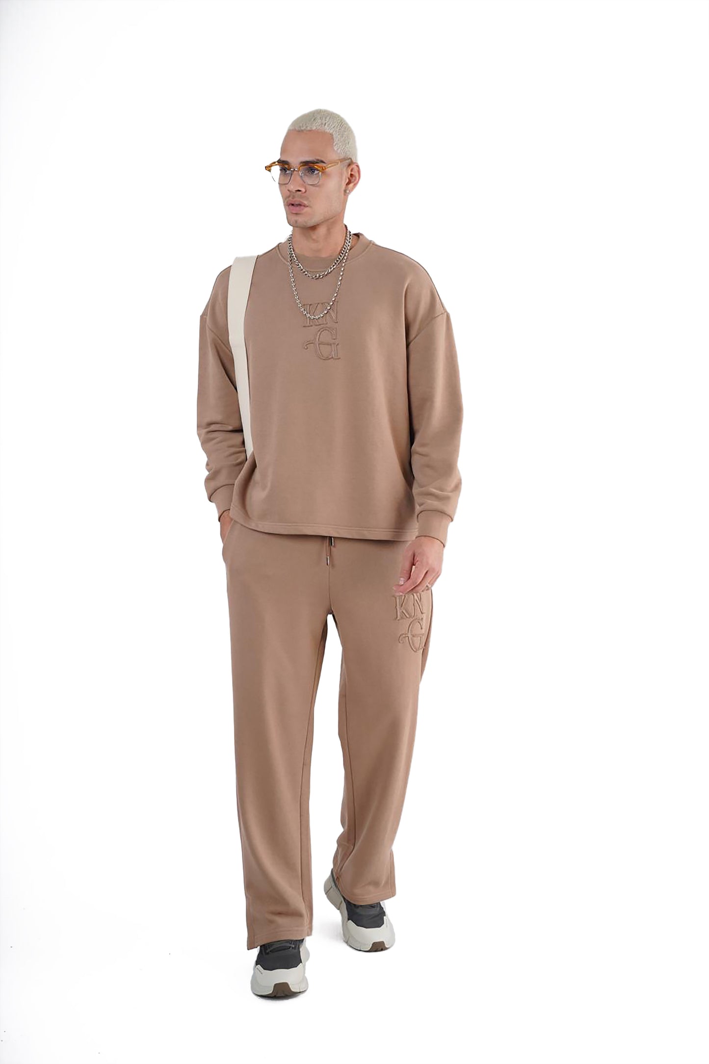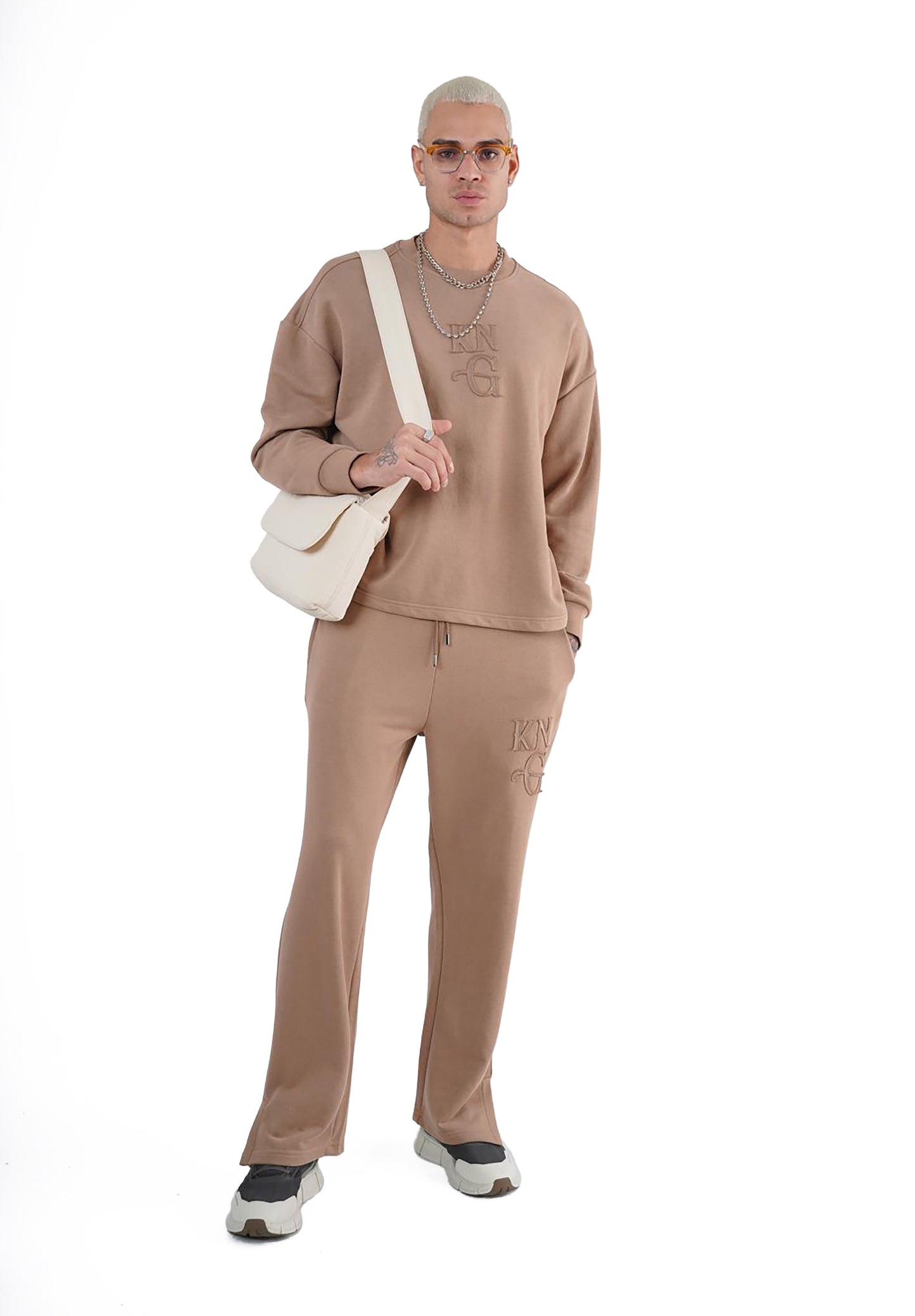 Herren Jogger Kombi Zweiteiler, Oversized Fit Freizeitanzug, Modell DQ KB374, Hellbraun