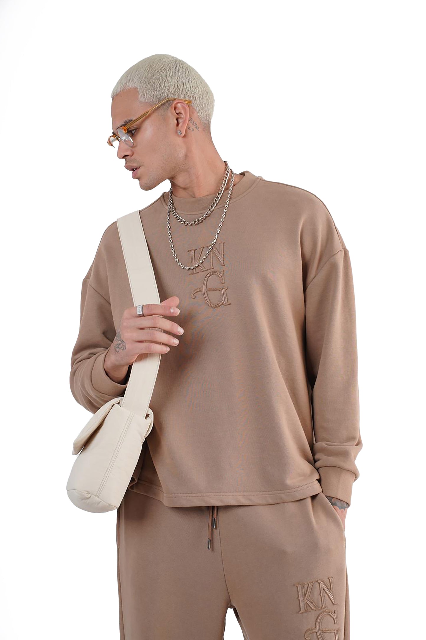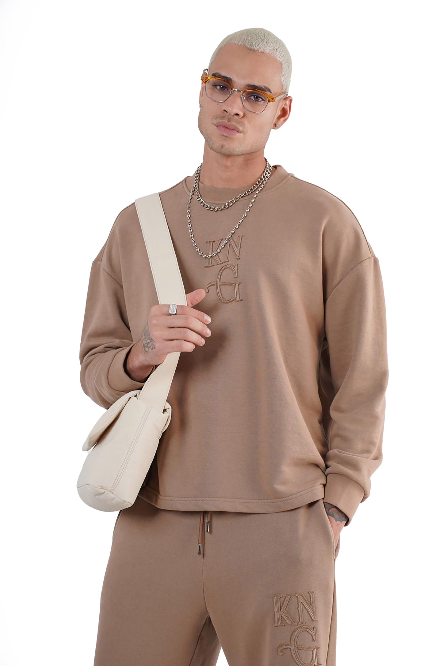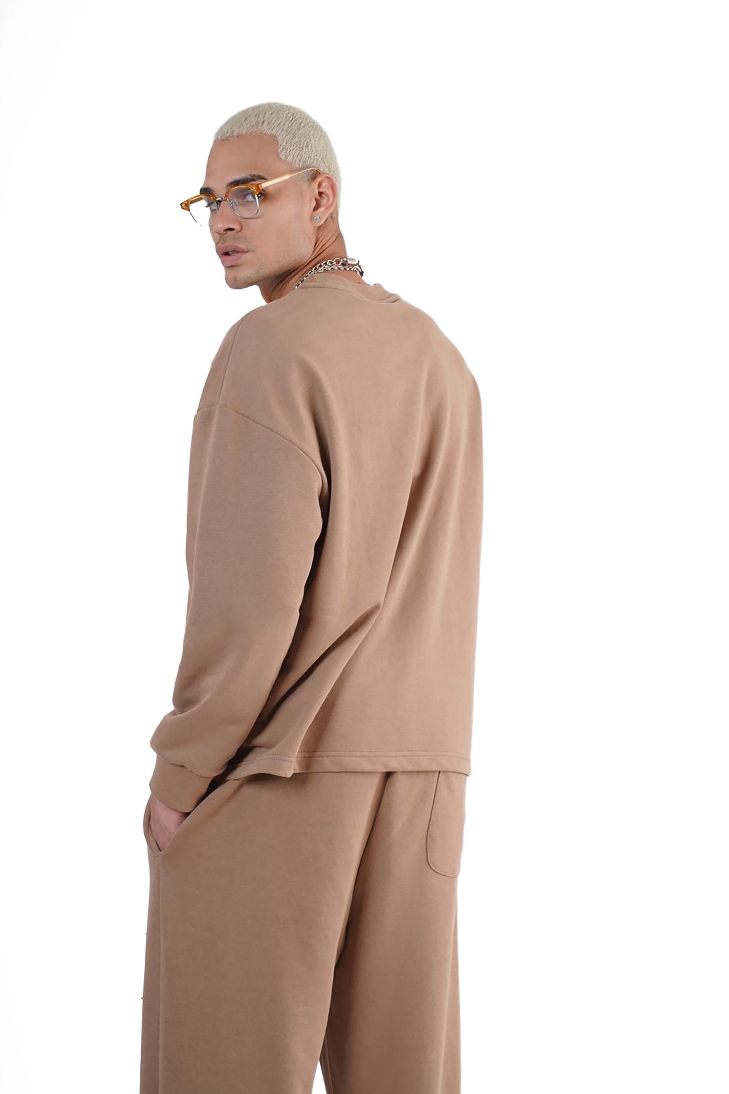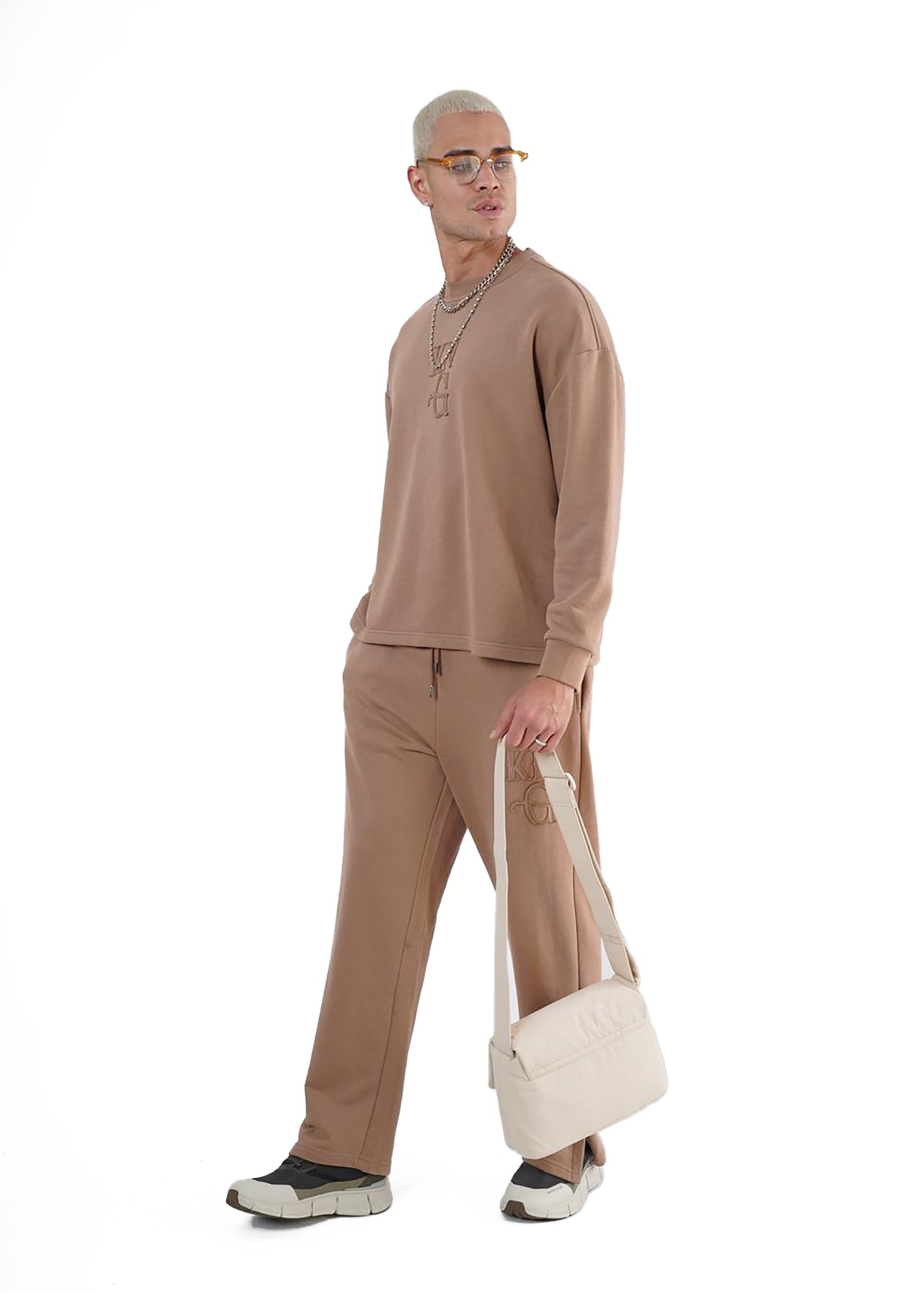 Herren Jogger Kombi Zweiteiler, Oversized Fit Freizeitanzug, Modell DQ KB374, Hellbraun