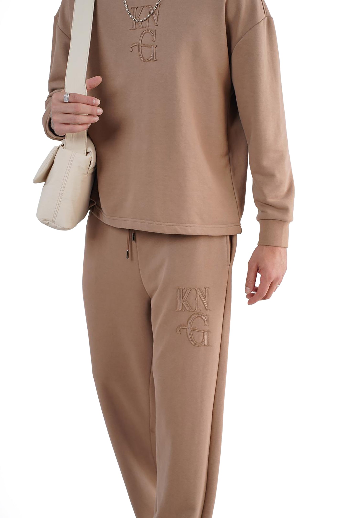Dieser Freizeitanzug zeichnet sich durch seinen hohen Tragekomfort, seinen urbanen Style und seine Vielseitigkeit aus. Das hochwertige Materialgemisch und die sorgfältige Verarbeitung garantieren Langlebigkeit und ein angenehmes Tragegefühl. Die "KNG"-Stickerei und der Schlitz am Hosenbeinabschluss machen diesen Anzug zu einem echten Hingucker.