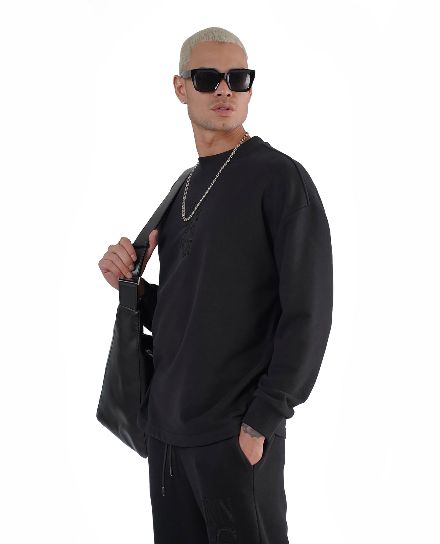 Herren Jogger Kombi Zweiteiler, Oversized Fit Freizeitanzug, Modell DQ KB374, Schwarz