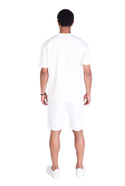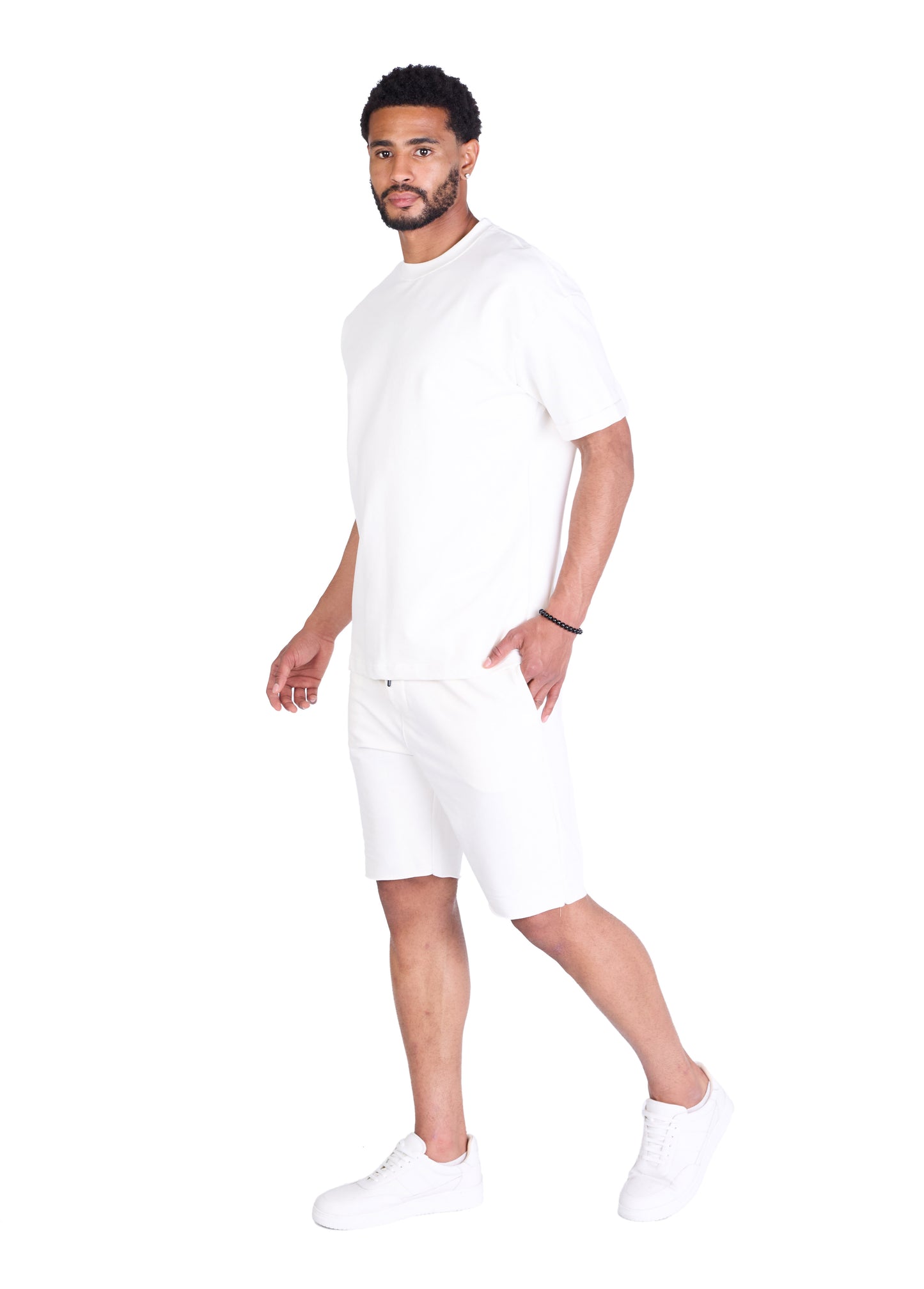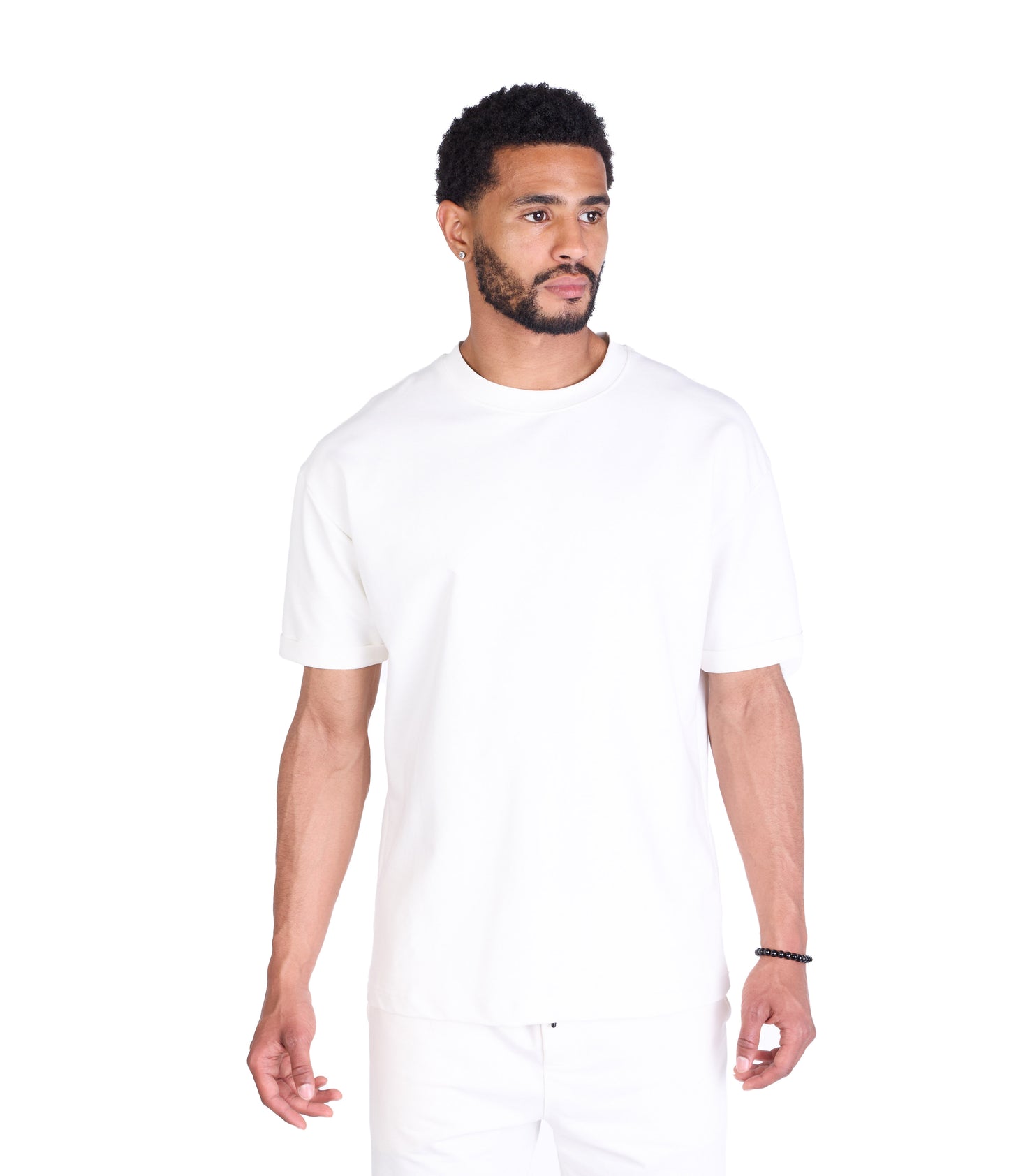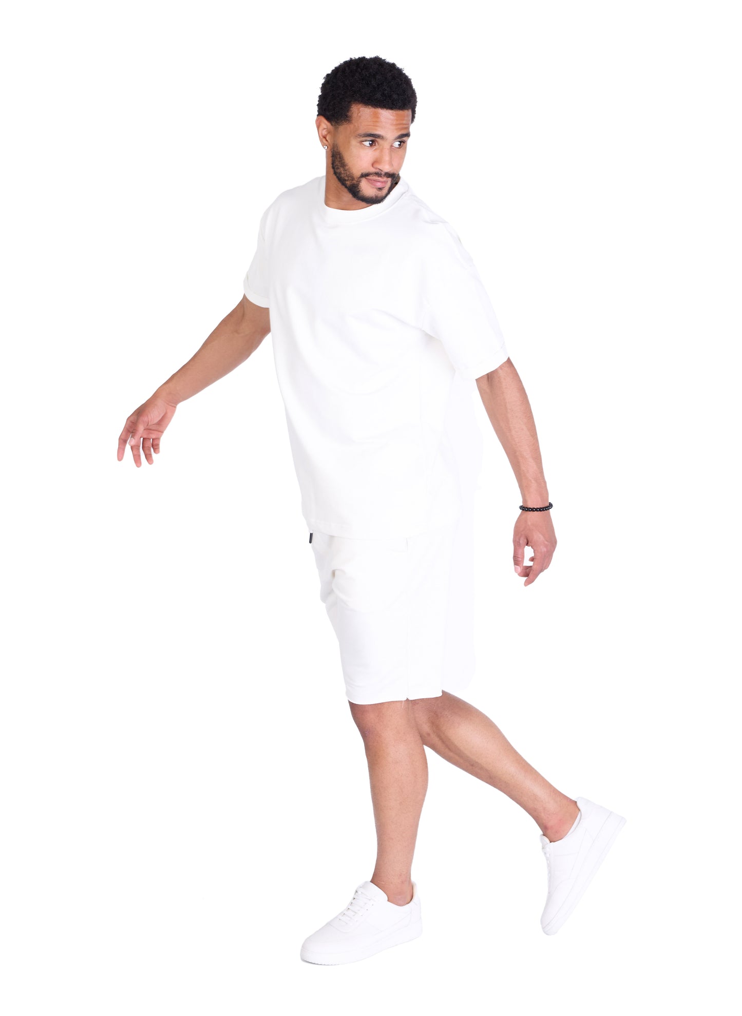 - Weiß (T-Shirt mit gekrämpelten Ärmeln, Hose mit offenem Beinabschluss)