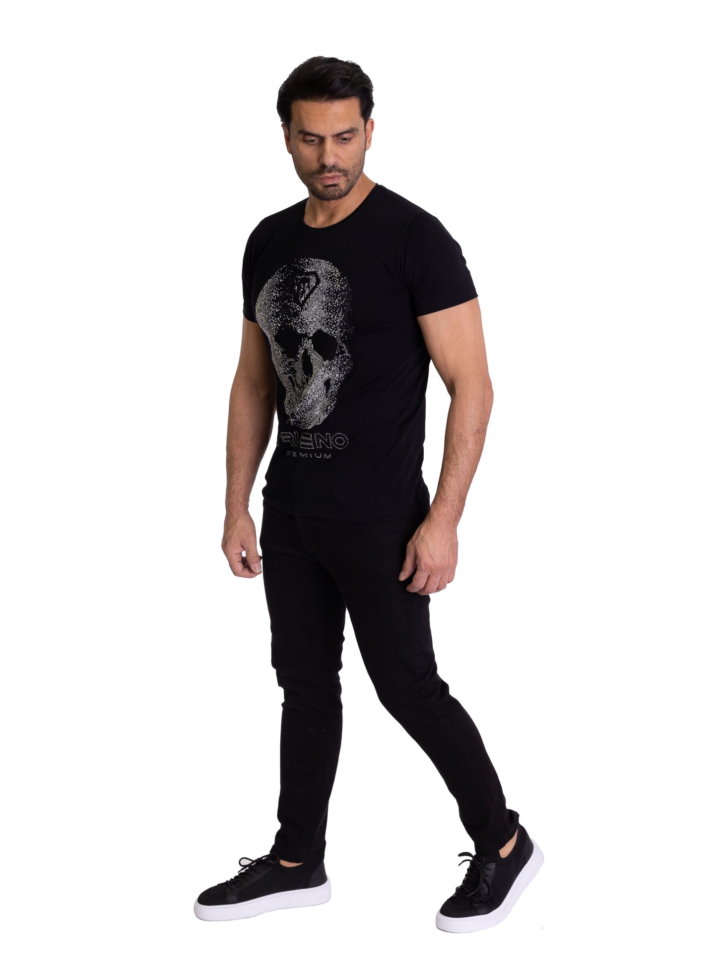 Men's T-Shirt, Body Fit, Rhinestone Print "Skull", Model T15