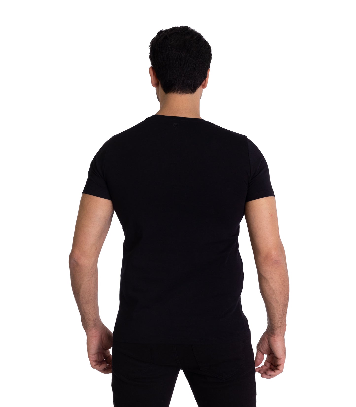 Men's T-shirt in body fit style. Front printed with rhinestone "skull" motif. Thanks to the high-quality cotton material, it feels comfortable on the skin and accentuates the body. Ideal for combining with our jeans or denim shorts.