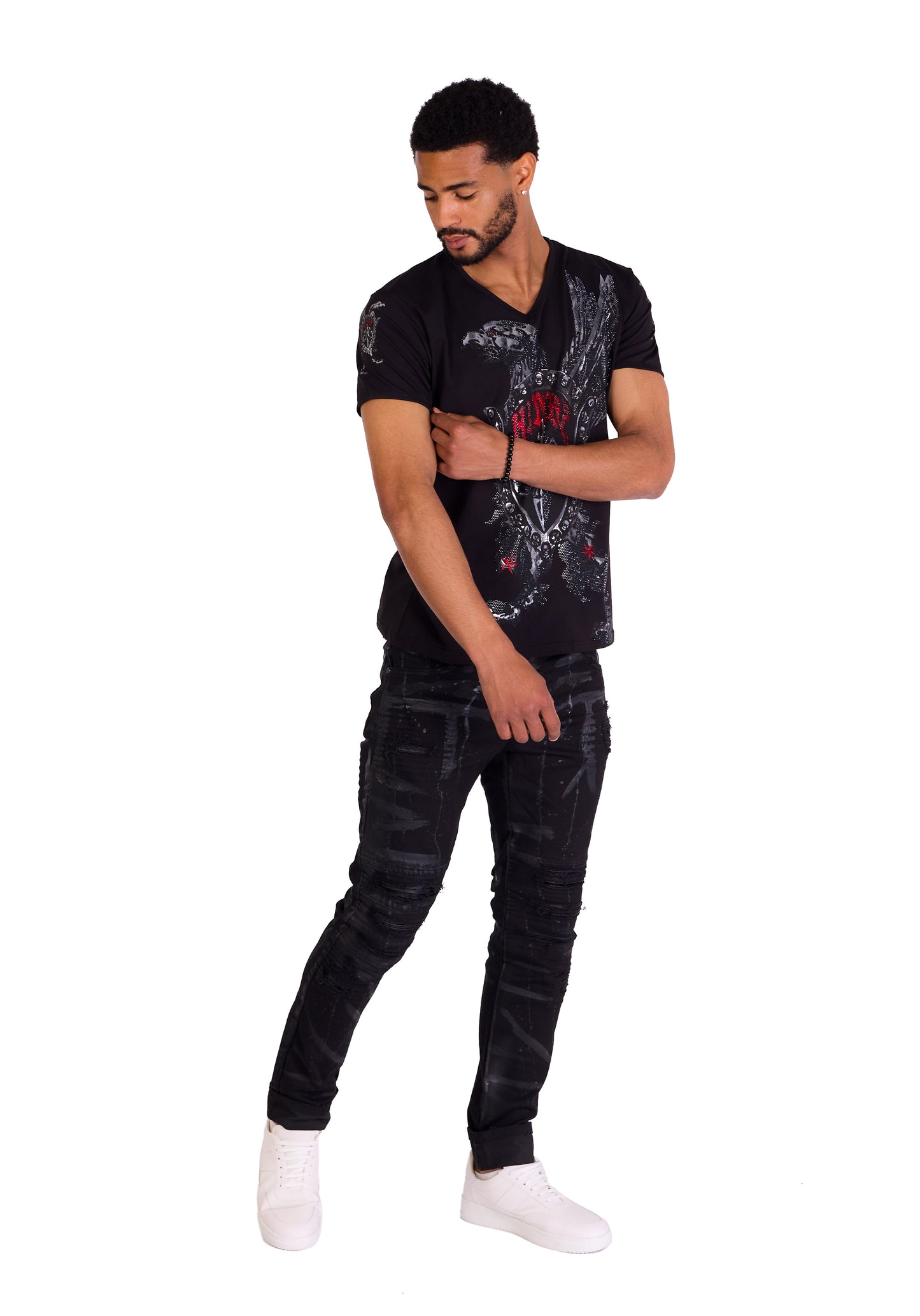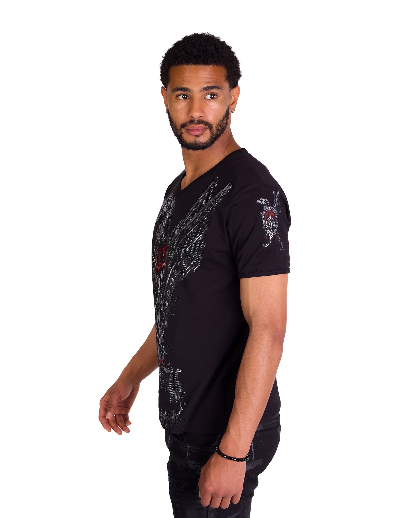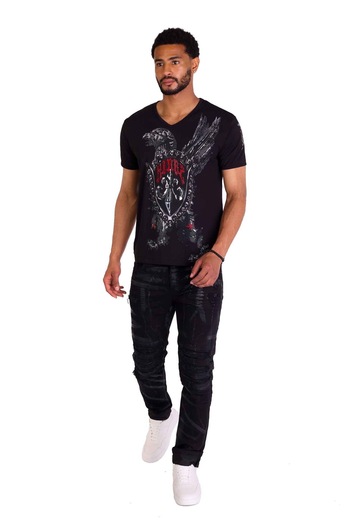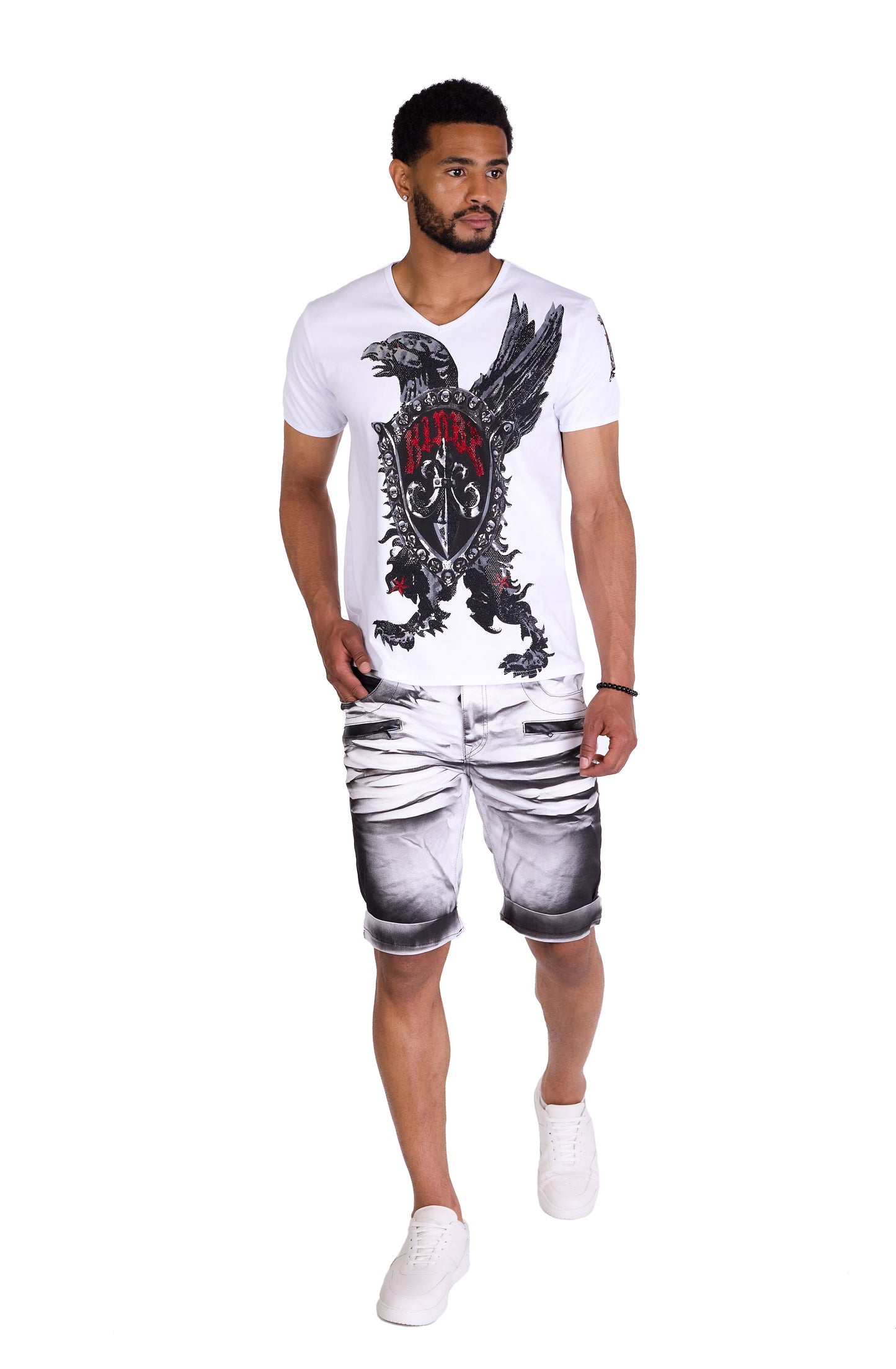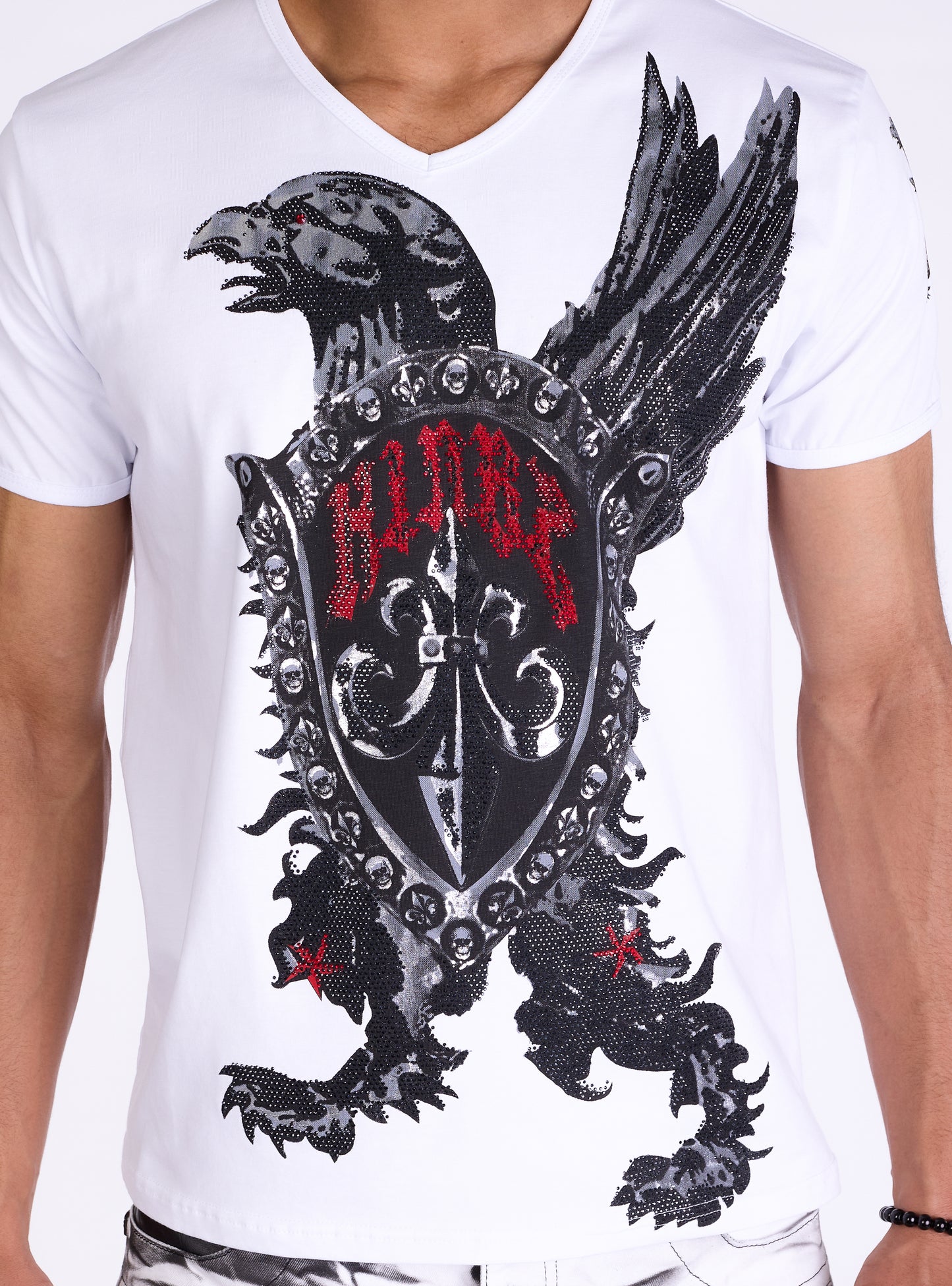 Men's T-Shirt "Kingz Protector" - Regular Fit with eagle motif and rhinestone applications