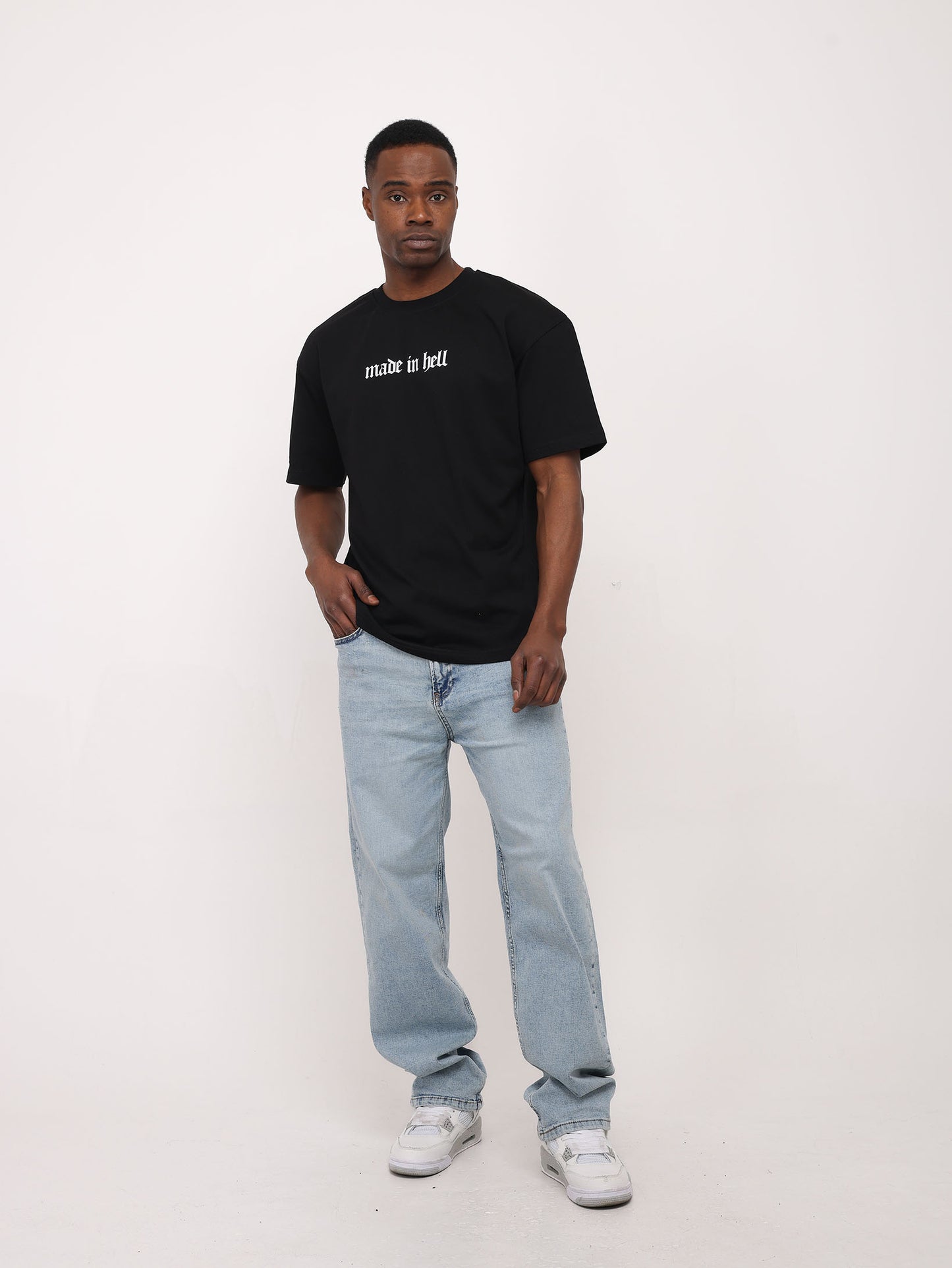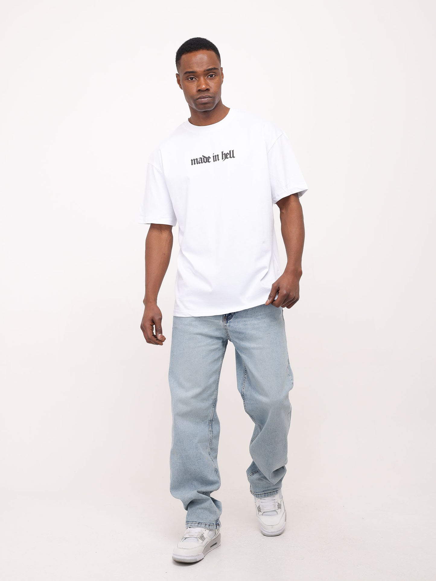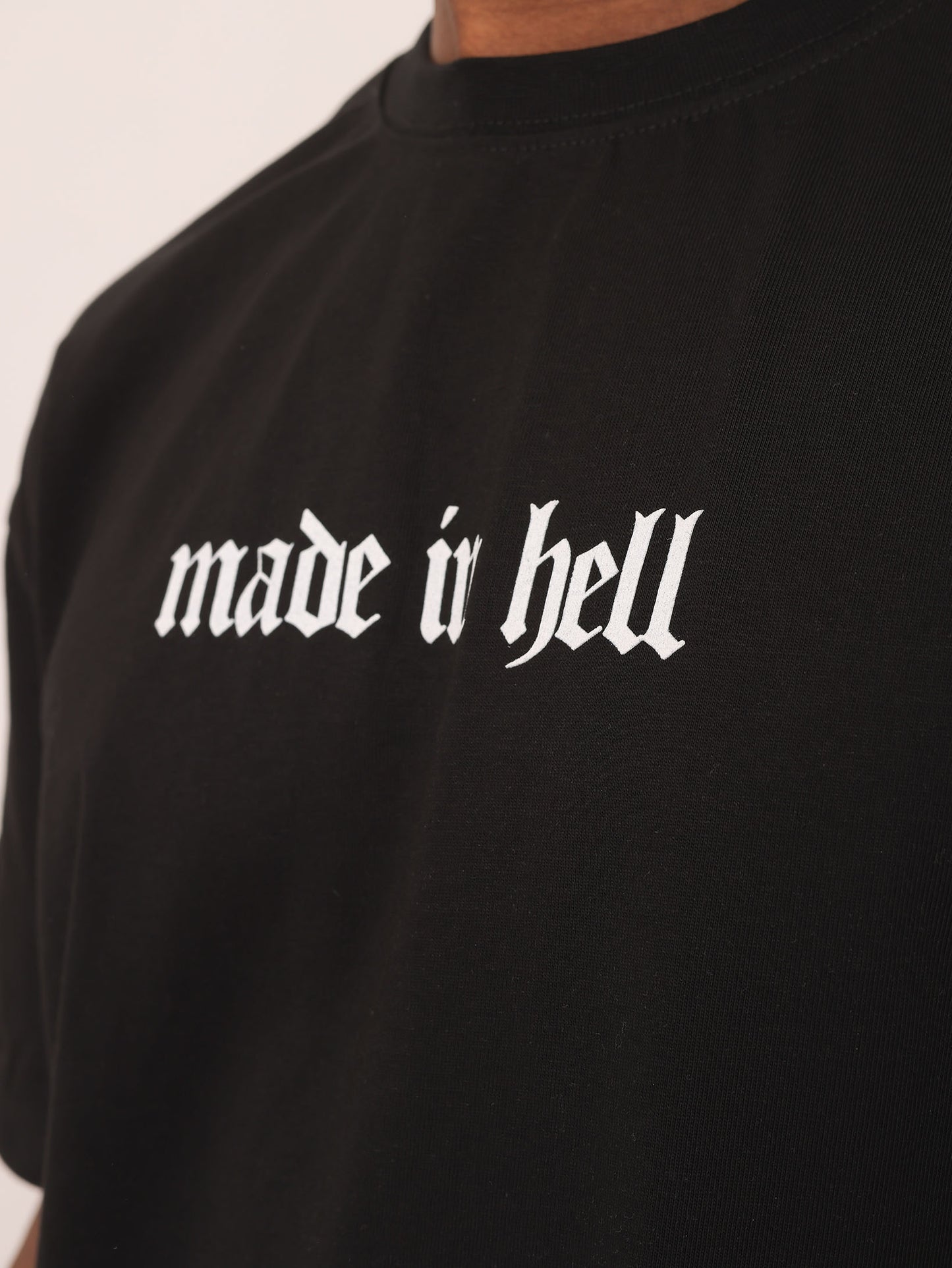 Are you ready for the ultimate streetwear look? Then our oversized T-shirt “Made in Hell” is just the thing for you! With its wide cut and provocatively cool design, you'll attract everyone's attention.