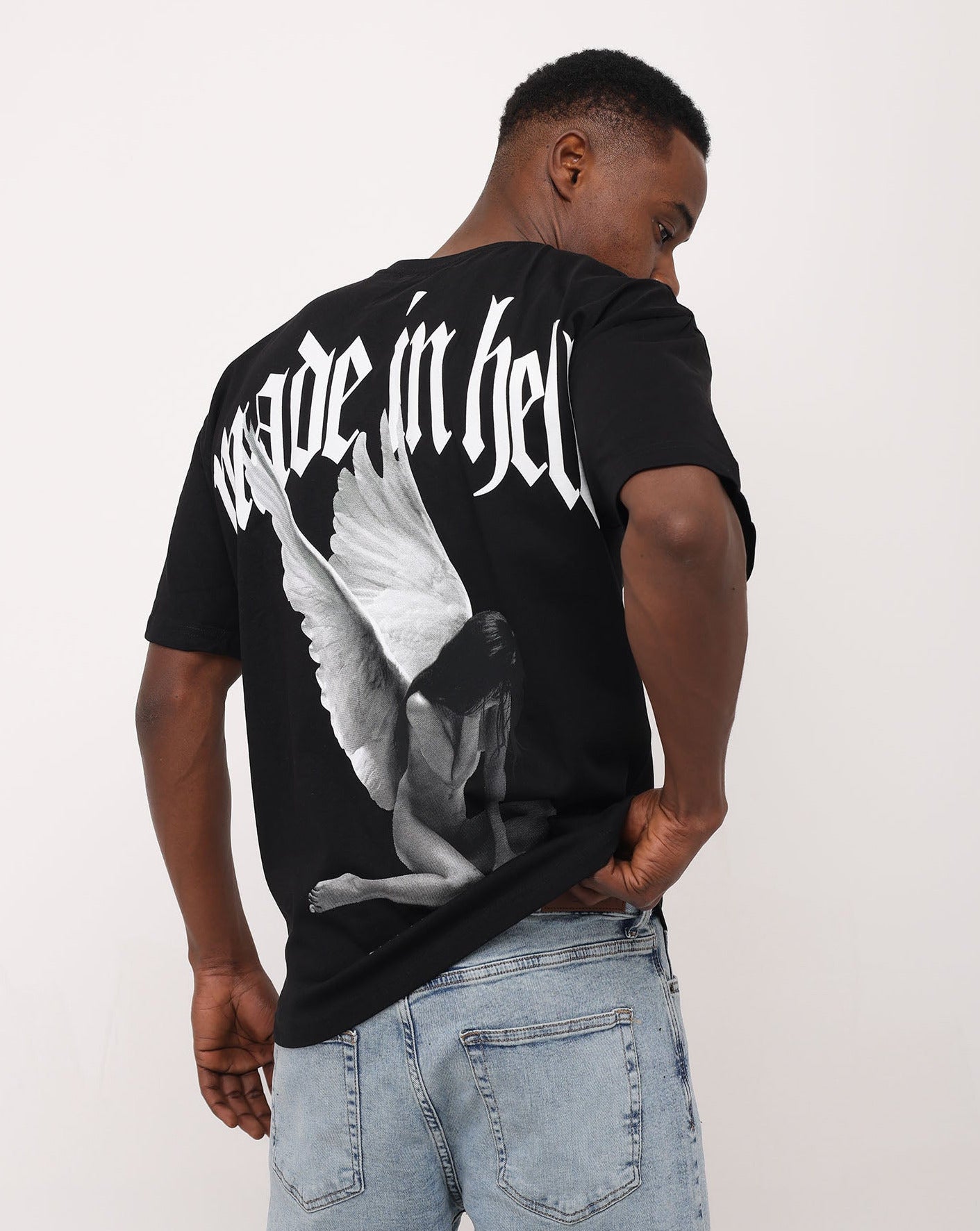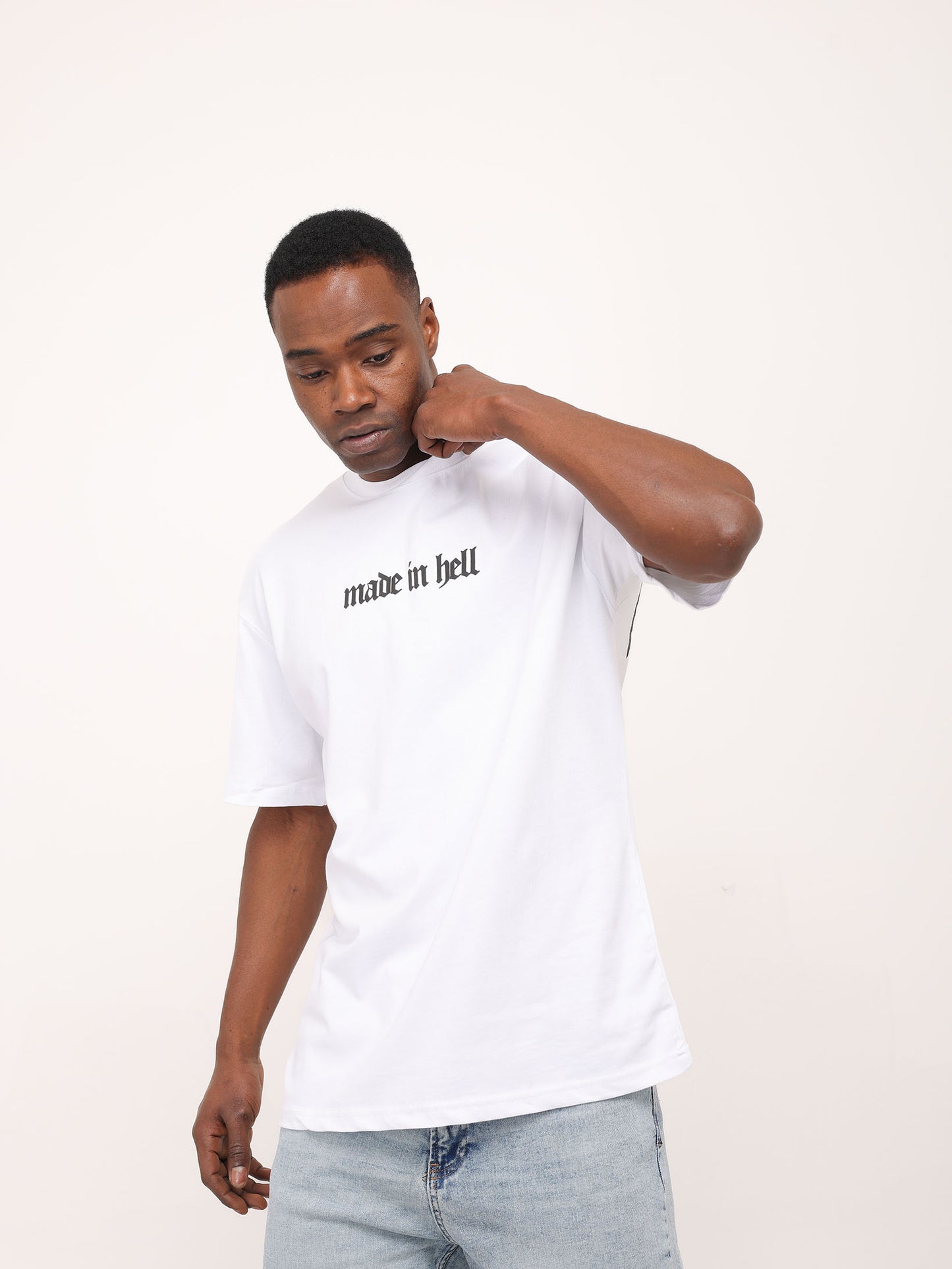 Men's T-shirt with print "Made in Hell", oversized fit, model C3008, white or black