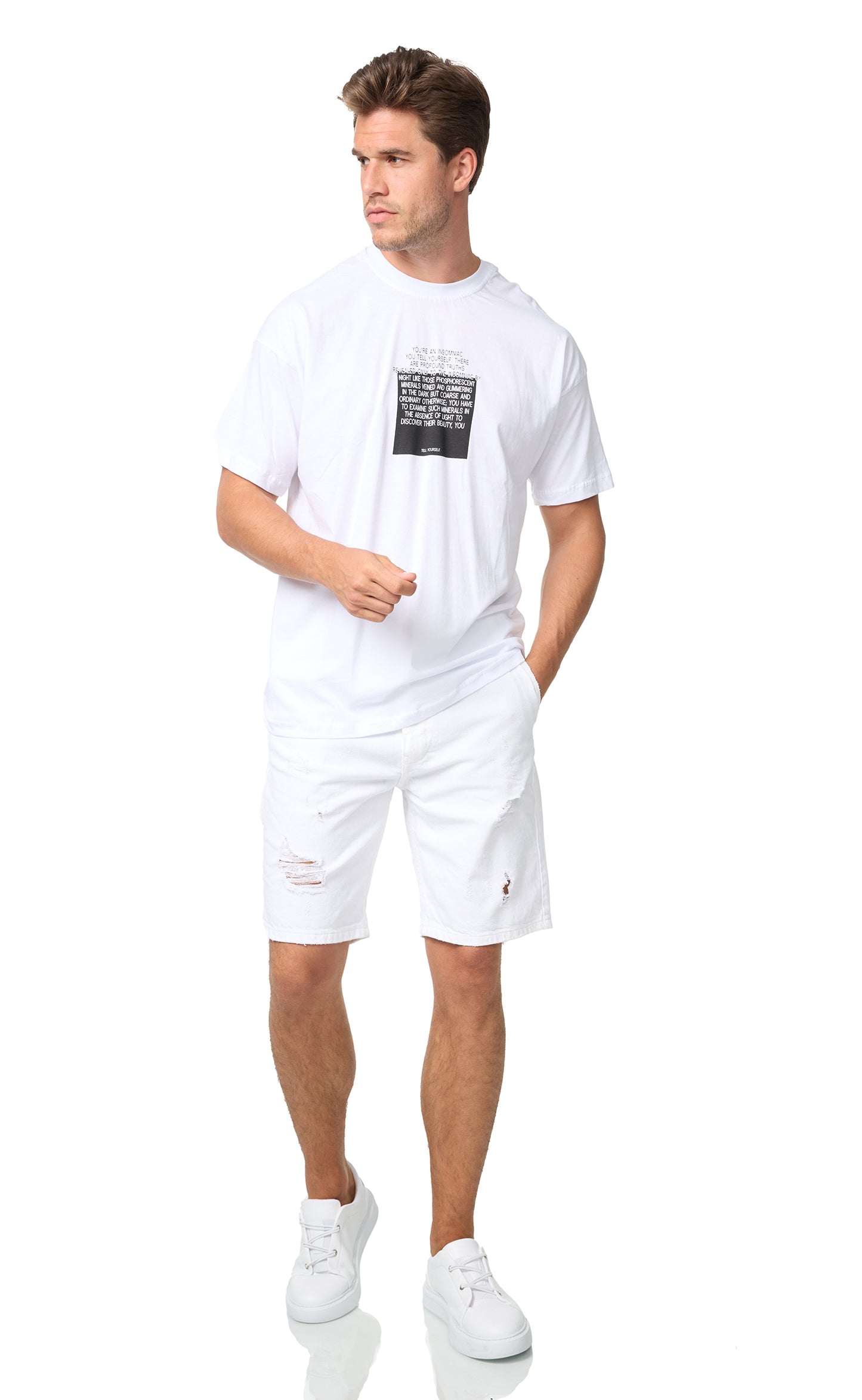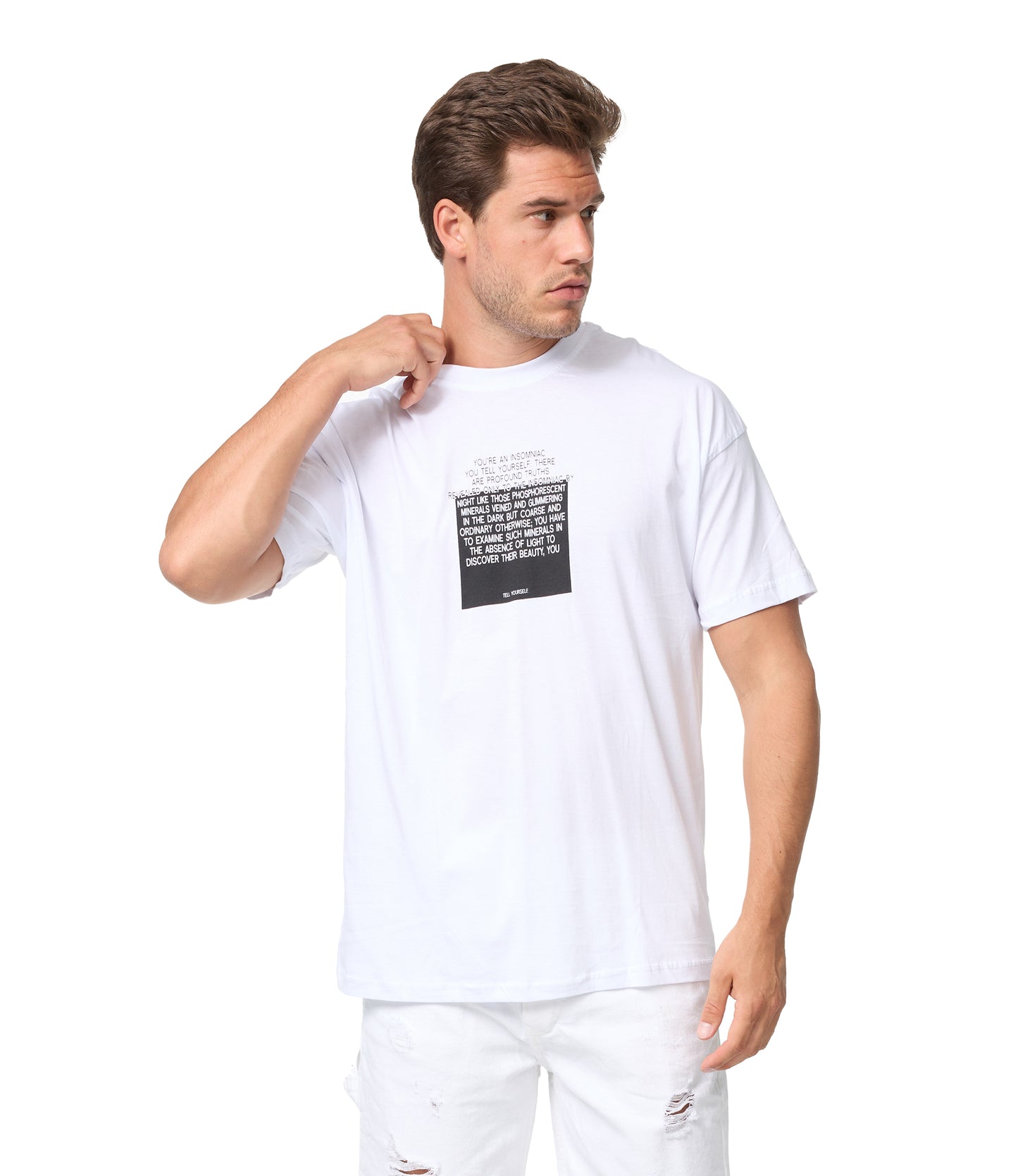 Men's T-shirt, oversize fit, "Mentalist" print, model Y118, white