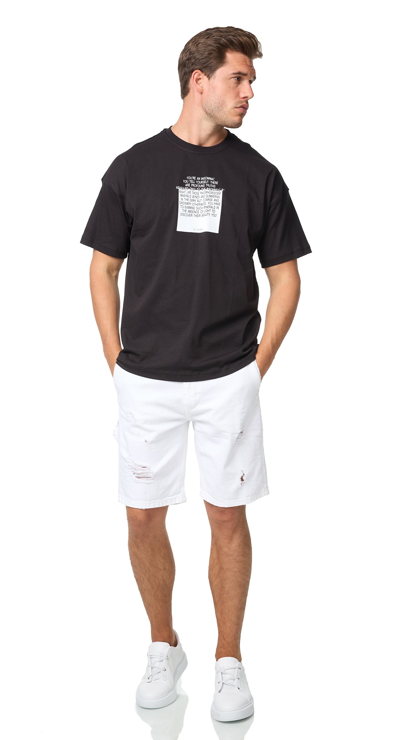 Fit : Oversize Look (The model wears size M with a body length of 1.85 m and a body weight of 85 kg)