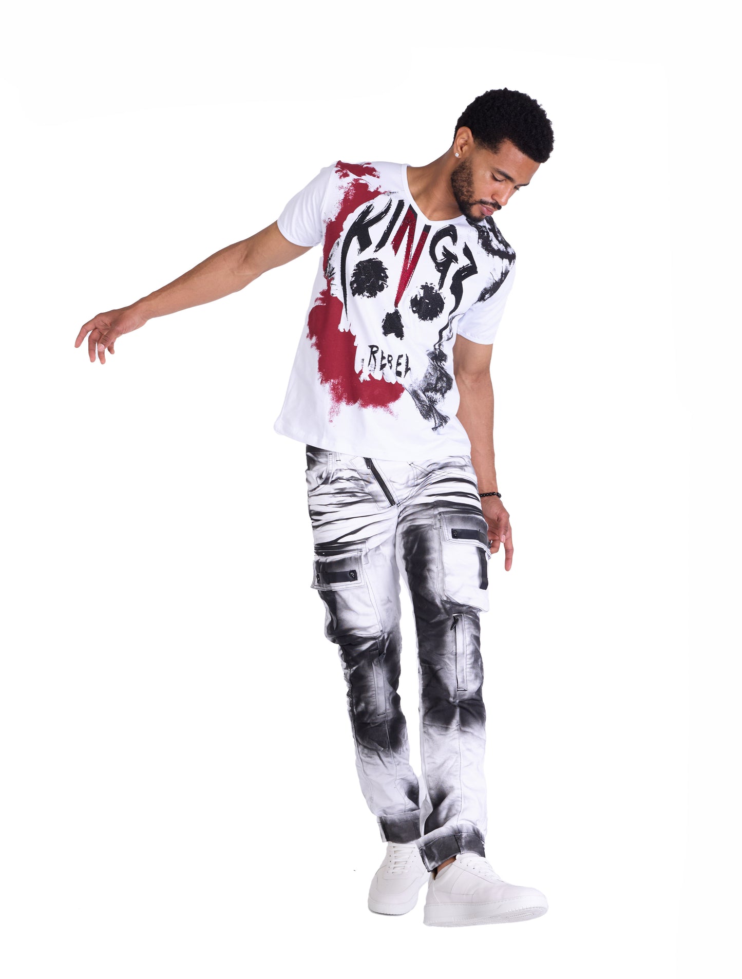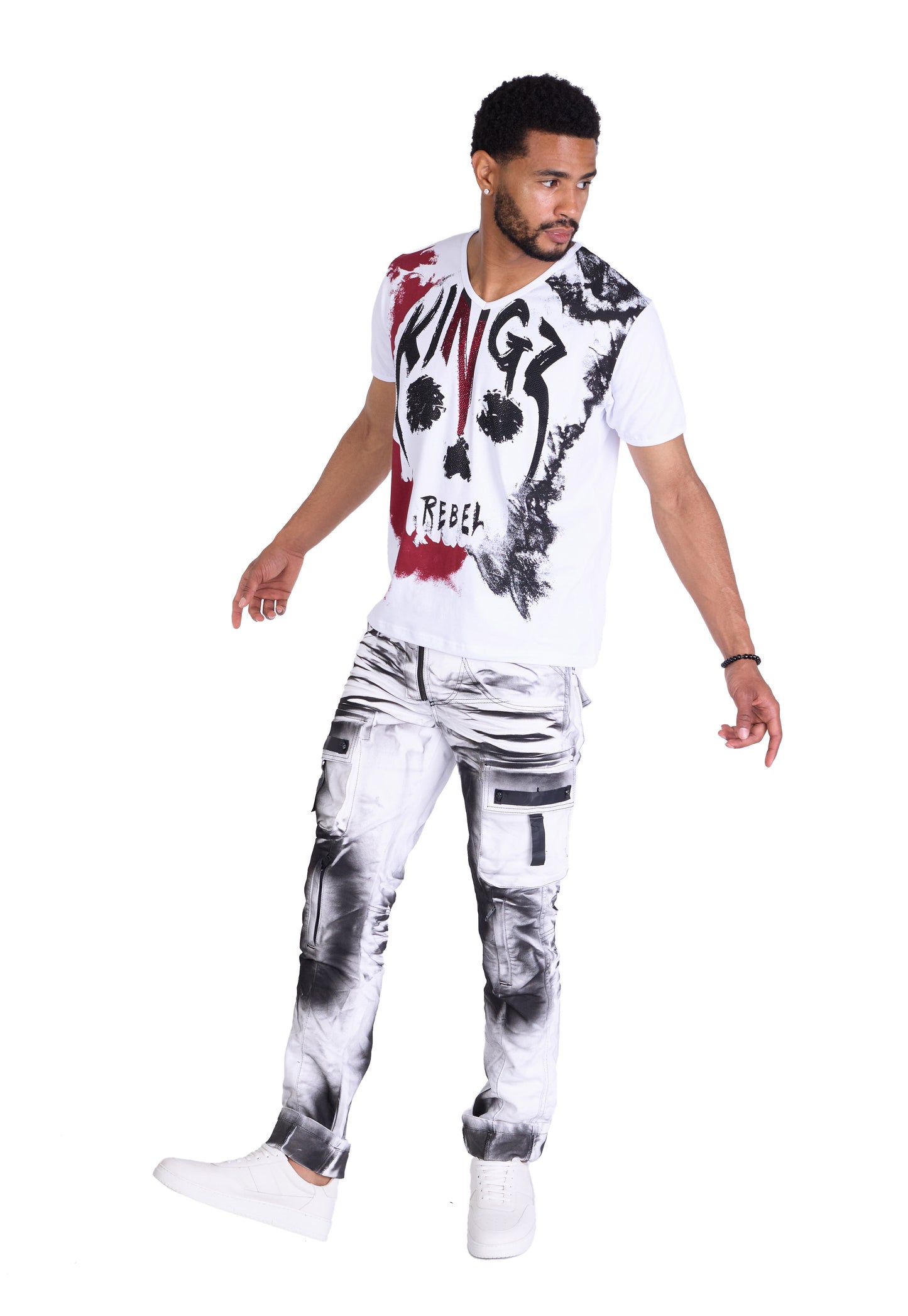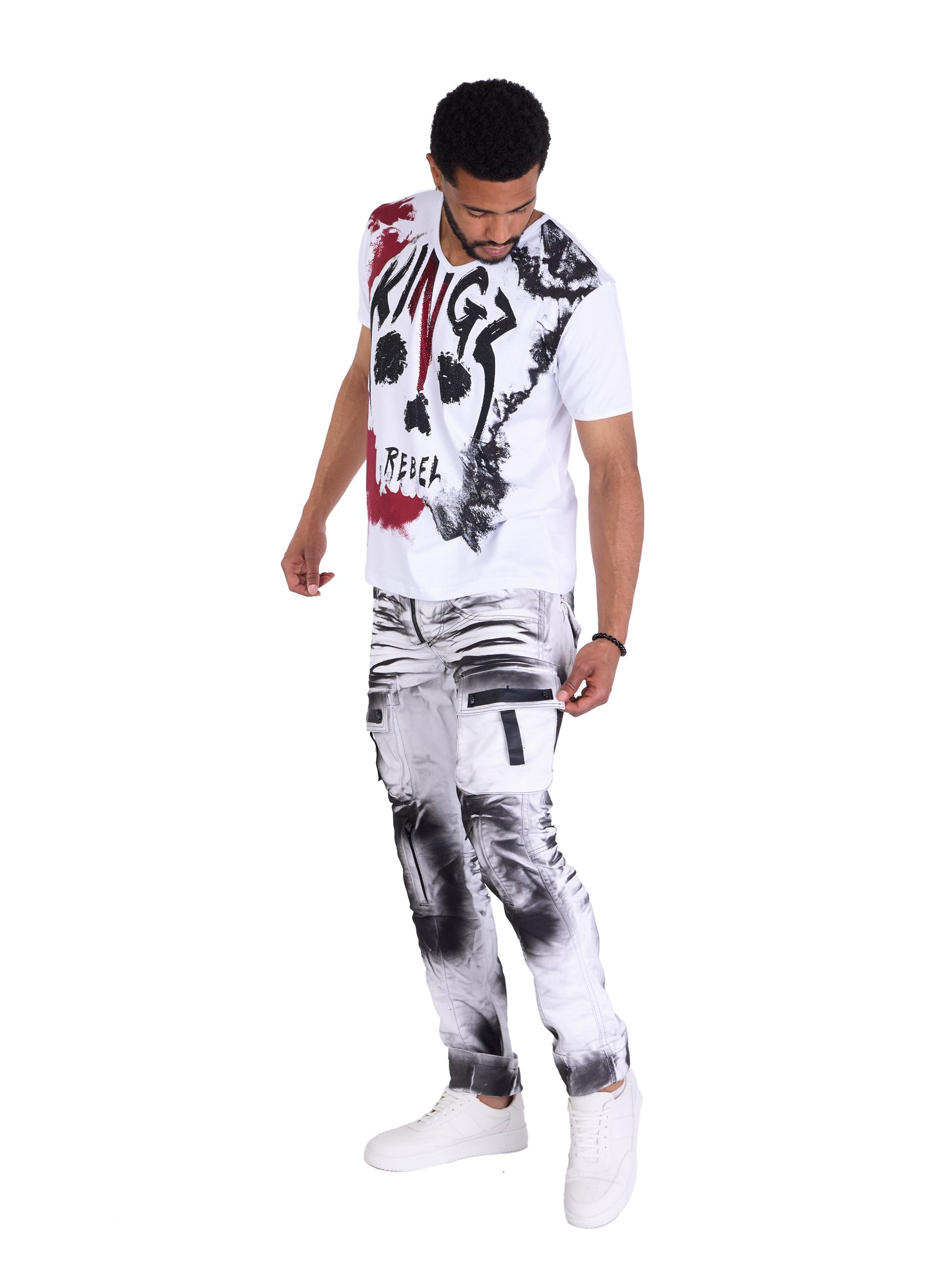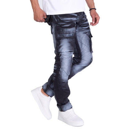 The Kingz Designer Cargo Jeans in camouflage pattern can be combined in many different ways. Combine them with a simple T-shirt and sneakers for a casual look or wear them with a leather belt and a bomber jacket for a rock look.