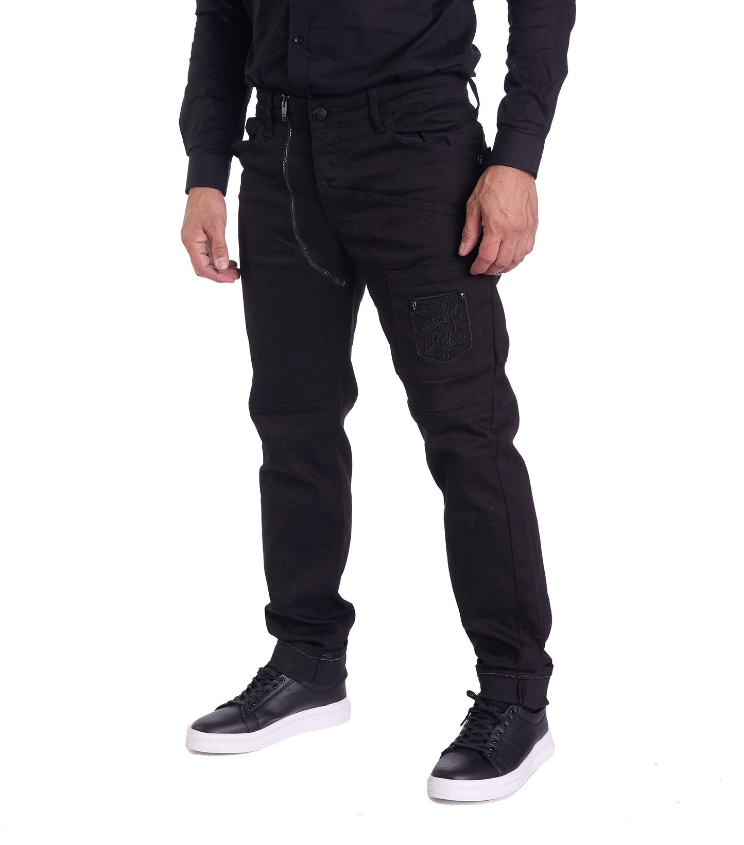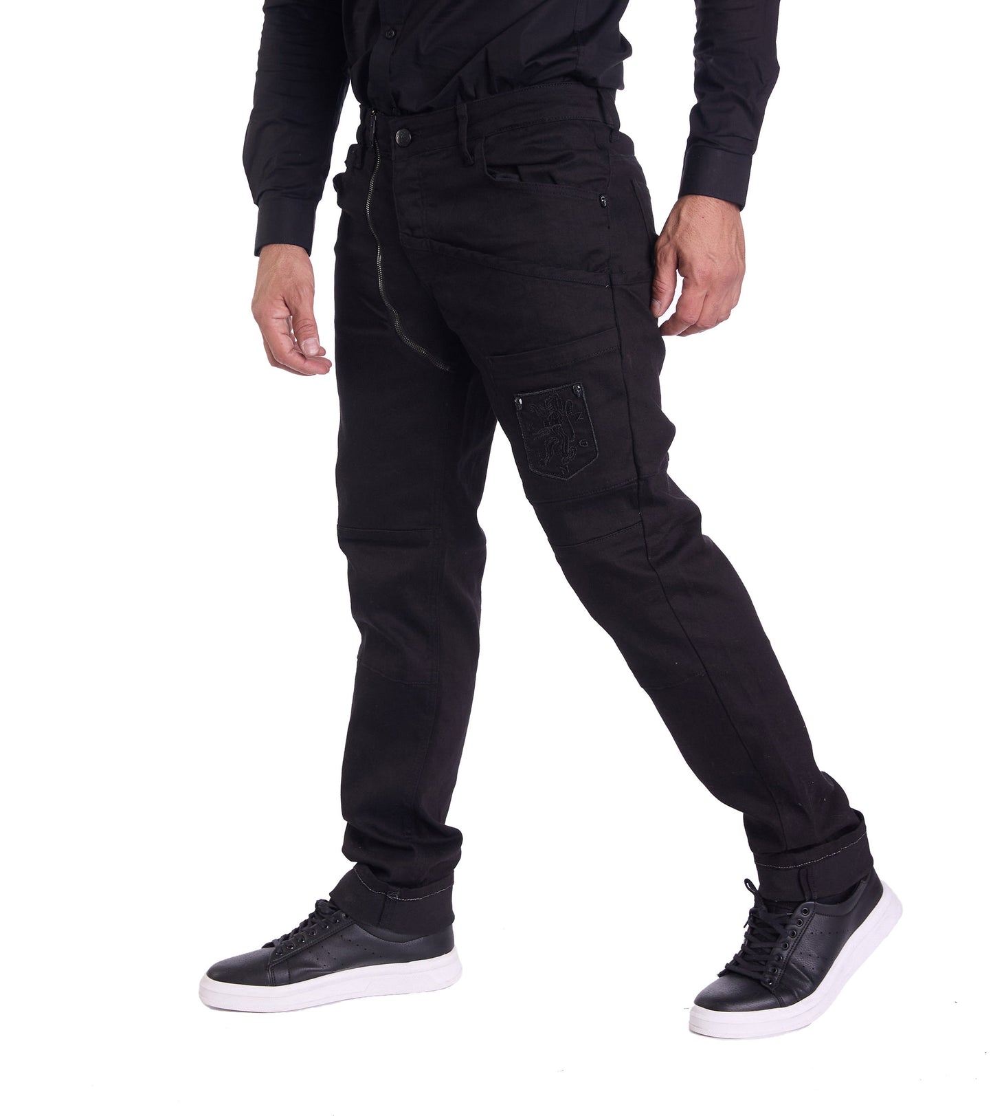 KINGZ men's jeans in regular fit in cool black and embroidered lion crest