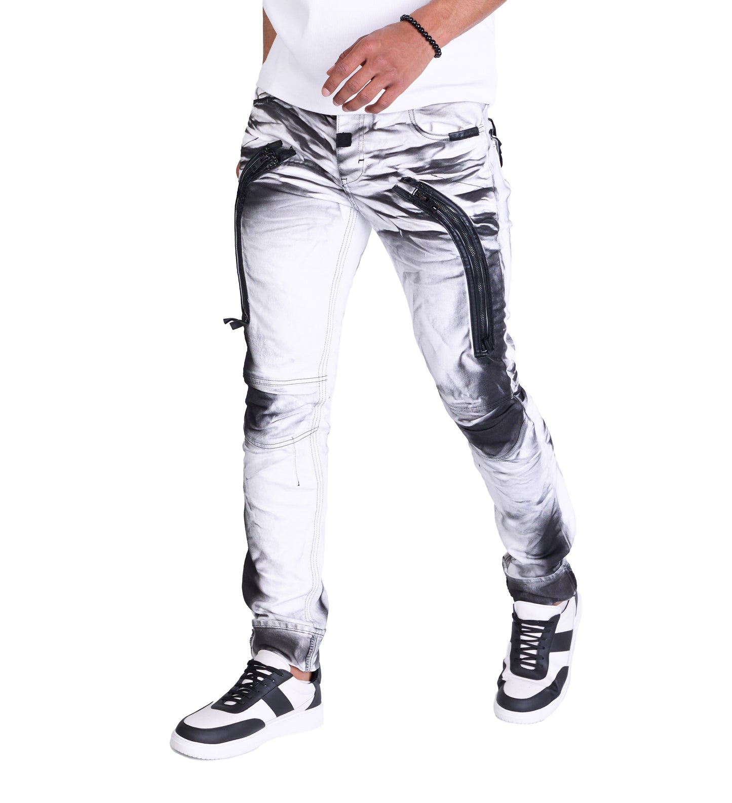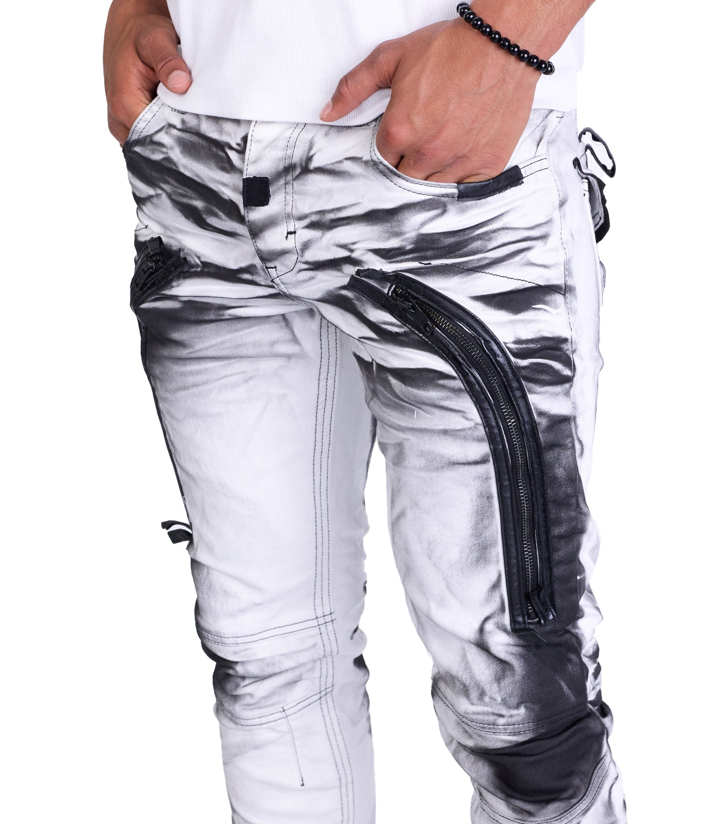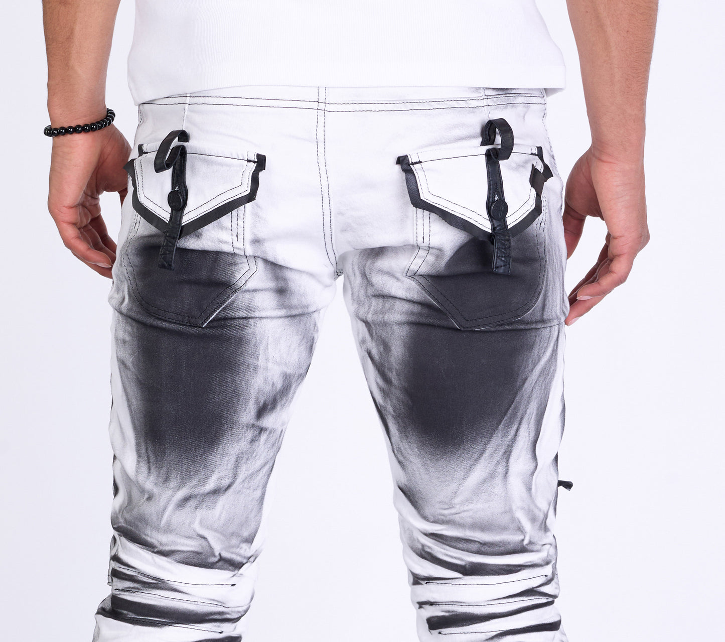 KINGZ Men's Cargo Biker Jeans, Slim Fit, Model 1699, White