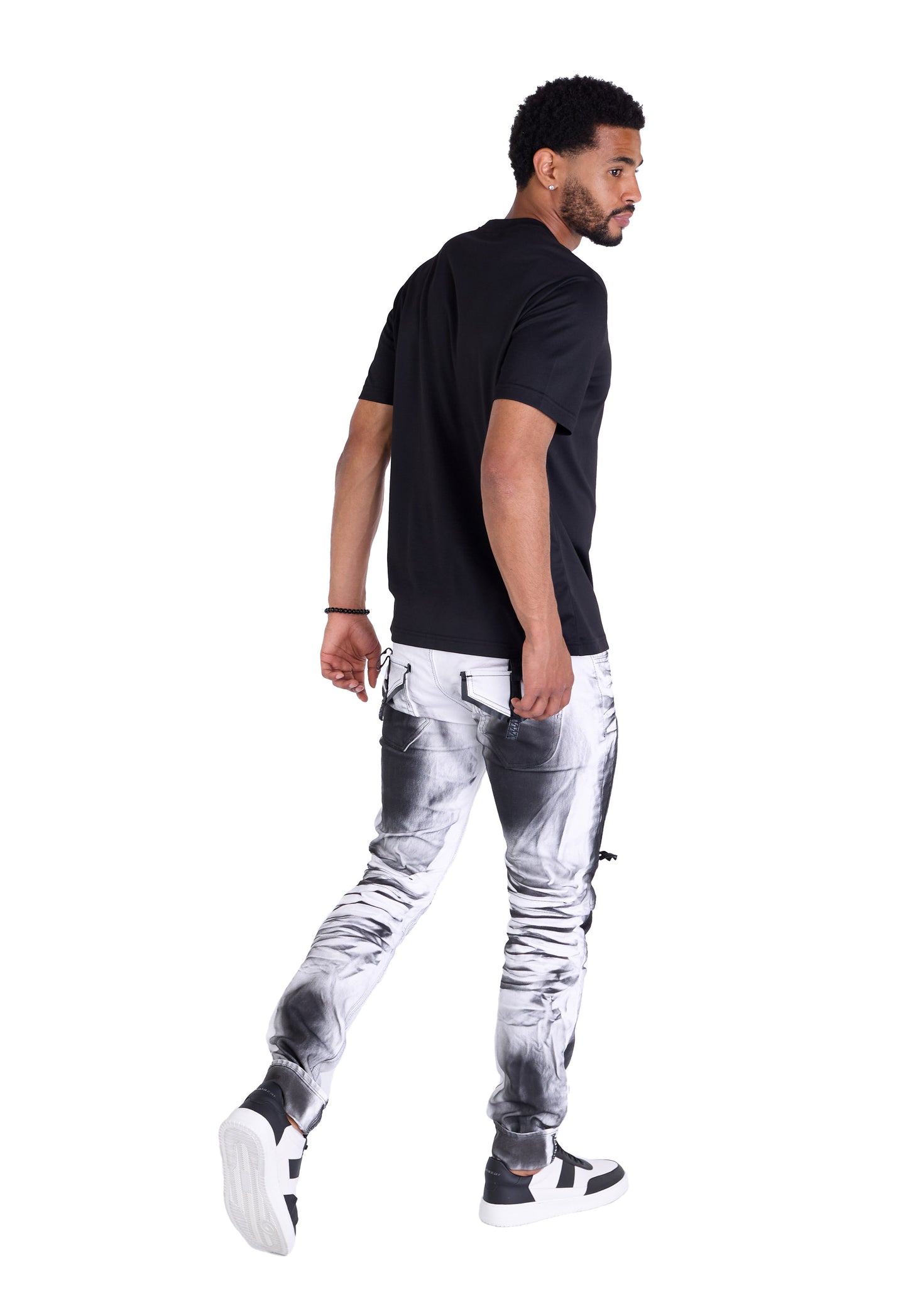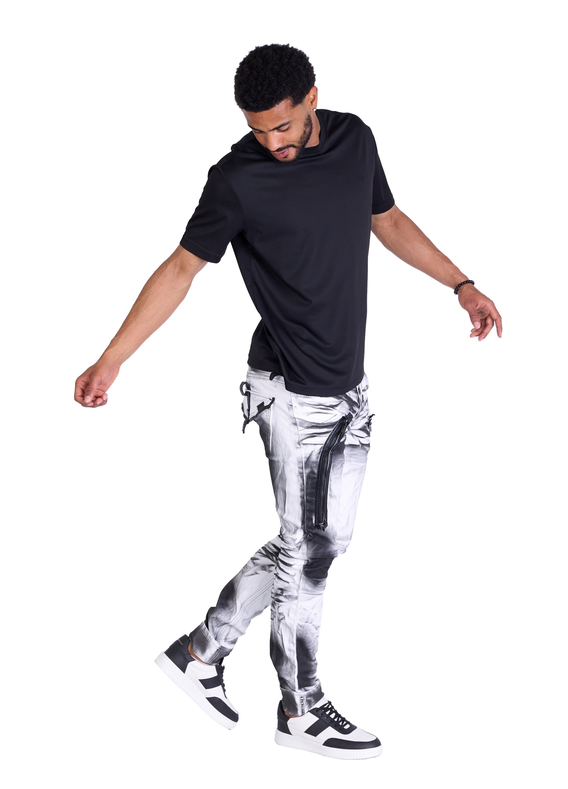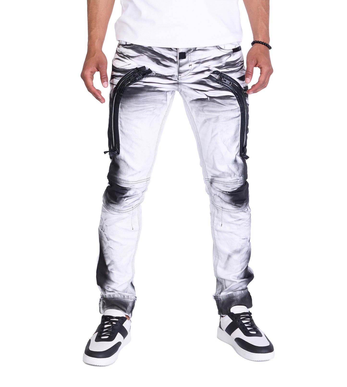 KINGZ Men's Cargo Biker Jeans, Slim Fit, Model 1699, White