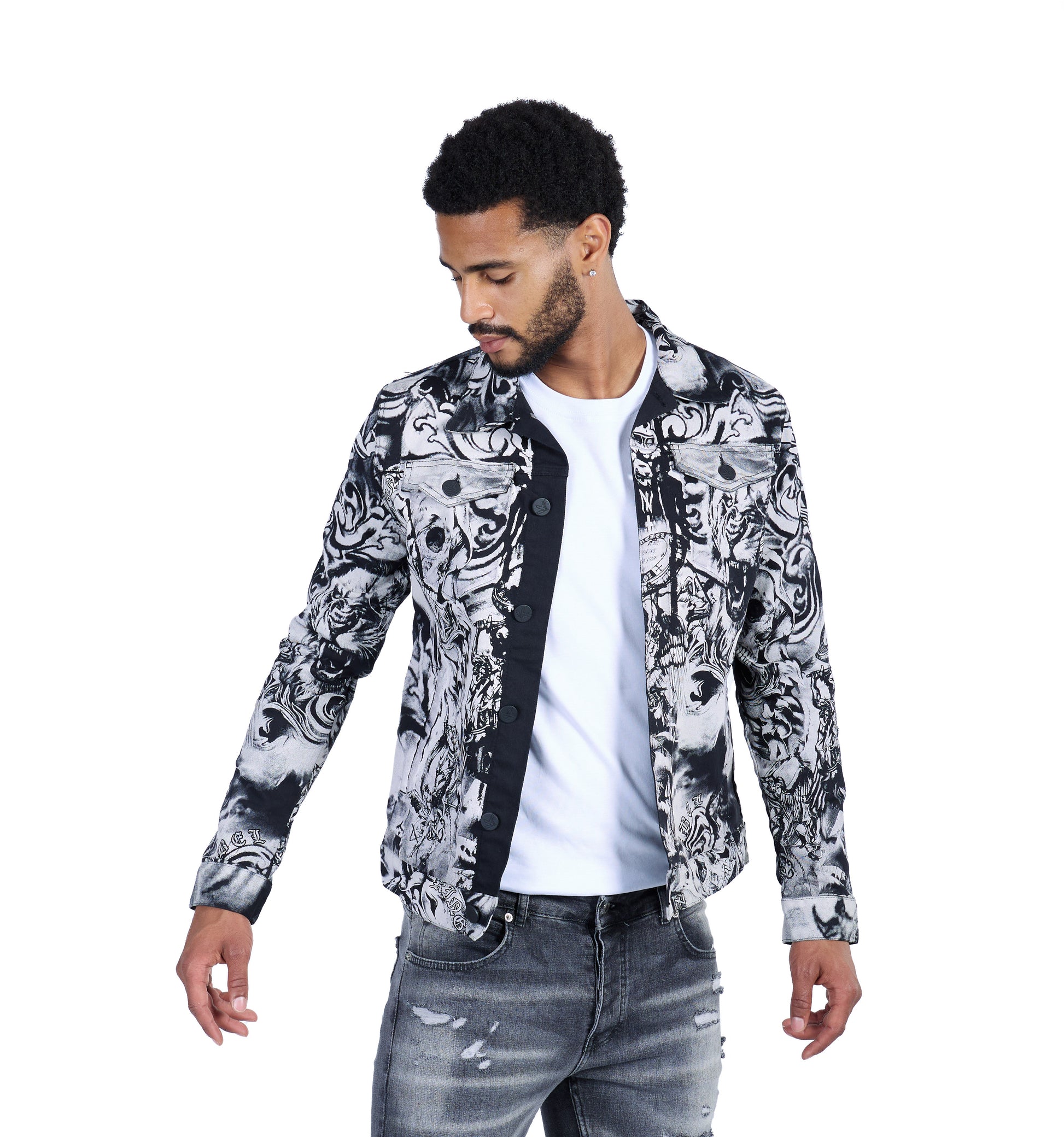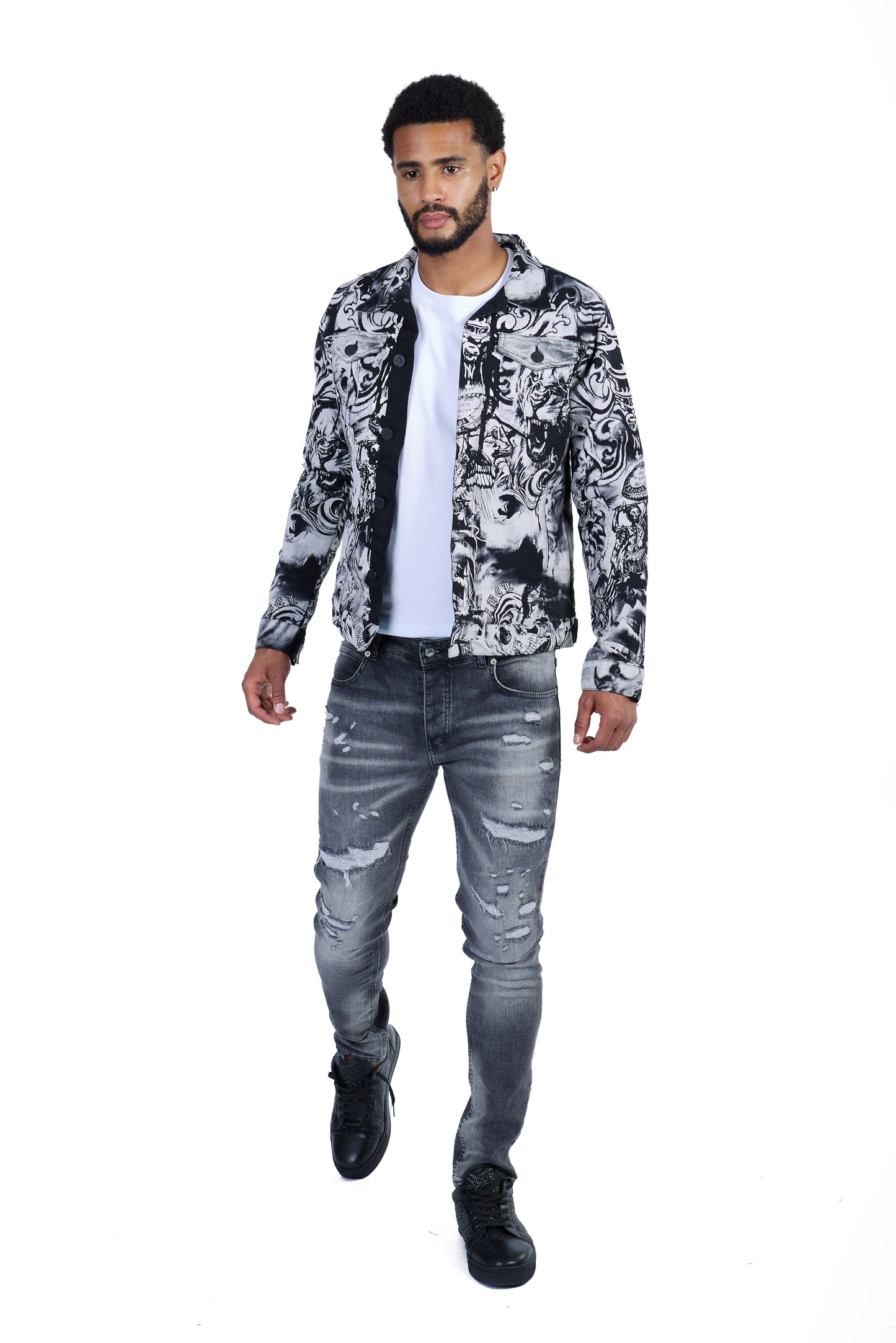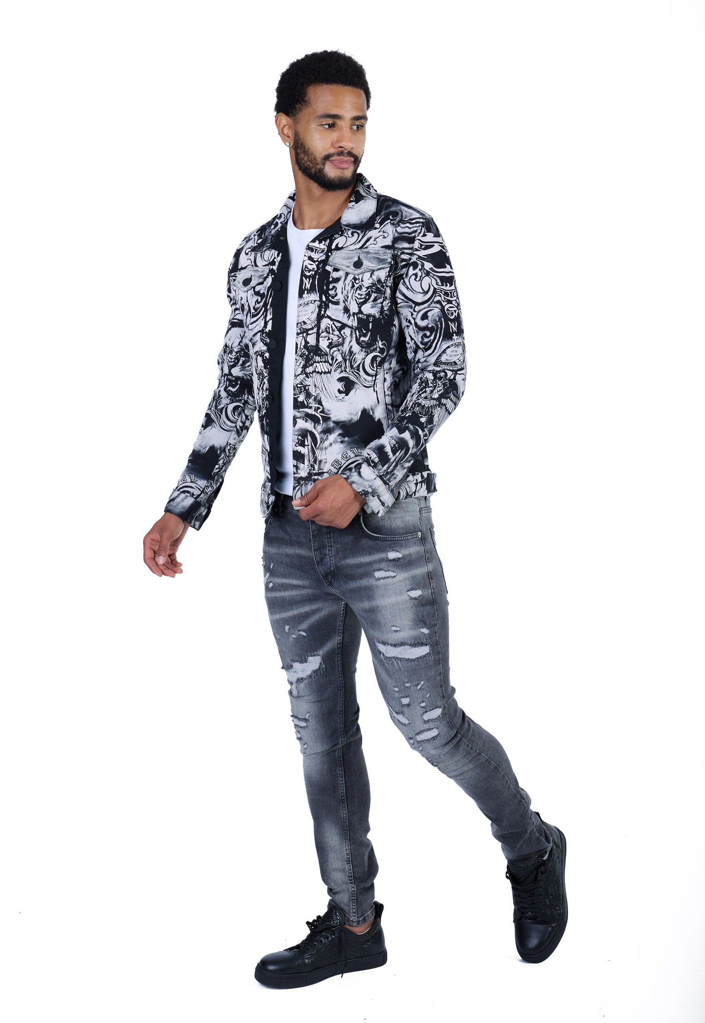 KINGZ men's designer denim jacket, slim fit, model 1648-2, white/black