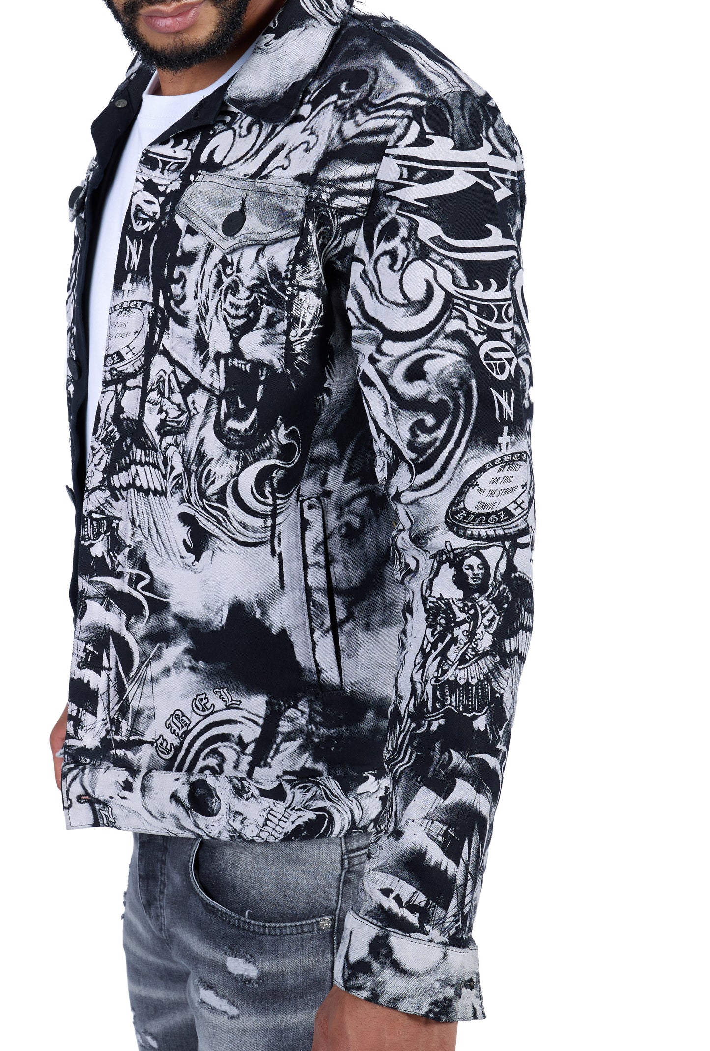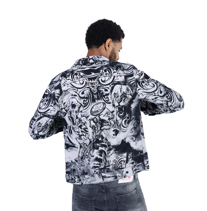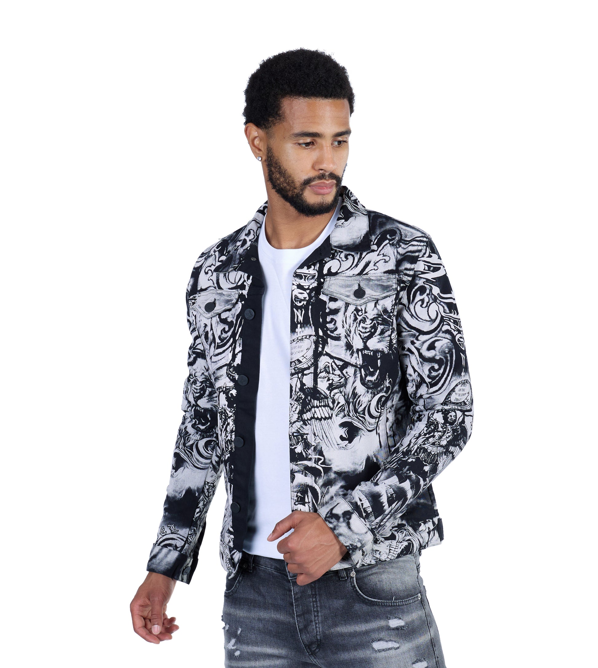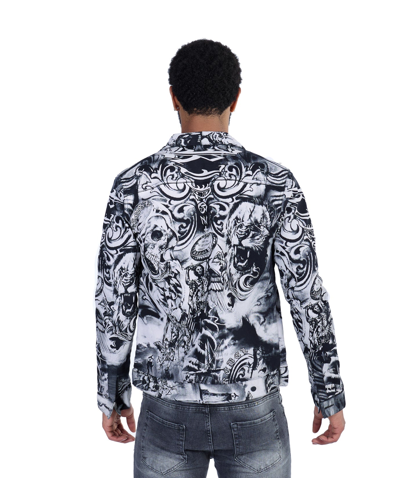 KINGZ men's designer denim jacket, slim fit, model 1648-2, white/black