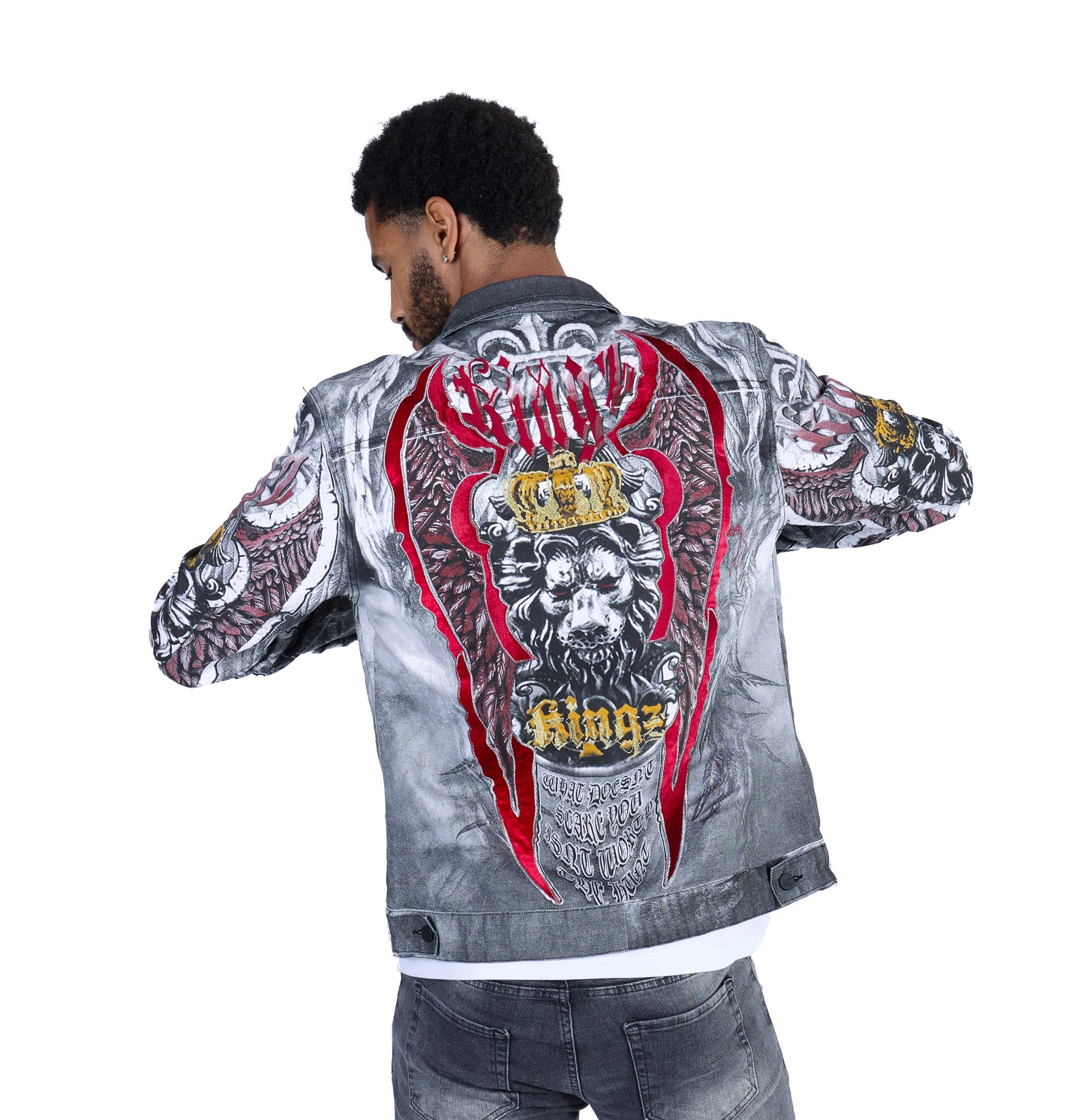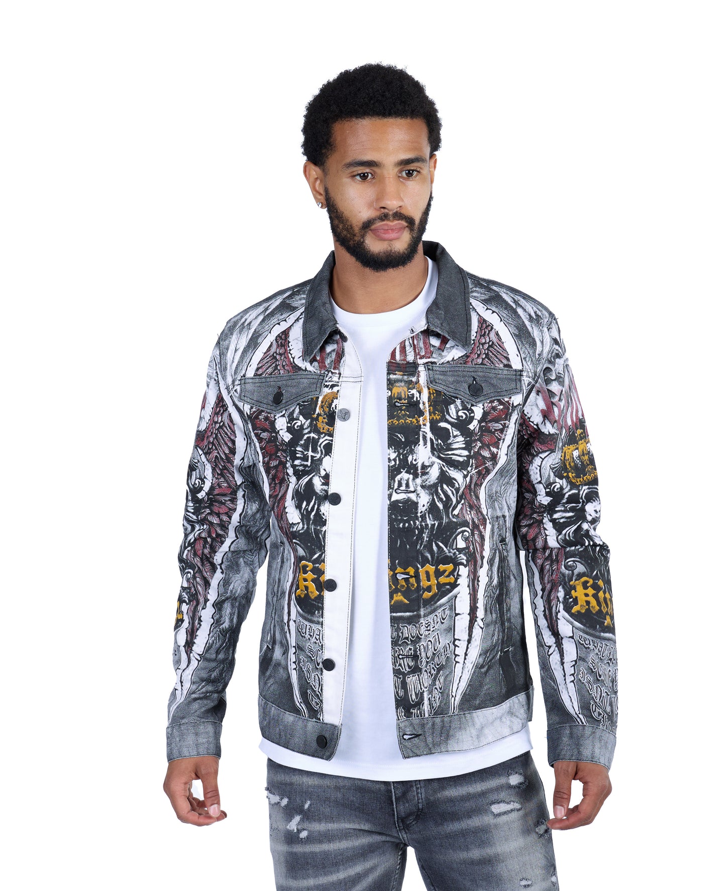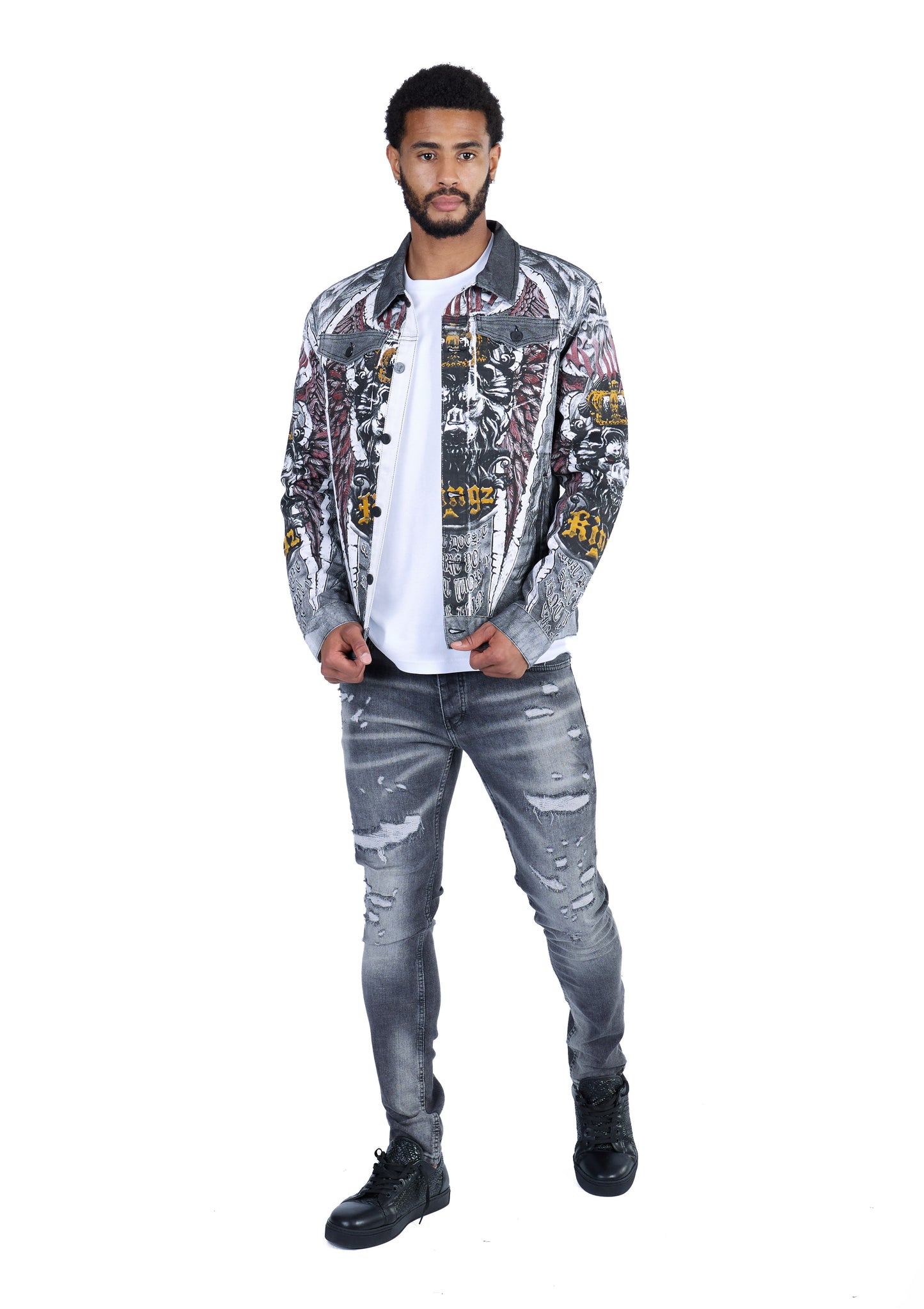 KINGZ men's designer denim jacket, slim fit, model 1648-2, white/black