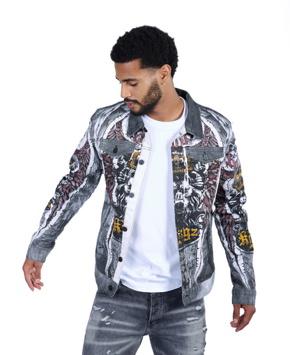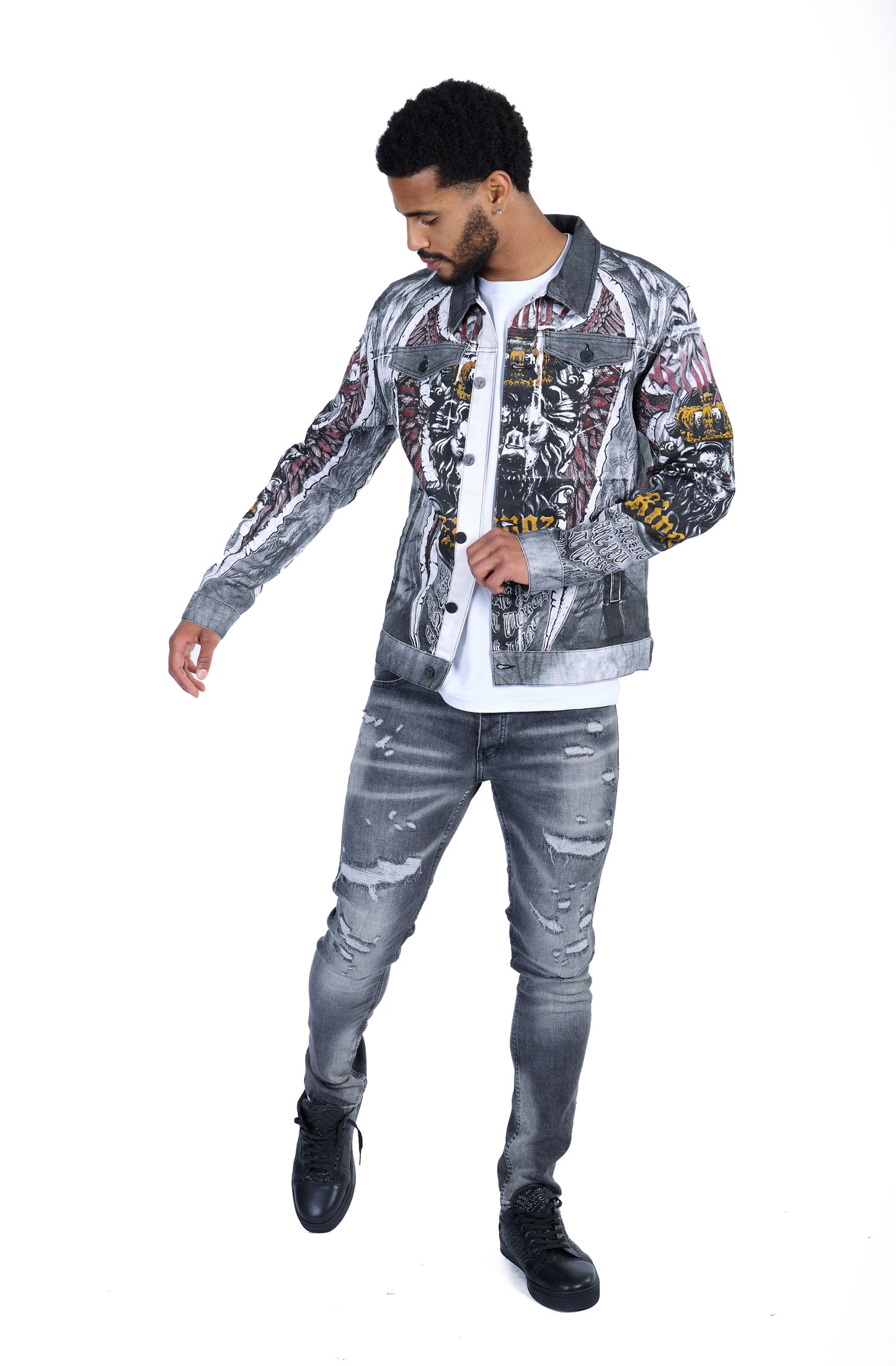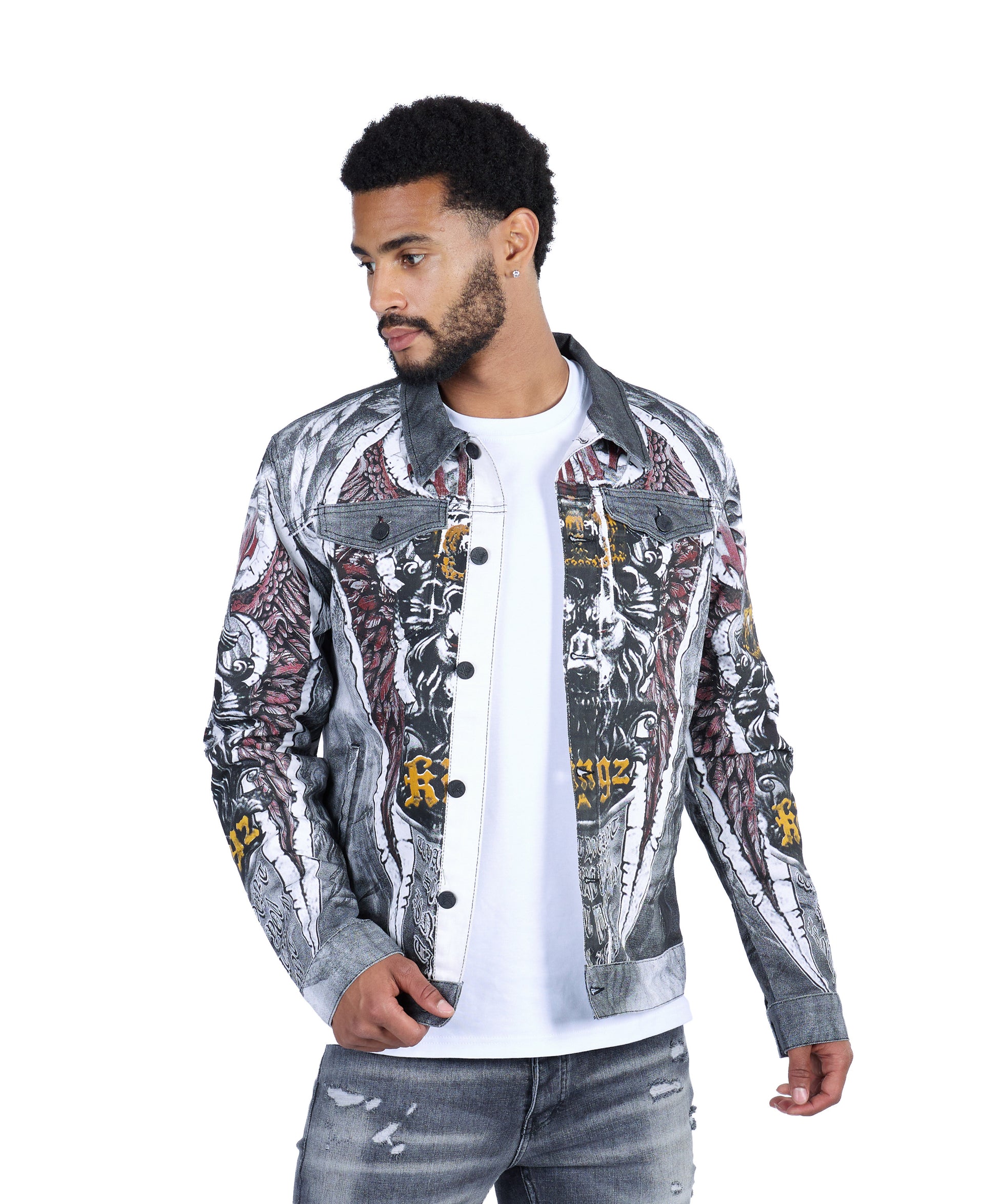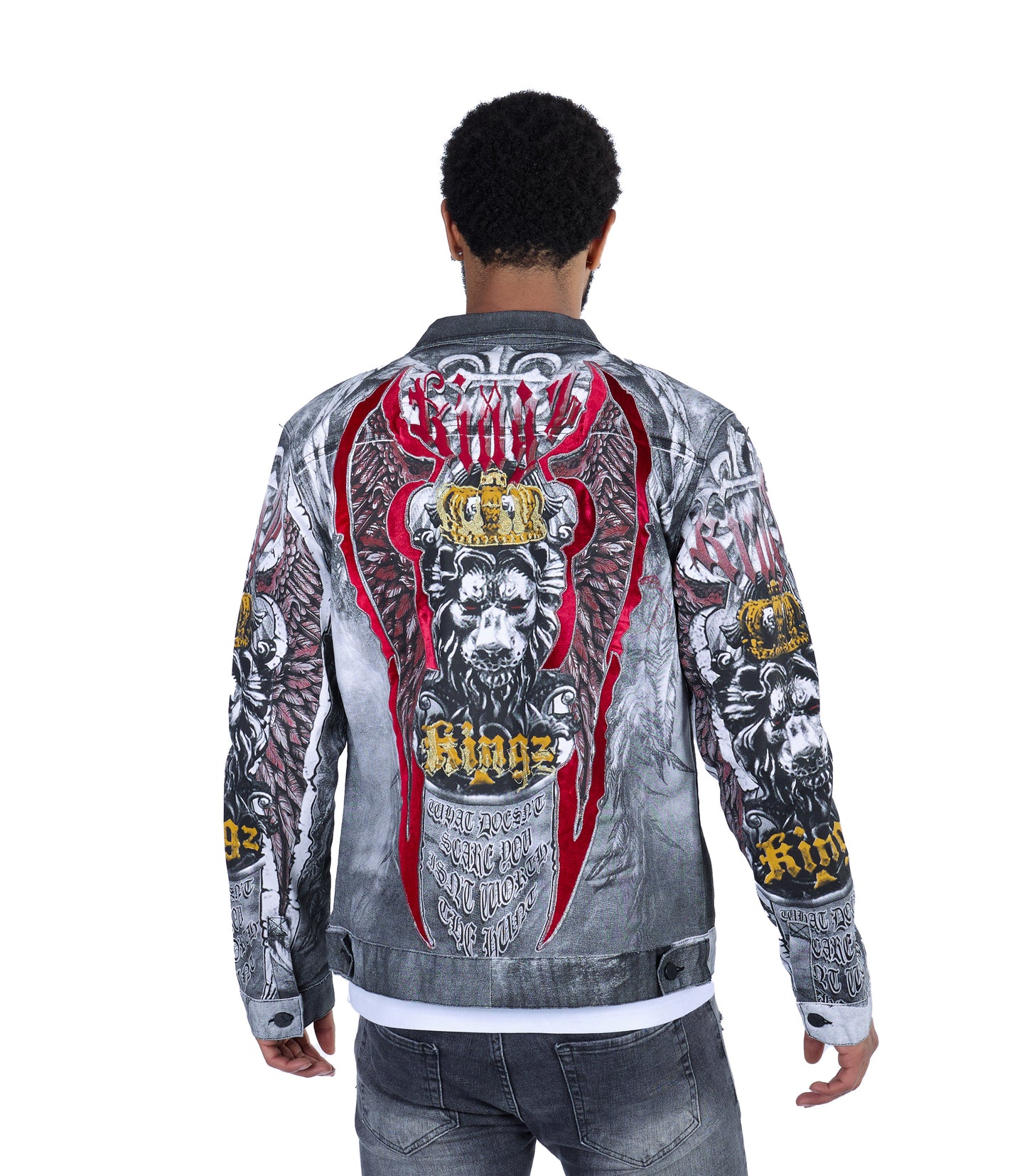 KINGZ men's designer denim jacket, slim fit, model 1648-2, white/black
