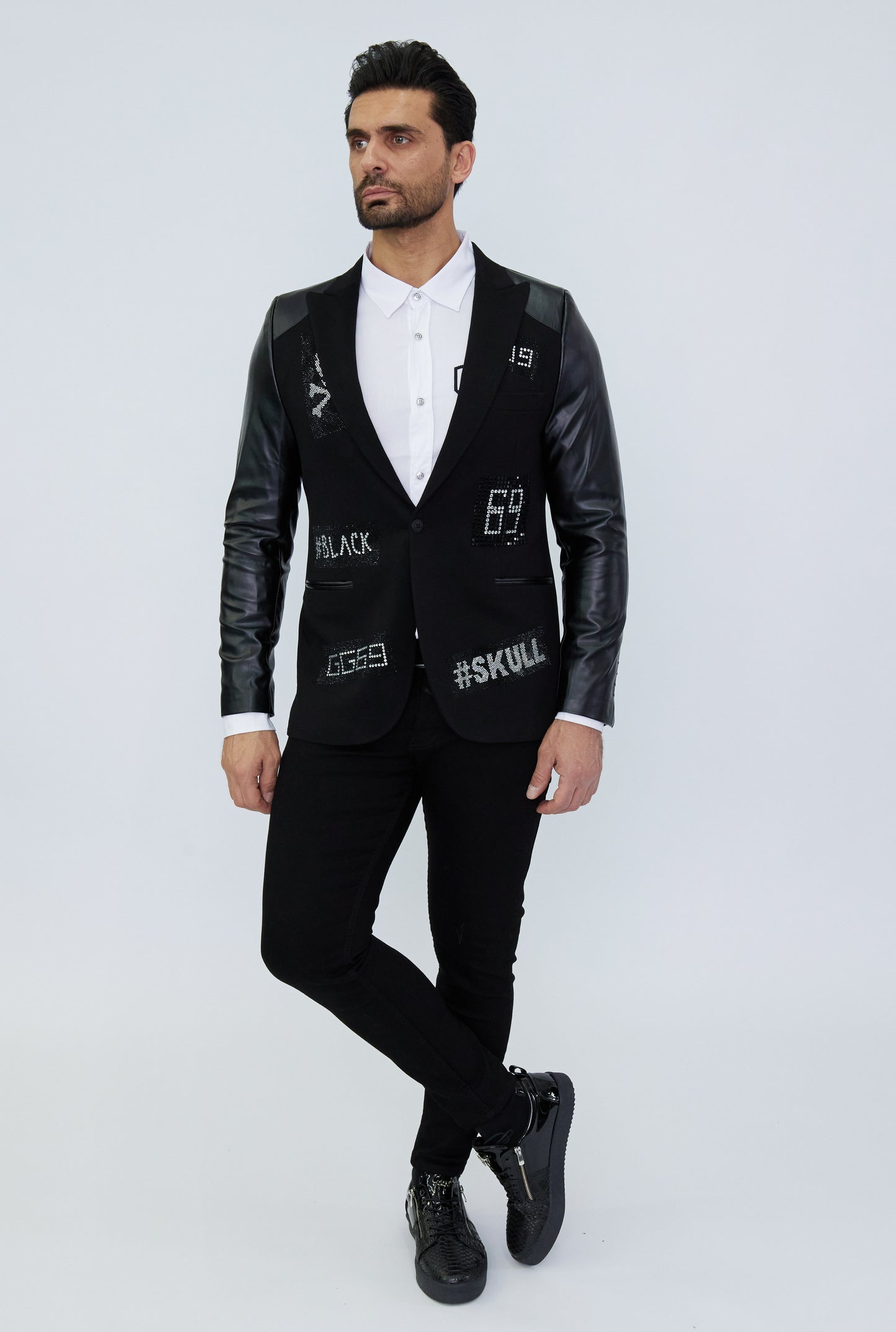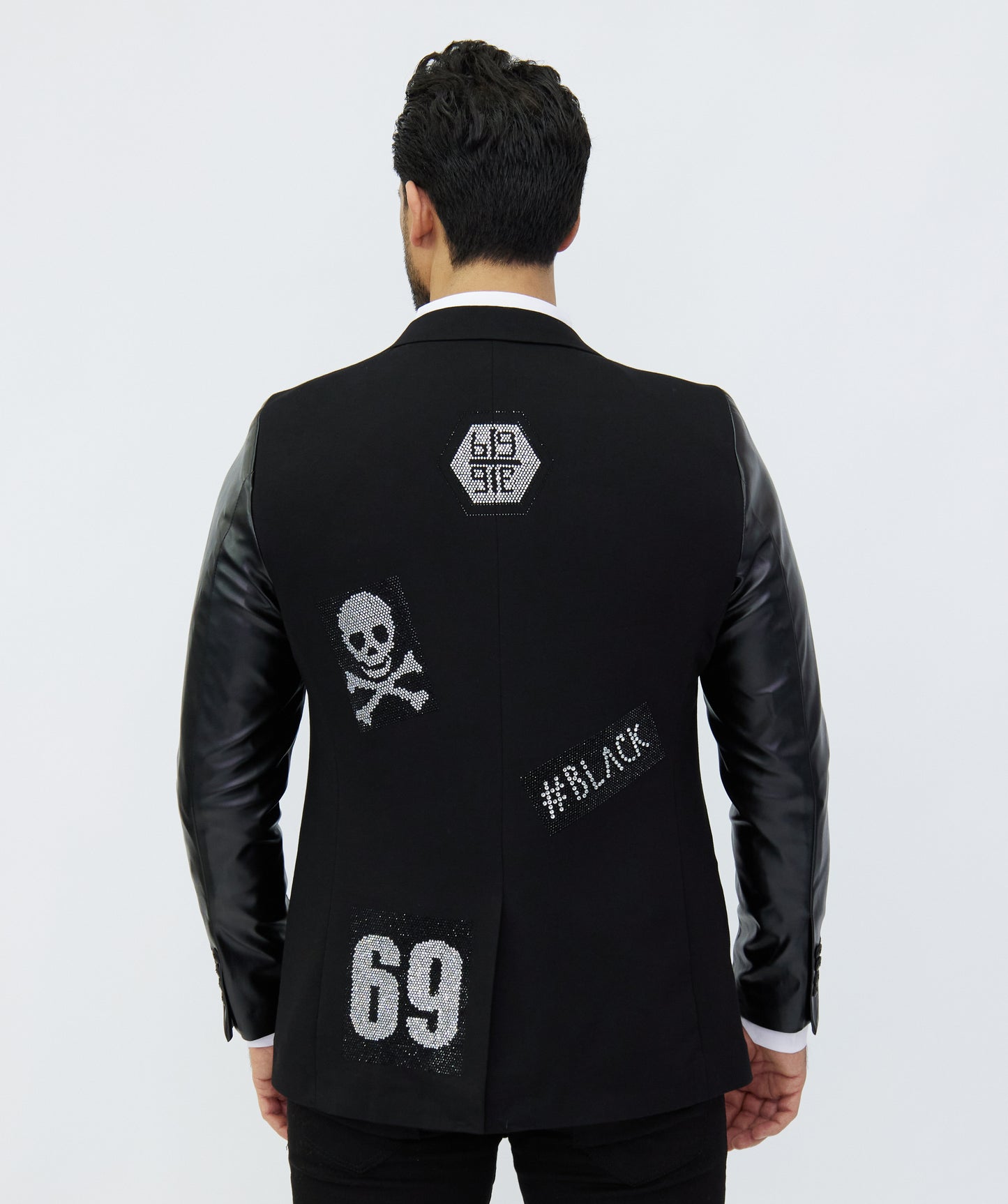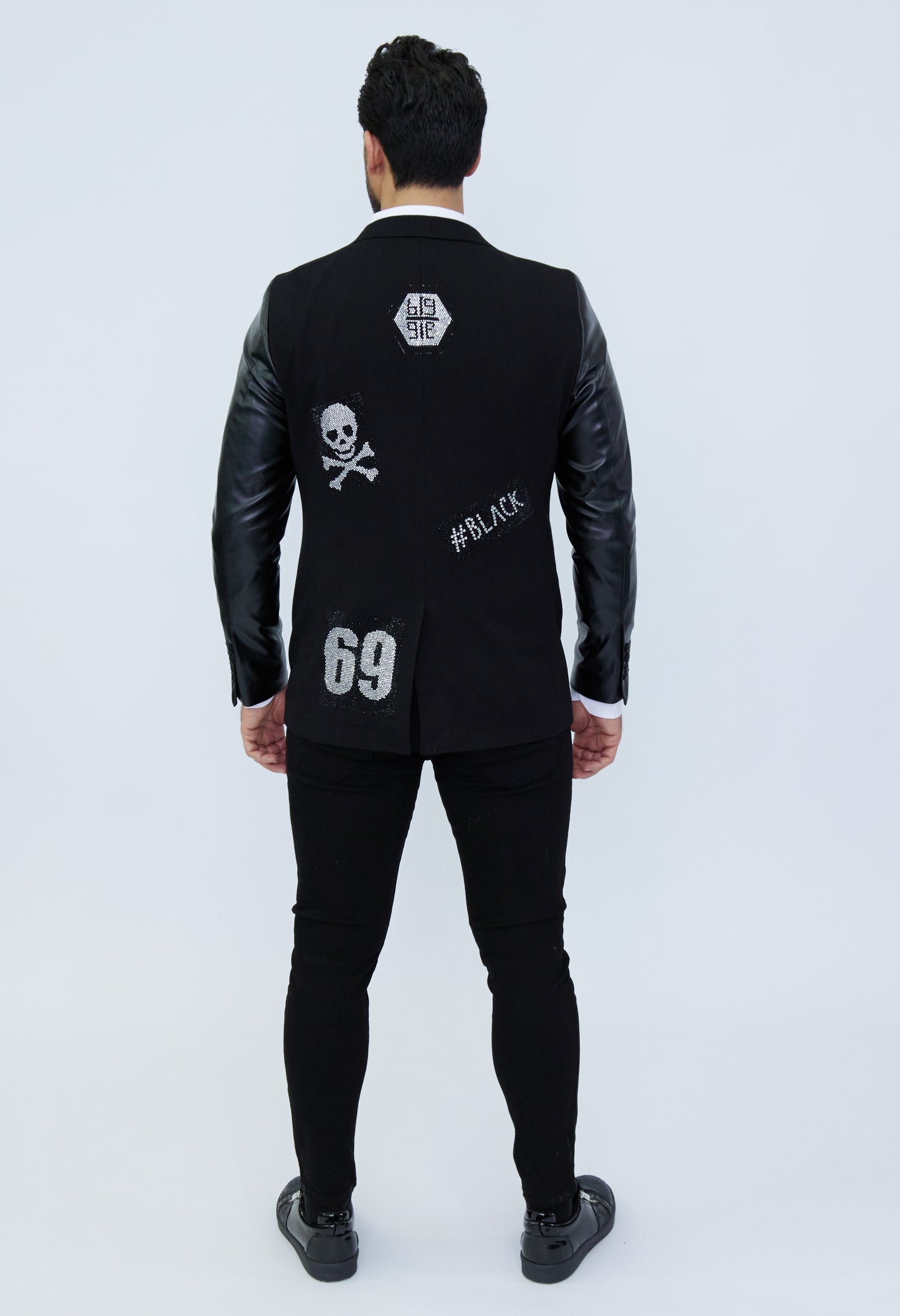 DENIM DISTRIQT Herren Sakko, Jersey Blazer, Strass Motive, Modell DQT3, Schwarz