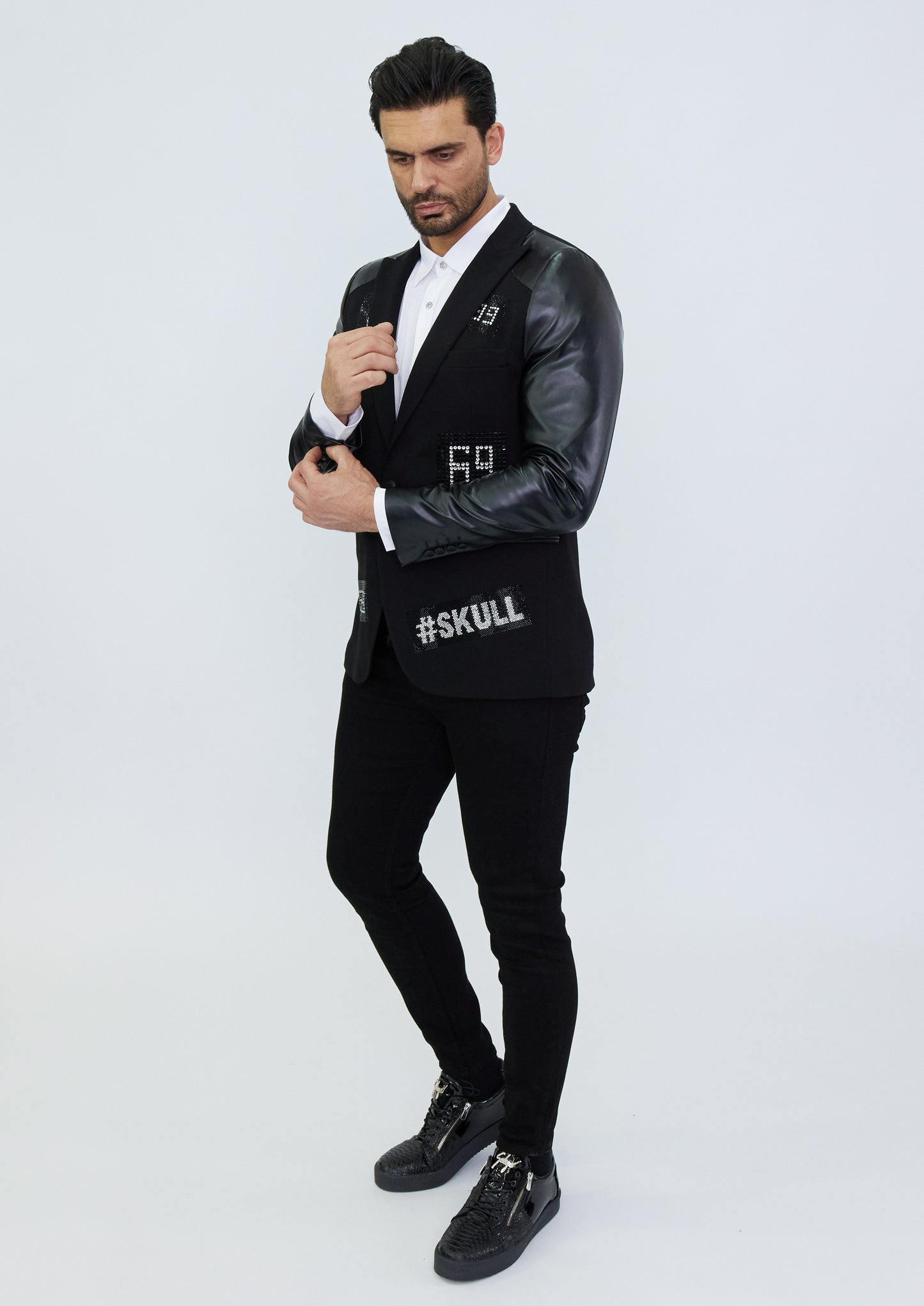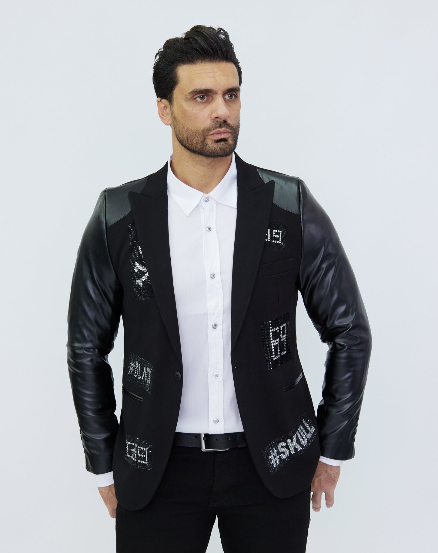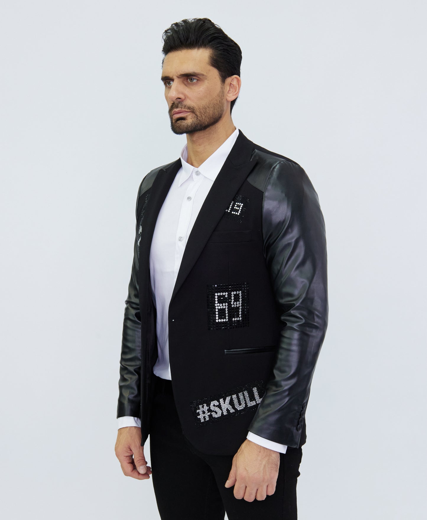 DENIM DISTRIQT Herren Sakko, Jersey Blazer, Strass Motive, Modell DQT3, Schwarz