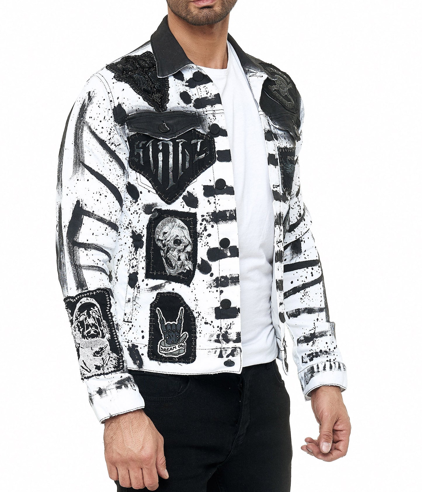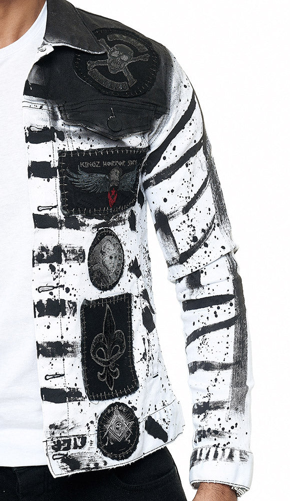 Designer Herren Jeansjacke mit Ausgefallener Batik-Verwaschung und Motiv-Patches von KINGZ