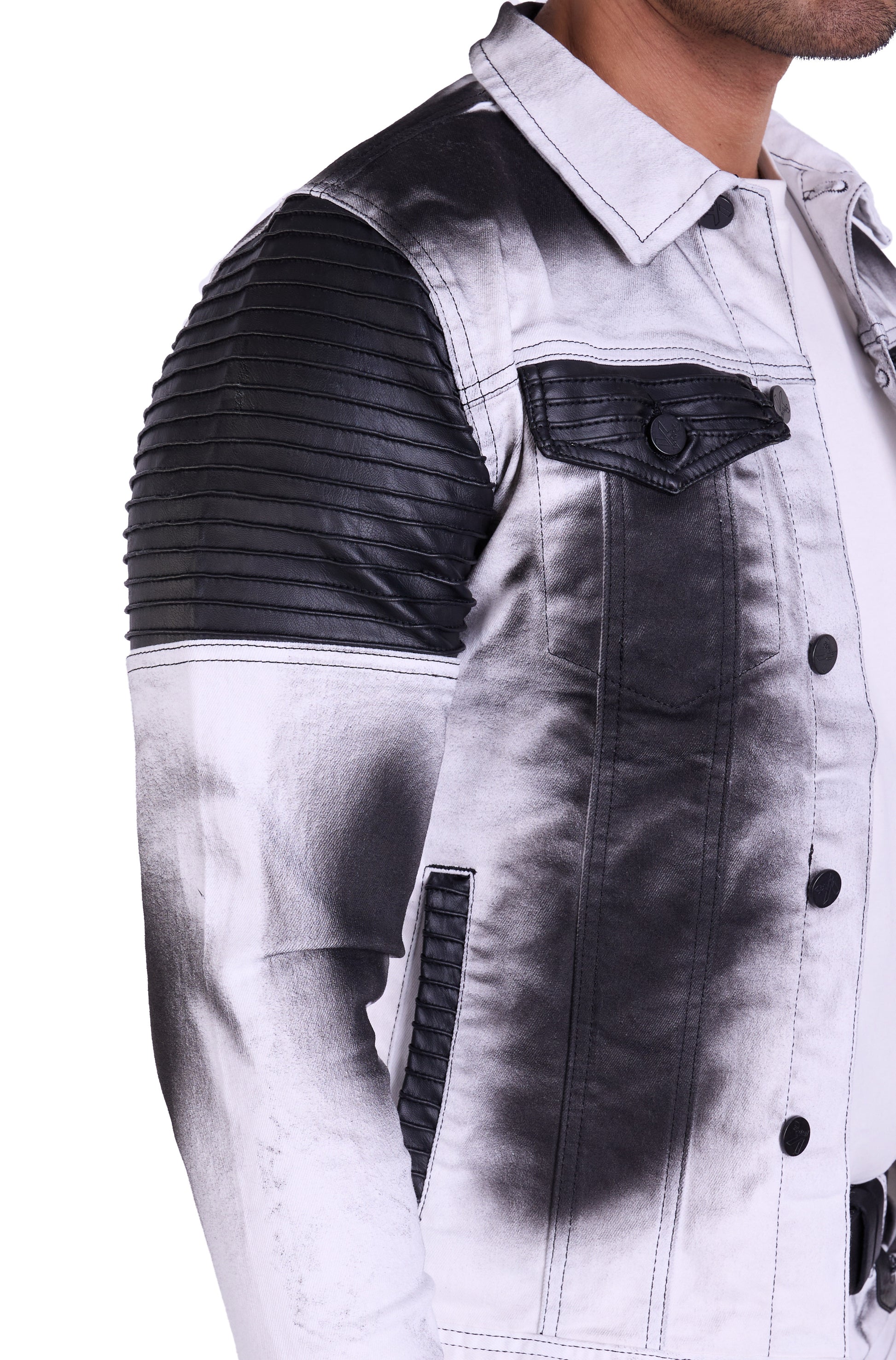 Designer Herren Jeansjacke mit Batik-Verwaschung und Kunstleder-Applikationen von KINGZ